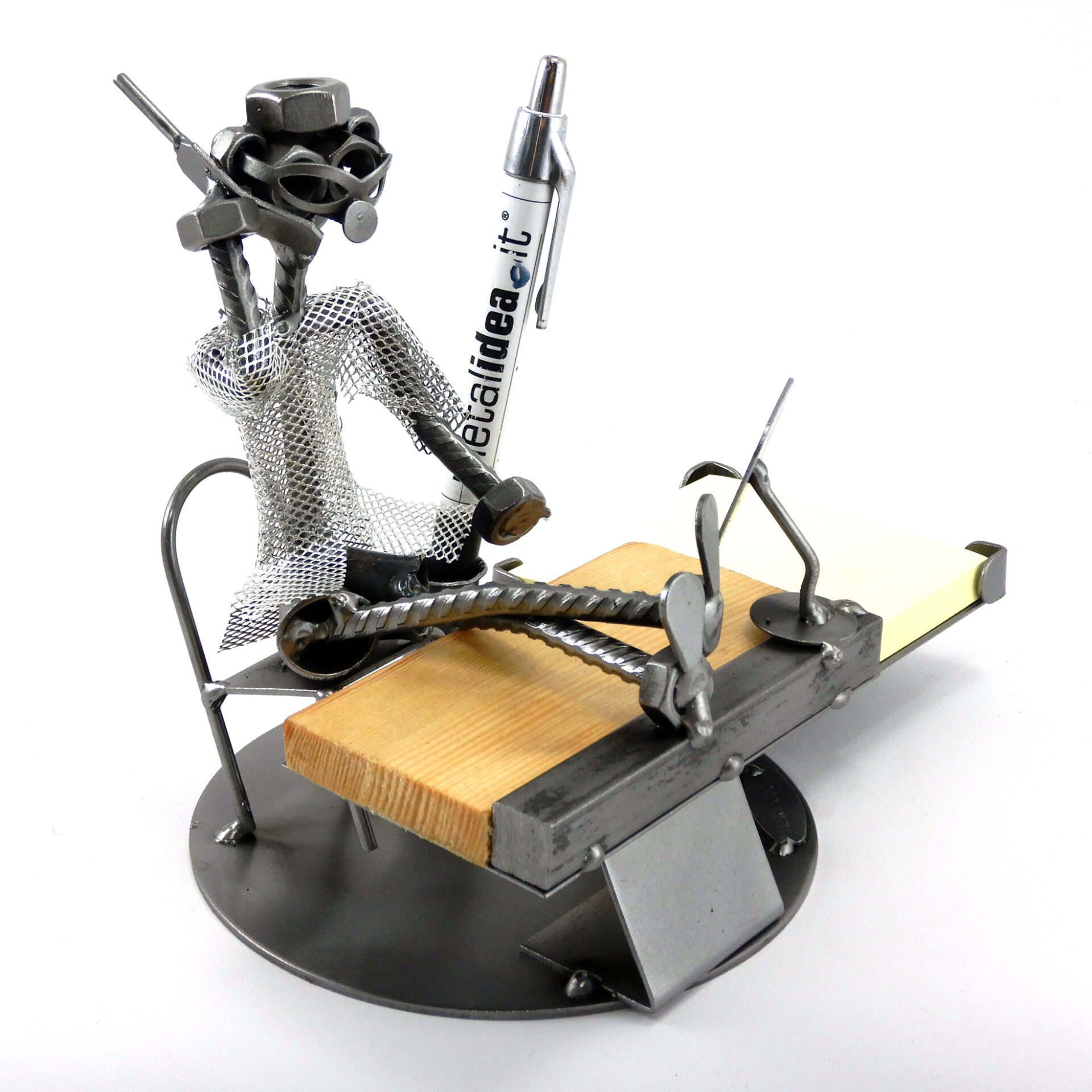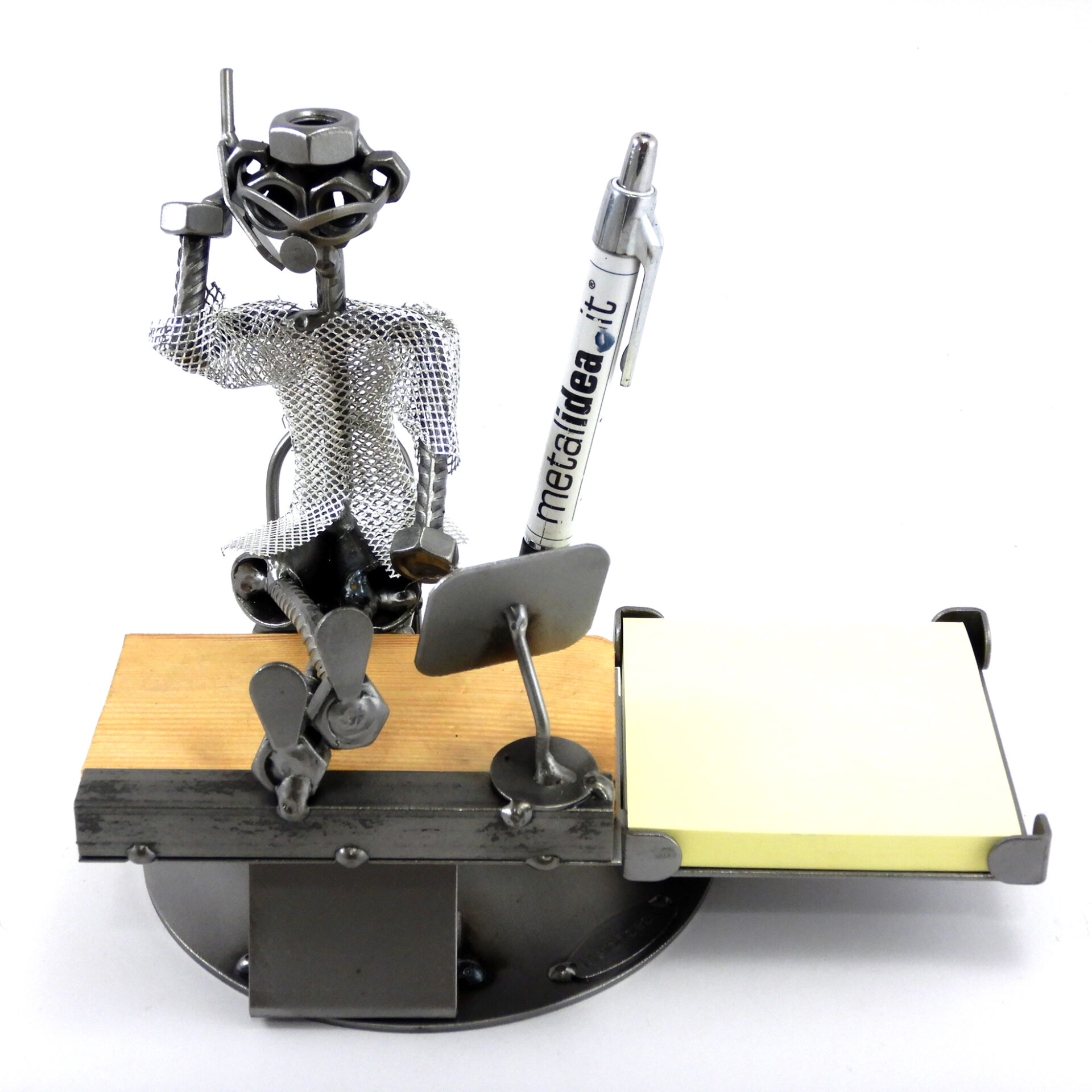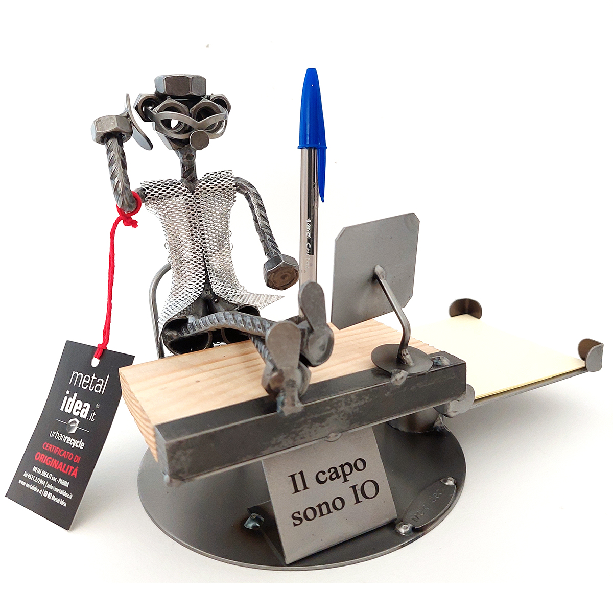 SCULTURA IN METALLO ARTIGIANALE RAFFIGURANTE IL BOSS SET SCRIVANIA – MANAGER alla scrivania con porta penna e post’it