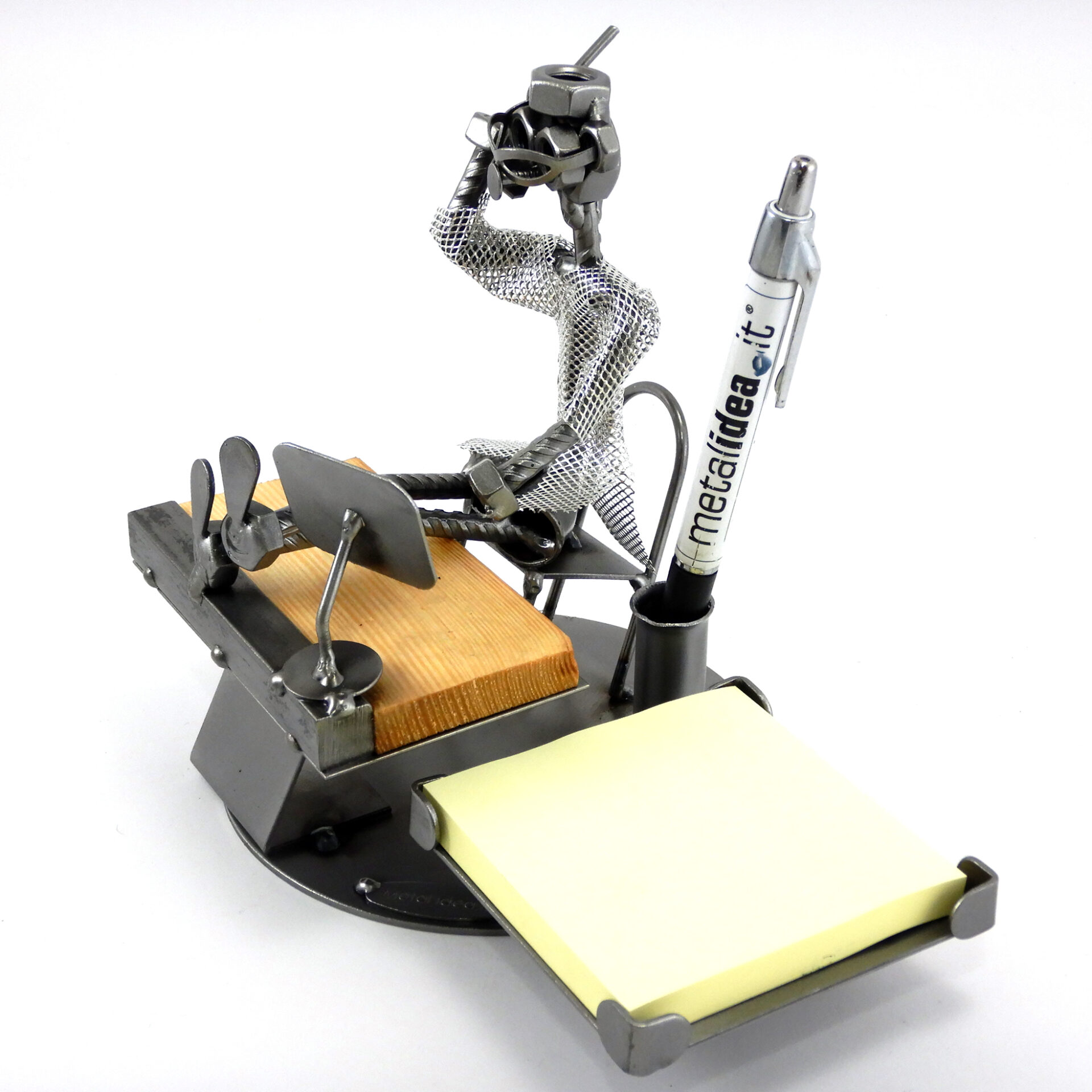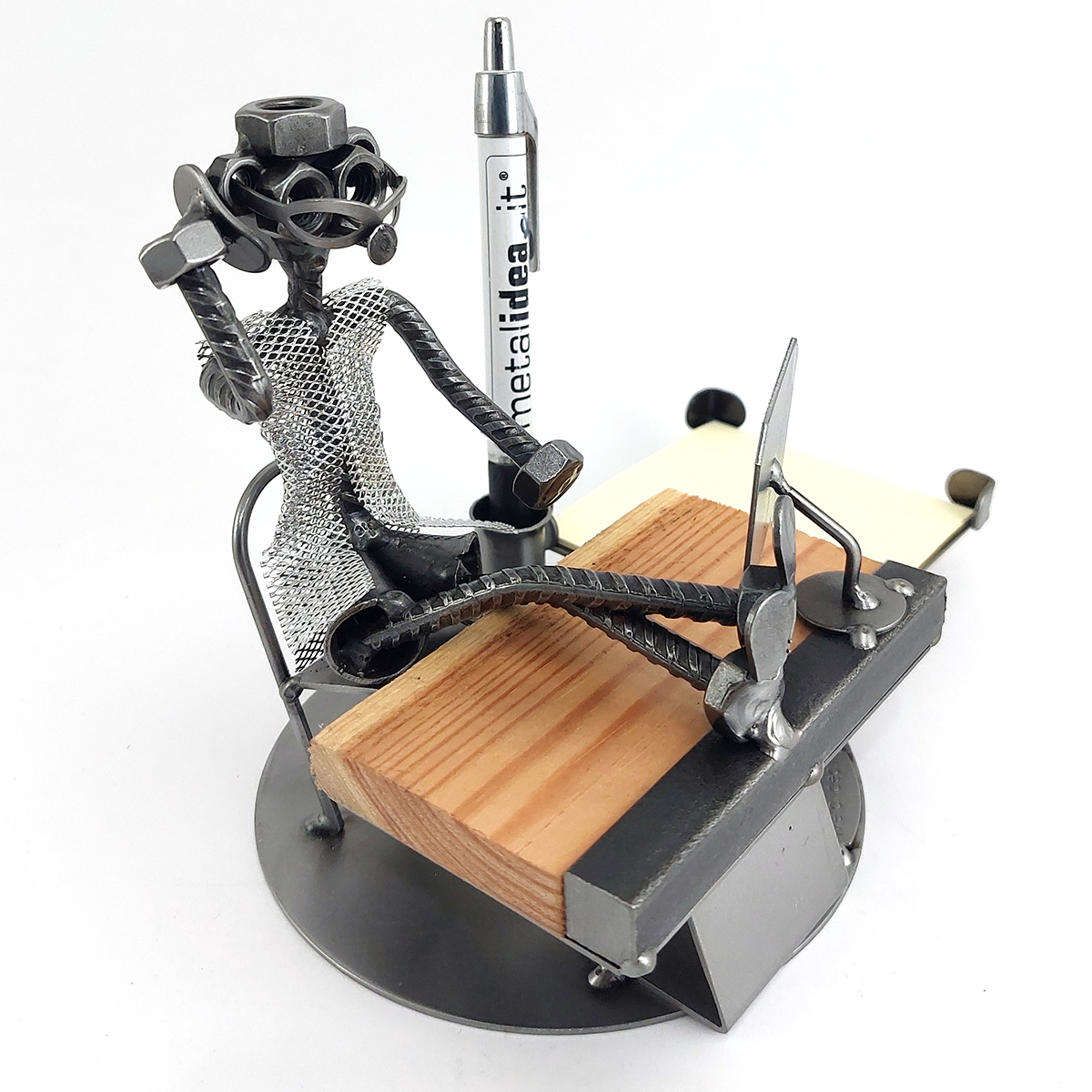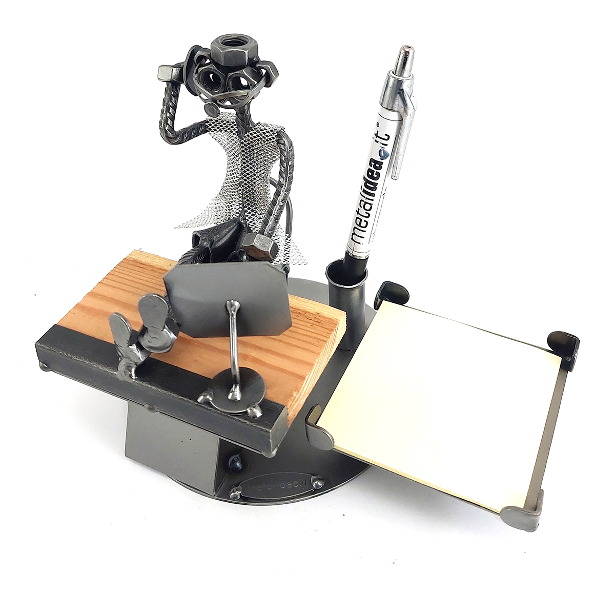 SCULTURA IN METALLO ARTIGIANALE RAFFIGURANTE IL BOSS SET SCRIVANIA – MANAGER alla scrivania con porta penna e post’it