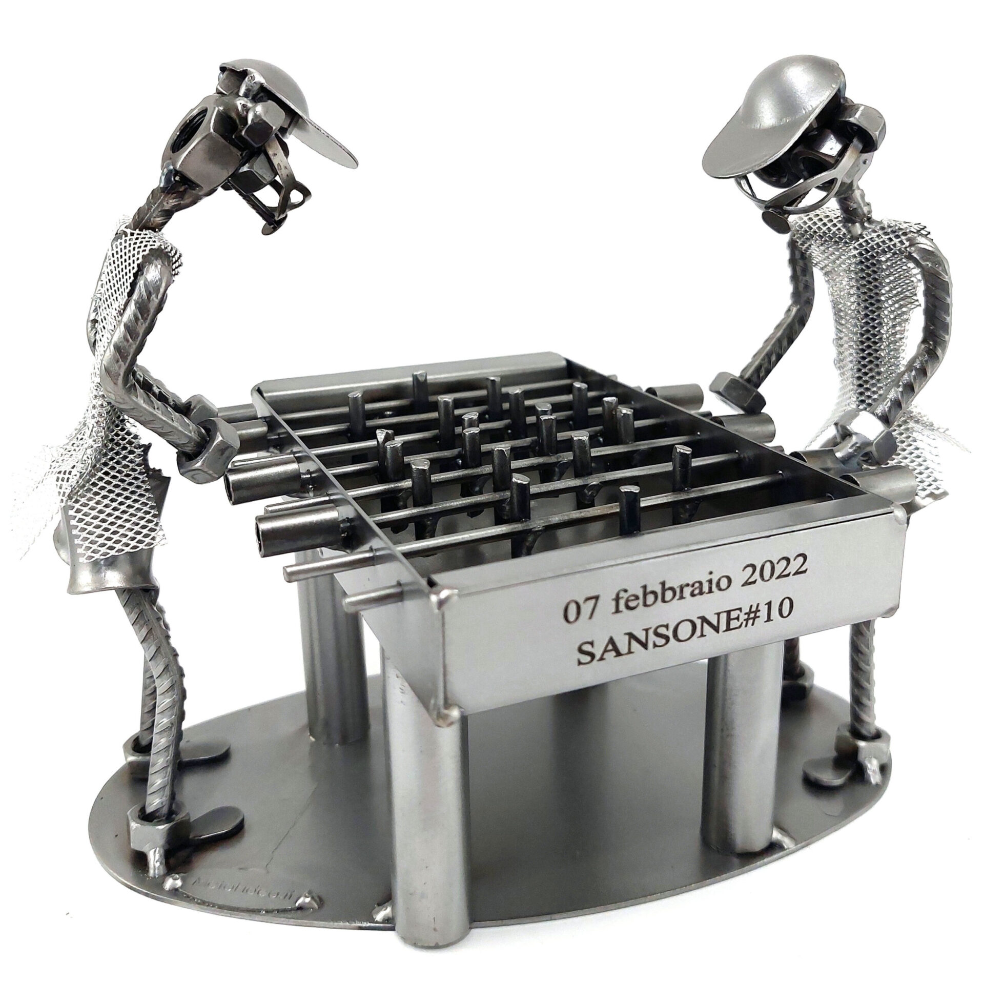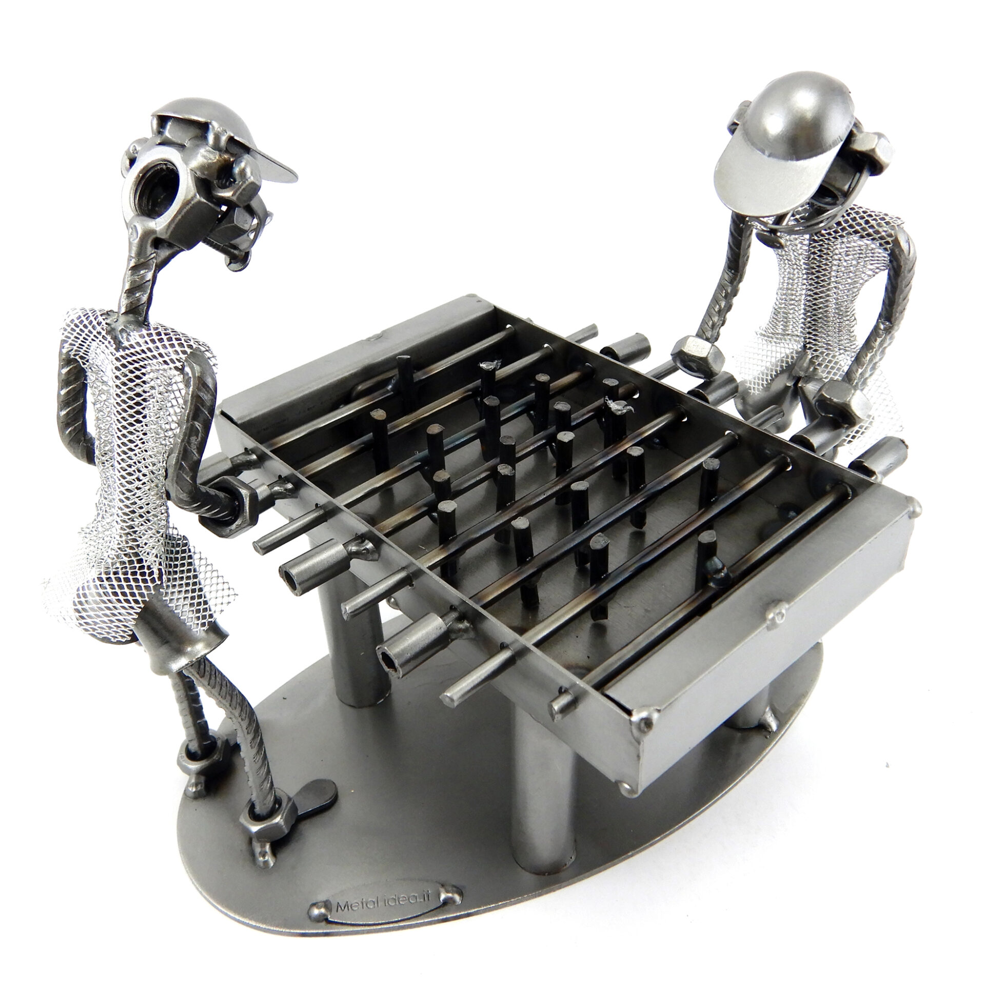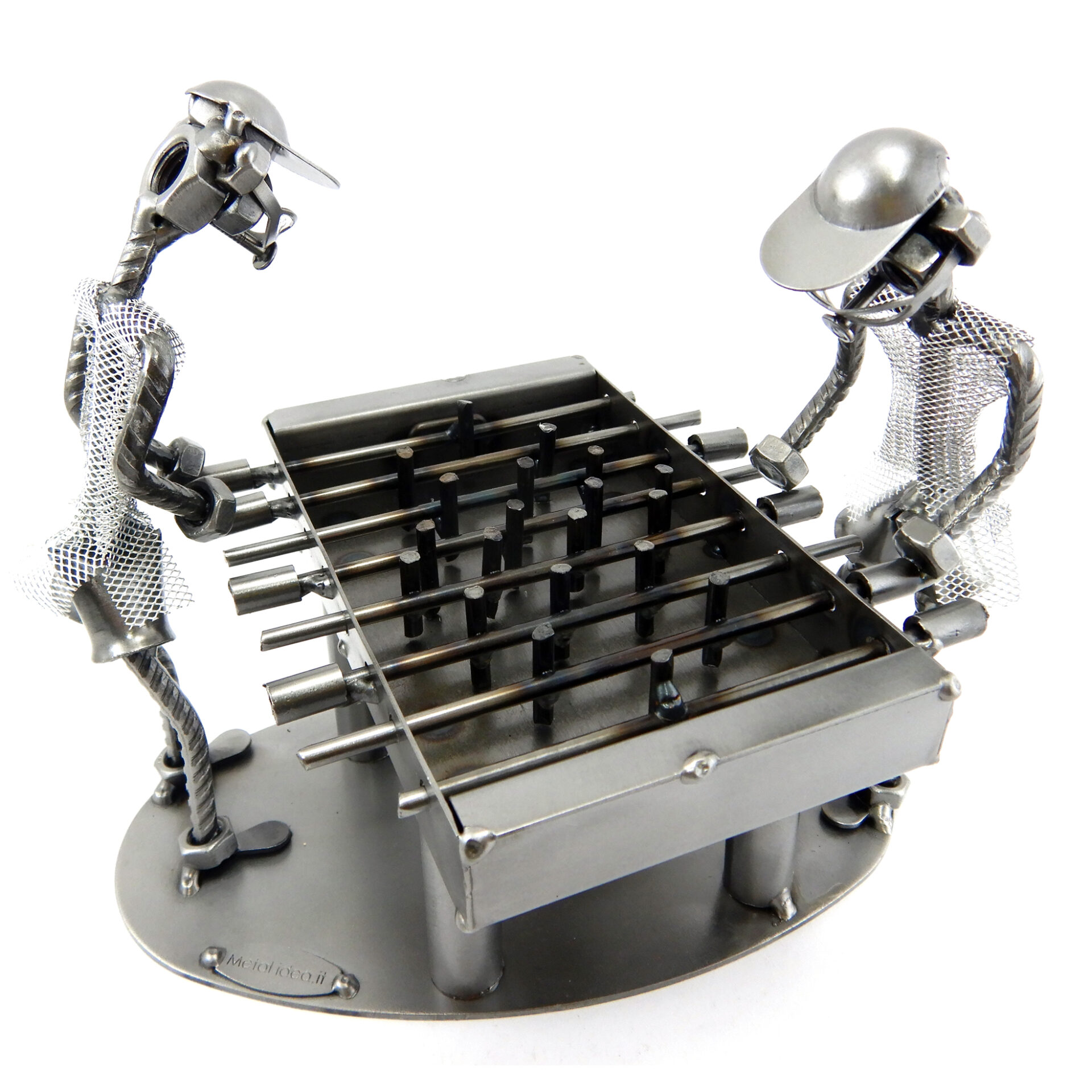 SCULTURA IN METALLO ARTIGIANALE RAFFIGURANTE DUE GIOCATORI DI CALCIO BALILLA