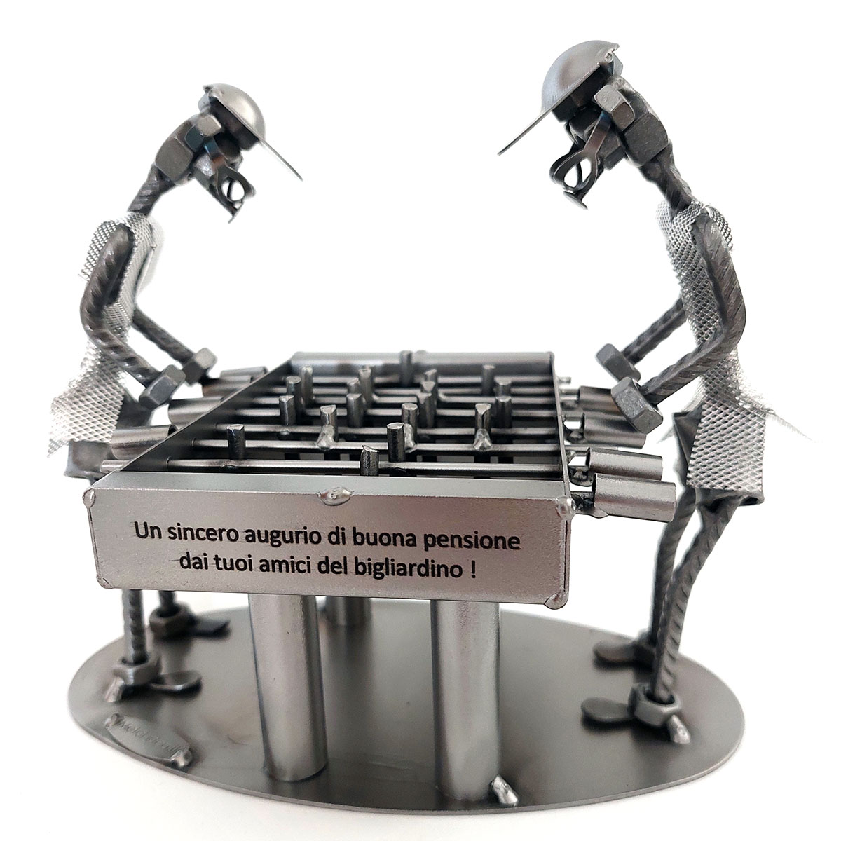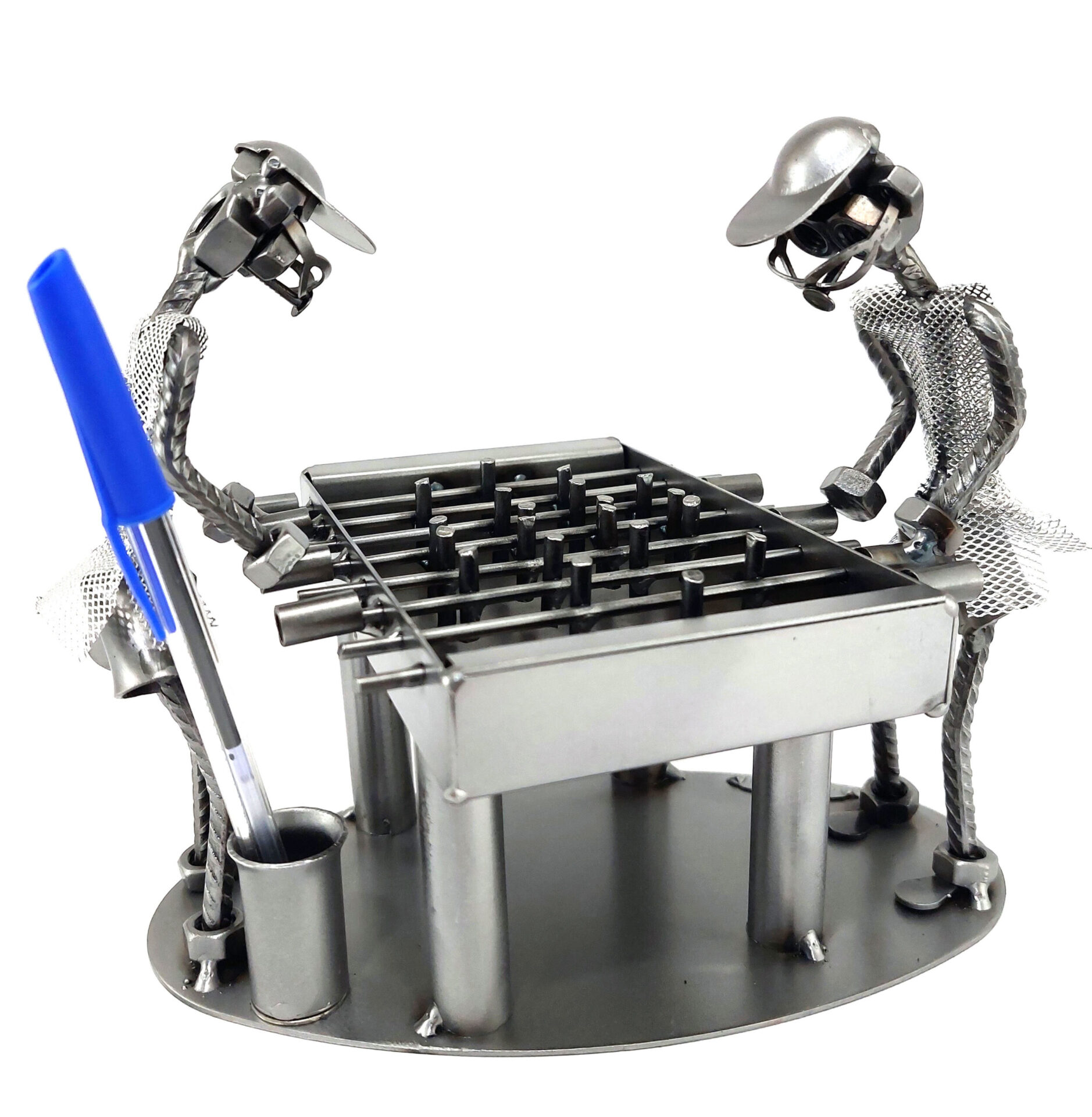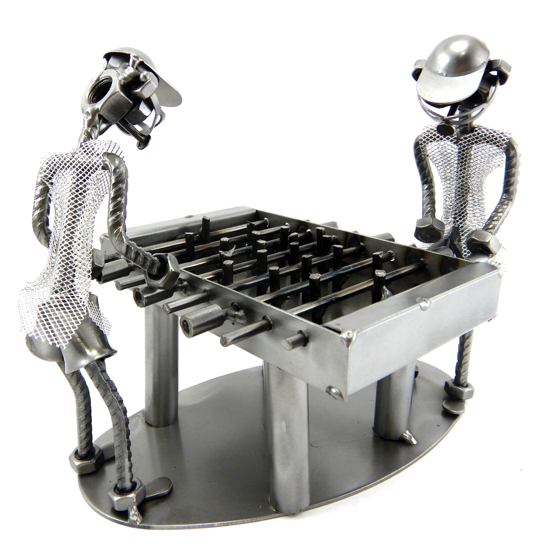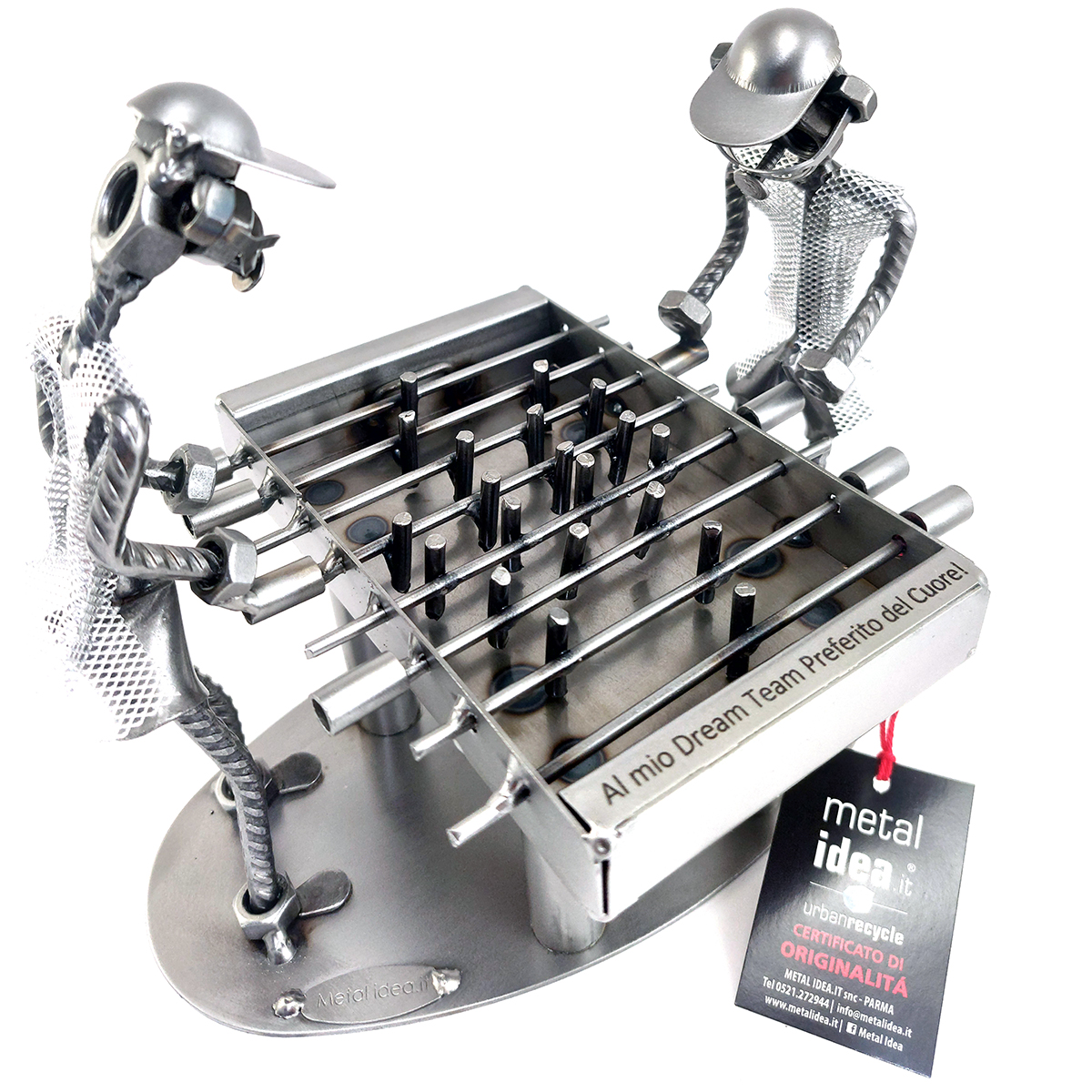 SCULTURA IN METALLO ARTIGIANALE RAFFIGURANTE DUE GIOCATORI DI CALCIO BALILLA