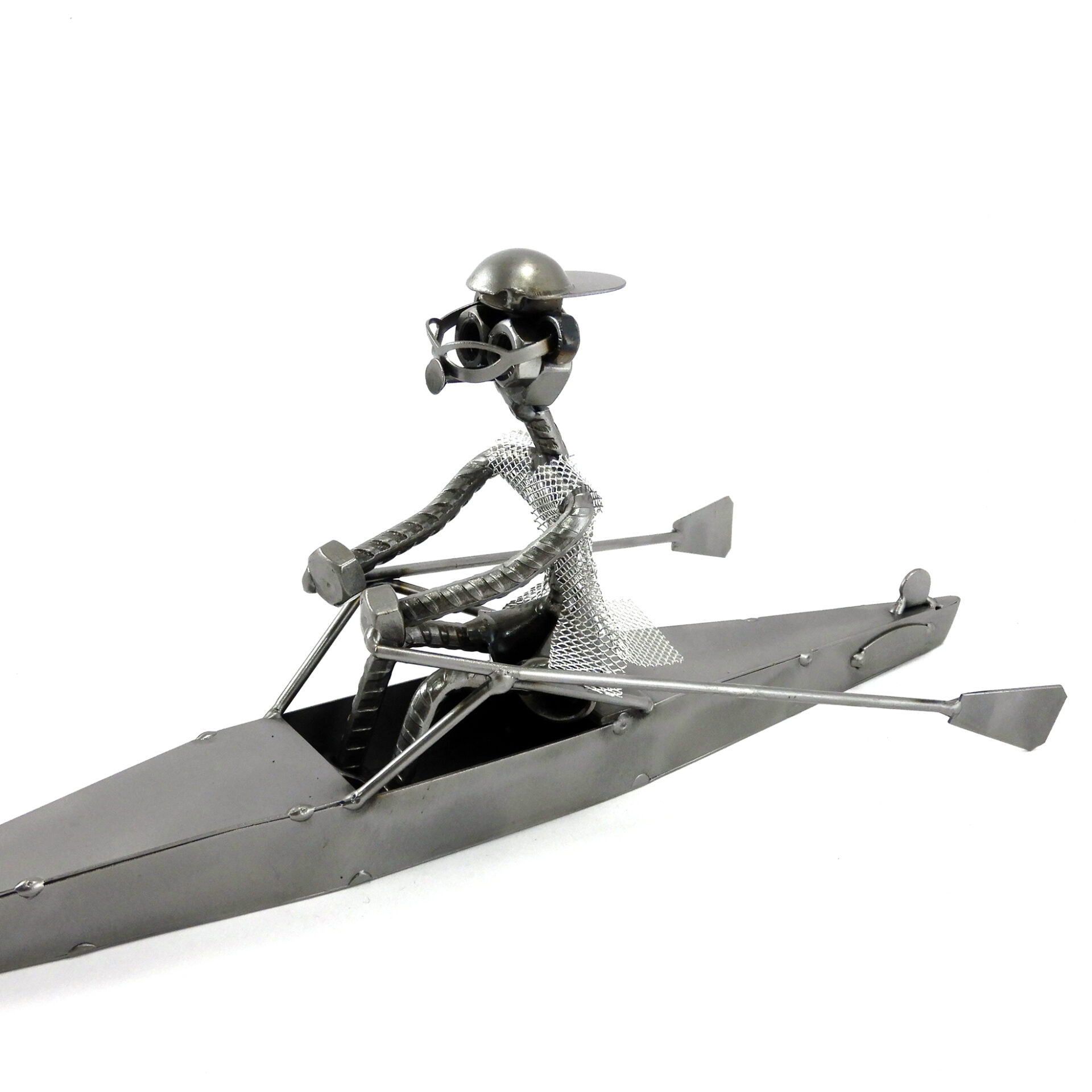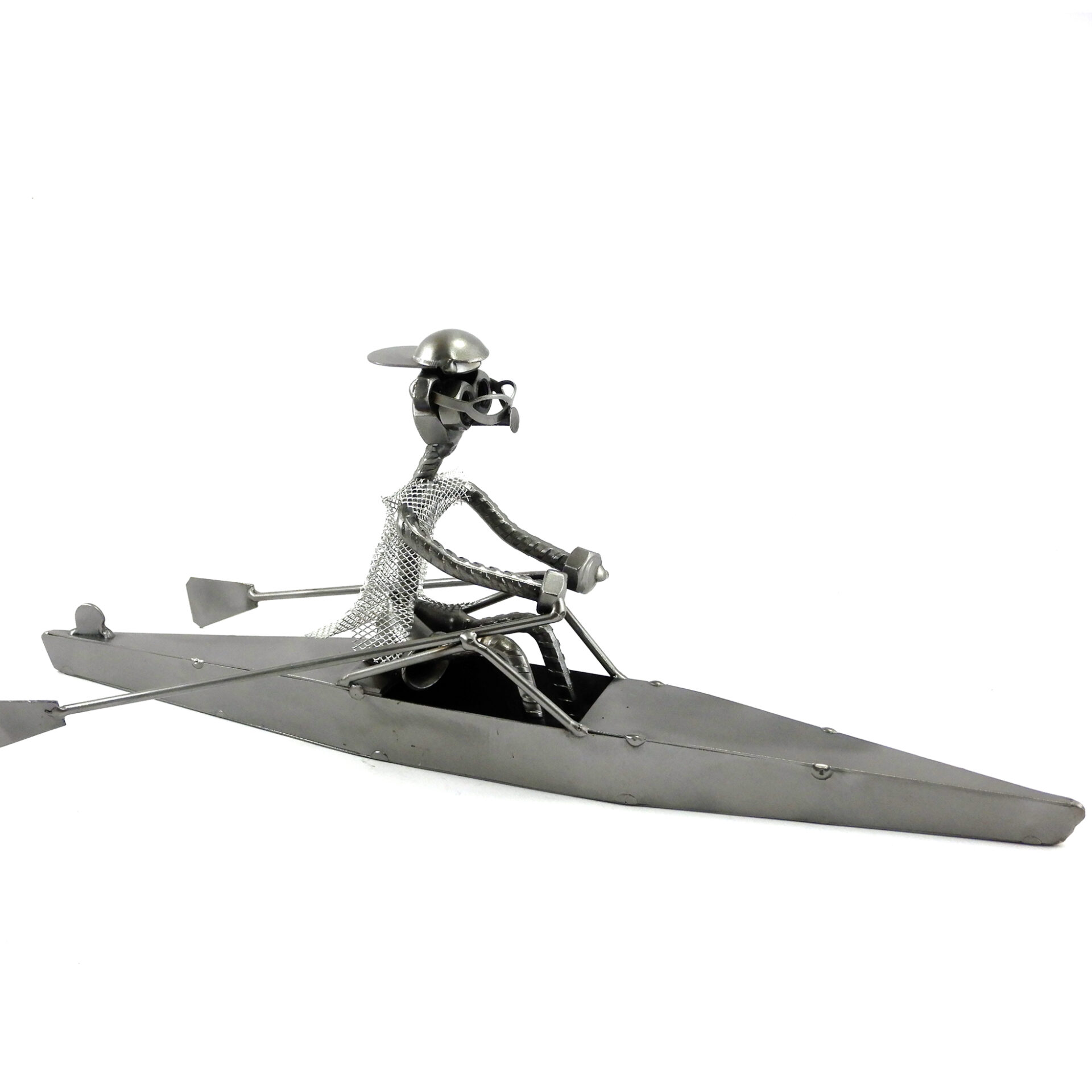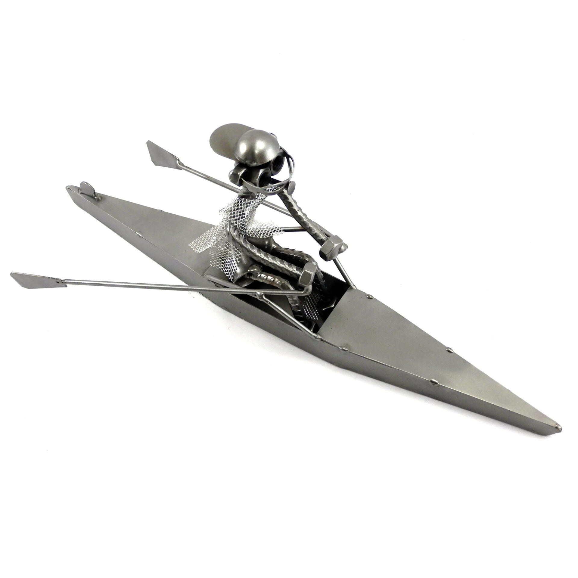 SCULTURA IN METALLO ARTIGIANALE RAFFIGURANTE IL CANOTTAGGIO CANOISTA