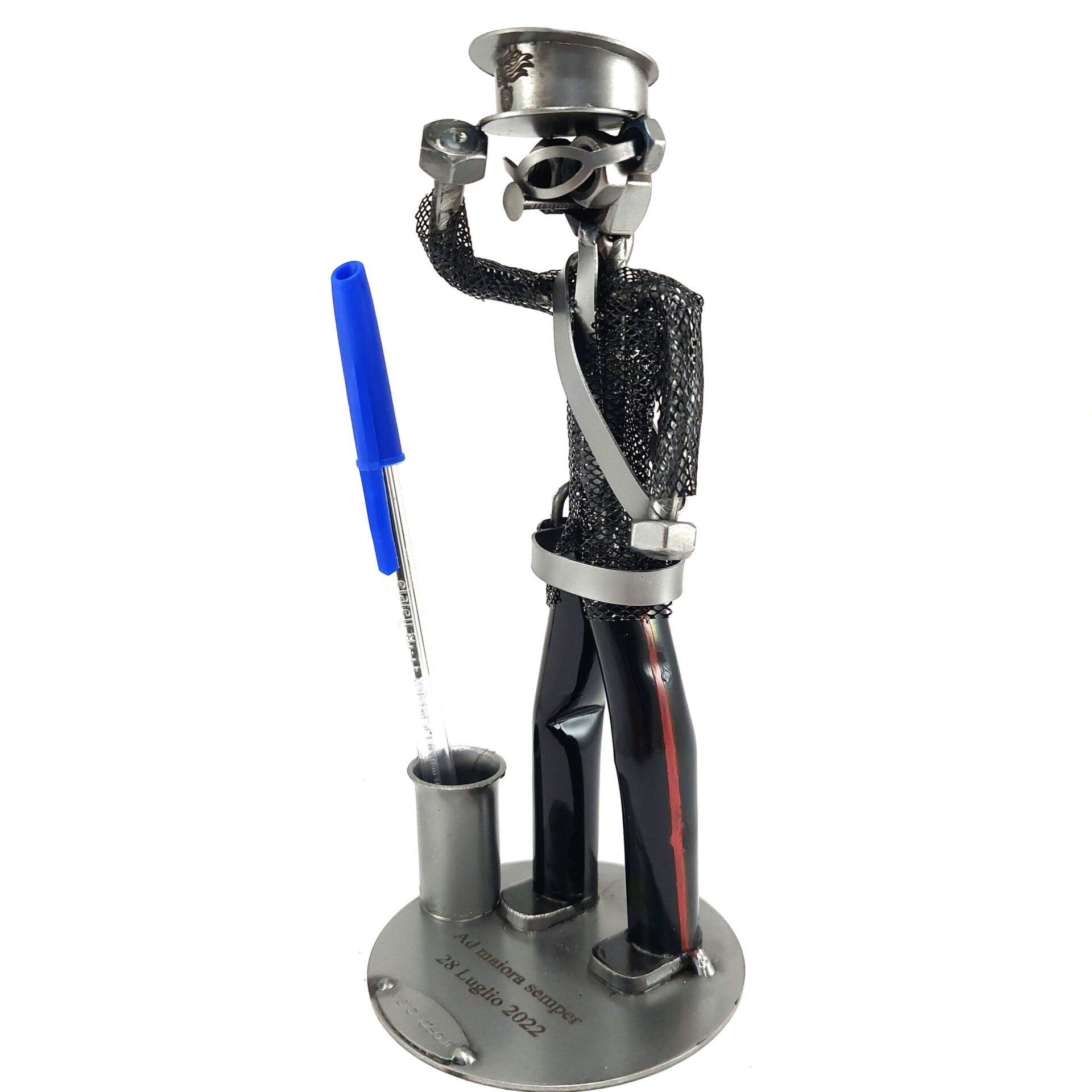 La nostra collezione di pezzi è caratterizzata da un moderno ed originale design “made in Italy”, firmato METAL IDEA.IT®, marchio registrato. Siamo orgogliosi di offrire creazioni uniche e di qualità, perfette per ogni occasione, come compleanni, anniversari, pensionamenti, lauree, matrimoni, comunioni, cresime, premiazioni sportive e feste della mamma e del papà. E se stai cercando un regalo davvero speciale e unico, non cercare oltre: i nostri soggetti artigianali sono perfetti per te. Tieni presente che eventuali irregolarità o piccole imperfezioni non sono da ritenersi difetti, ma piuttosto autenticità della lavorazione artigianale.