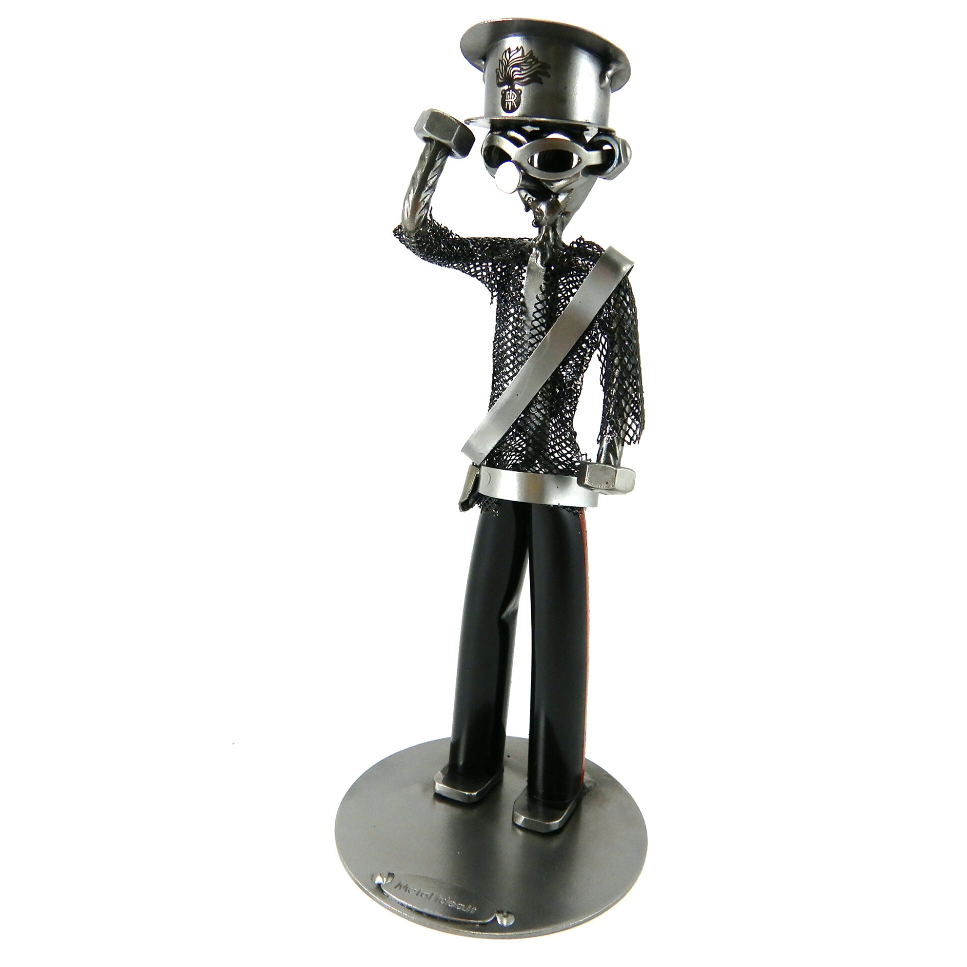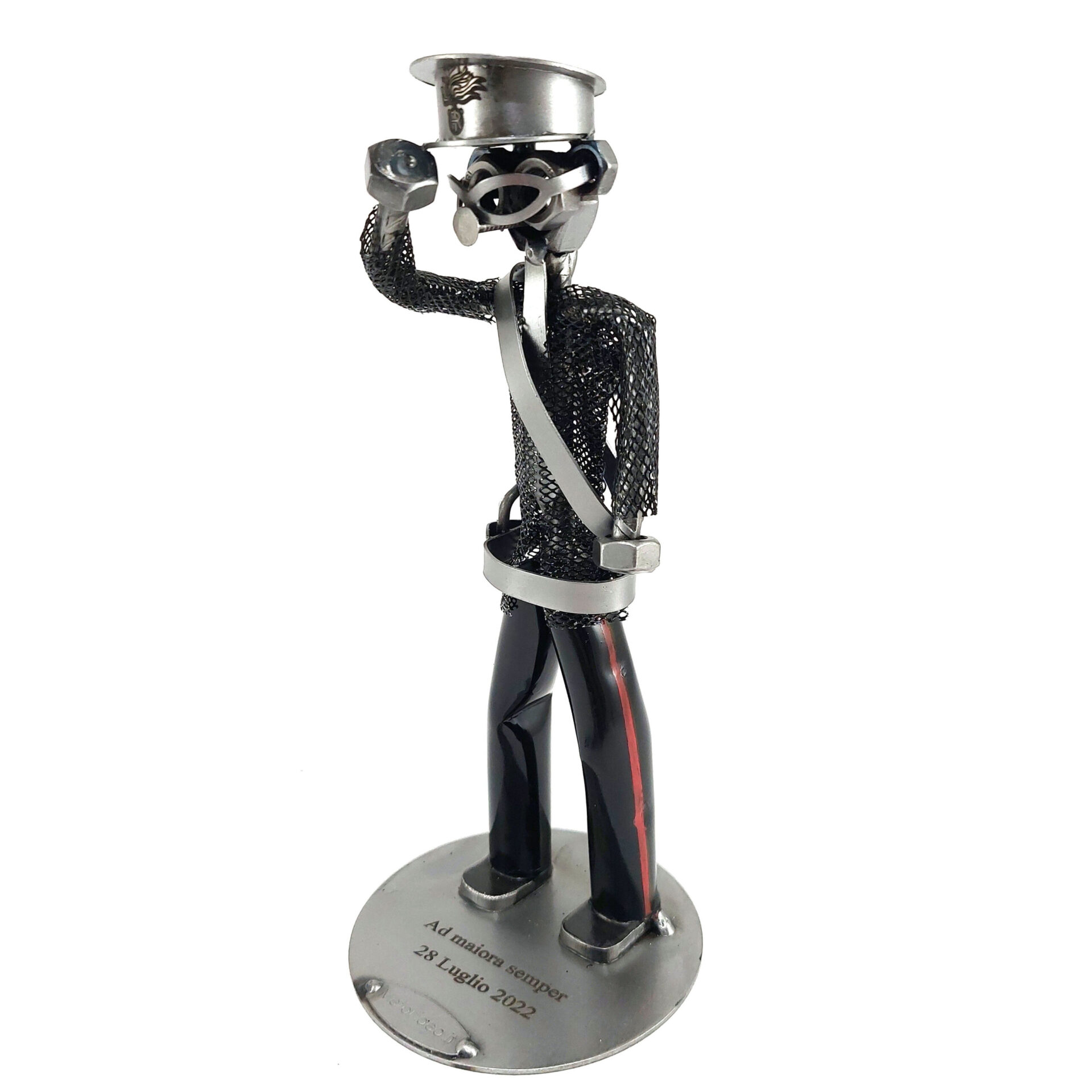 SCULTURA IN METALLO ARTIGIANALE RAFFIGURANTE CARABINIERE DIVISA NERA – L’ARMA DEI CARABINIERI CON LOGO SUL CAPPELLO E DIVISA NERA