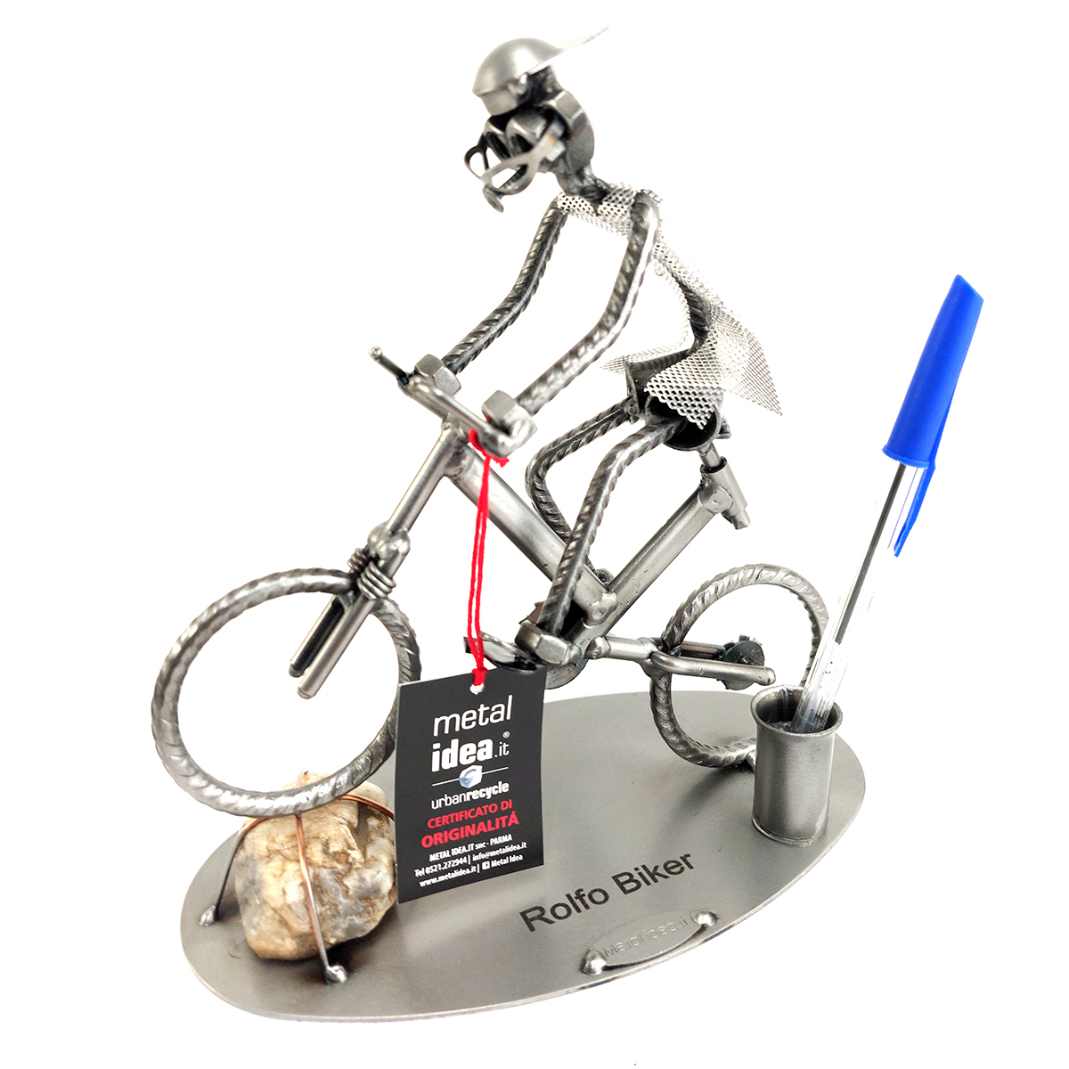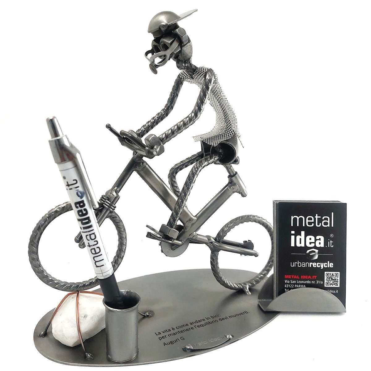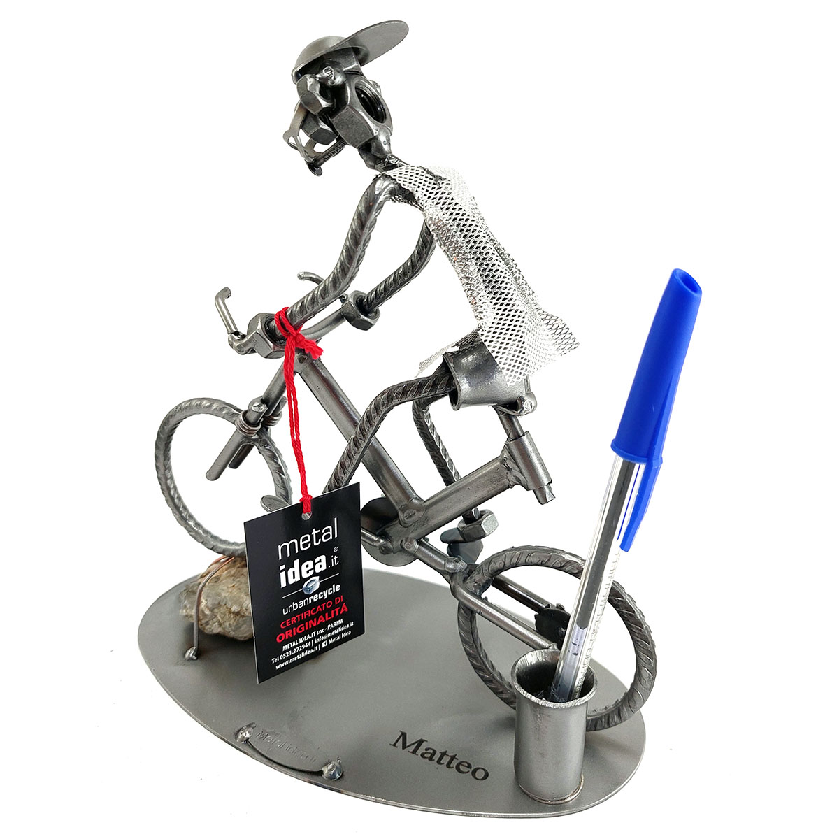 La nostra collezione di pezzi è caratterizzata da un moderno ed originale design “made in Italy”, firmato METAL IDEA.IT®, marchio registrato. Siamo orgogliosi di offrire creazioni uniche e di qualità, perfette per ogni occasione, come compleanni, anniversari, pensionamenti, lauree, matrimoni, comunioni, cresime, premiazioni sportive e feste della mamma e del papà. E se stai cercando un regalo davvero speciale e unico, non cercare oltre: i nostri soggetti artigianali sono perfetti per te. Tieni presente che eventuali irregolarità o piccole imperfezioni non sono da ritenersi difetti, ma piuttosto autenticità della lavorazione artigianale.