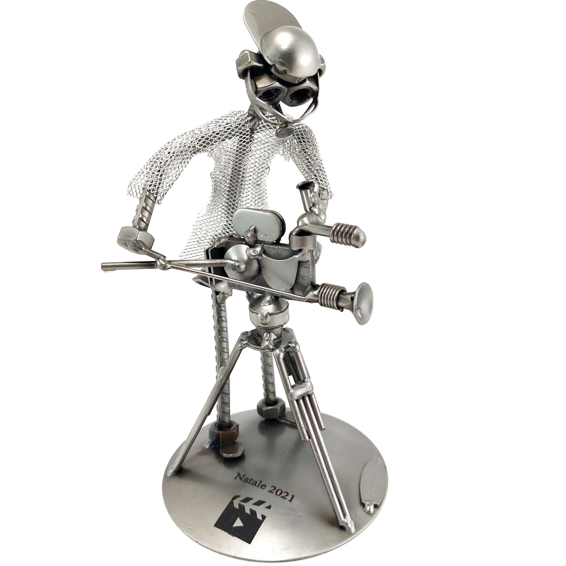 SCULTURA IN METALLO ARTIGIANALE RAFFIGURANTE IL CINEOPERATORE – KAMERAMAN – REGISTA
