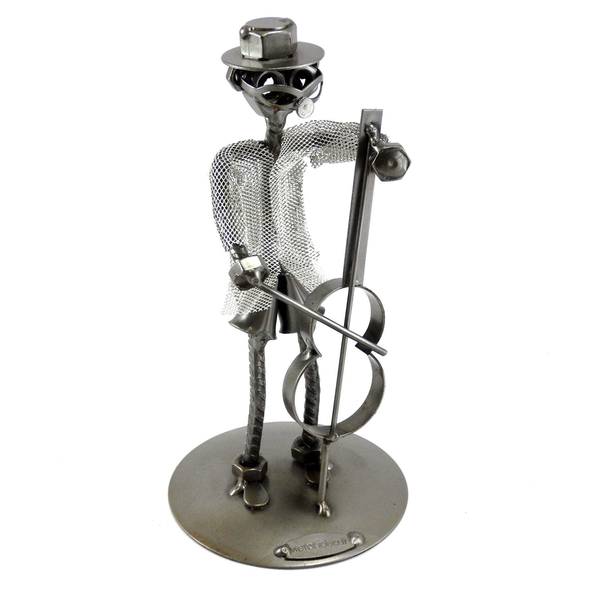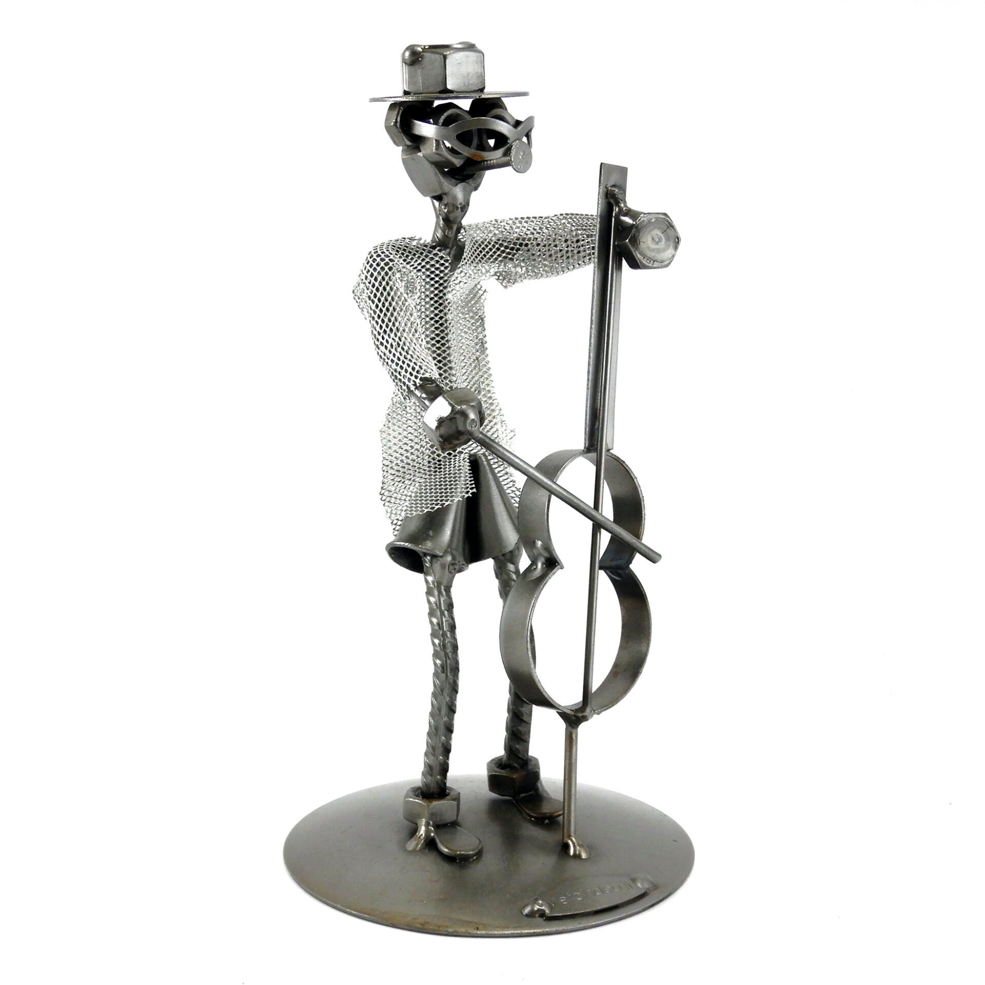 SCULTURA IN METALLO ARTIGIANALE RAFFIGURANTE IL CONTRABBASSISTA