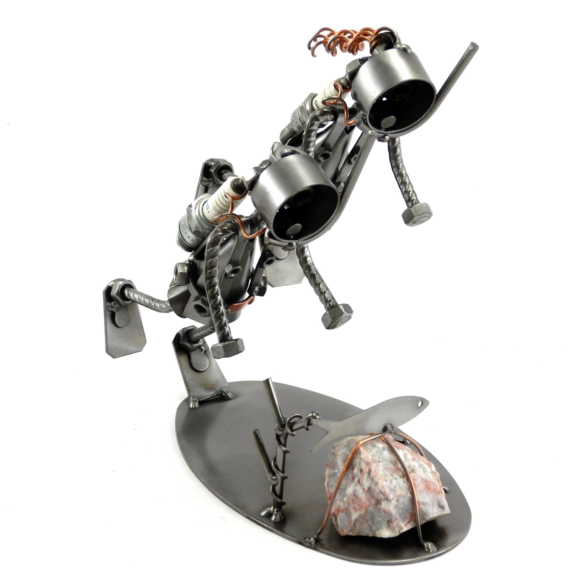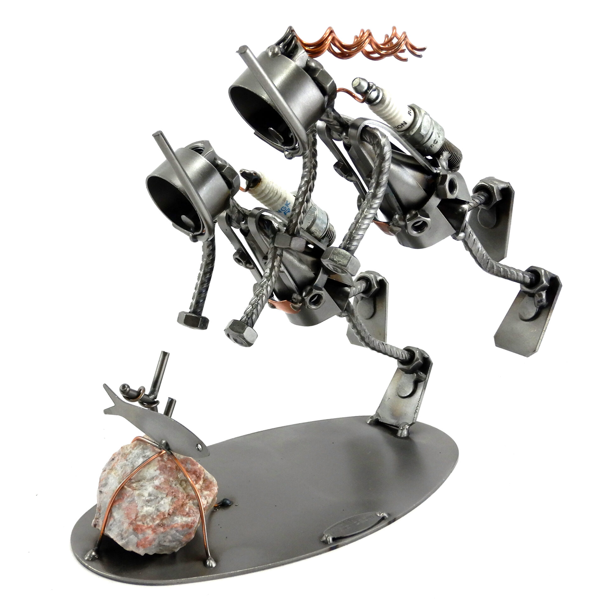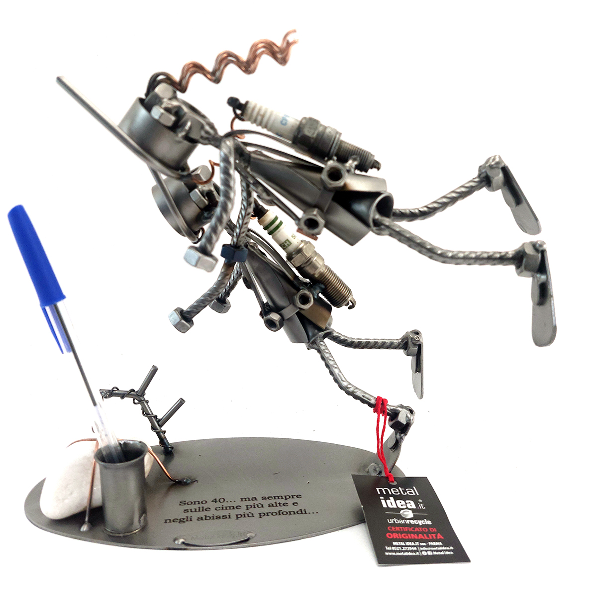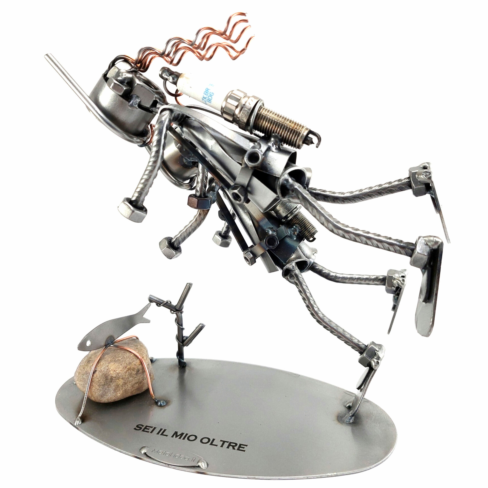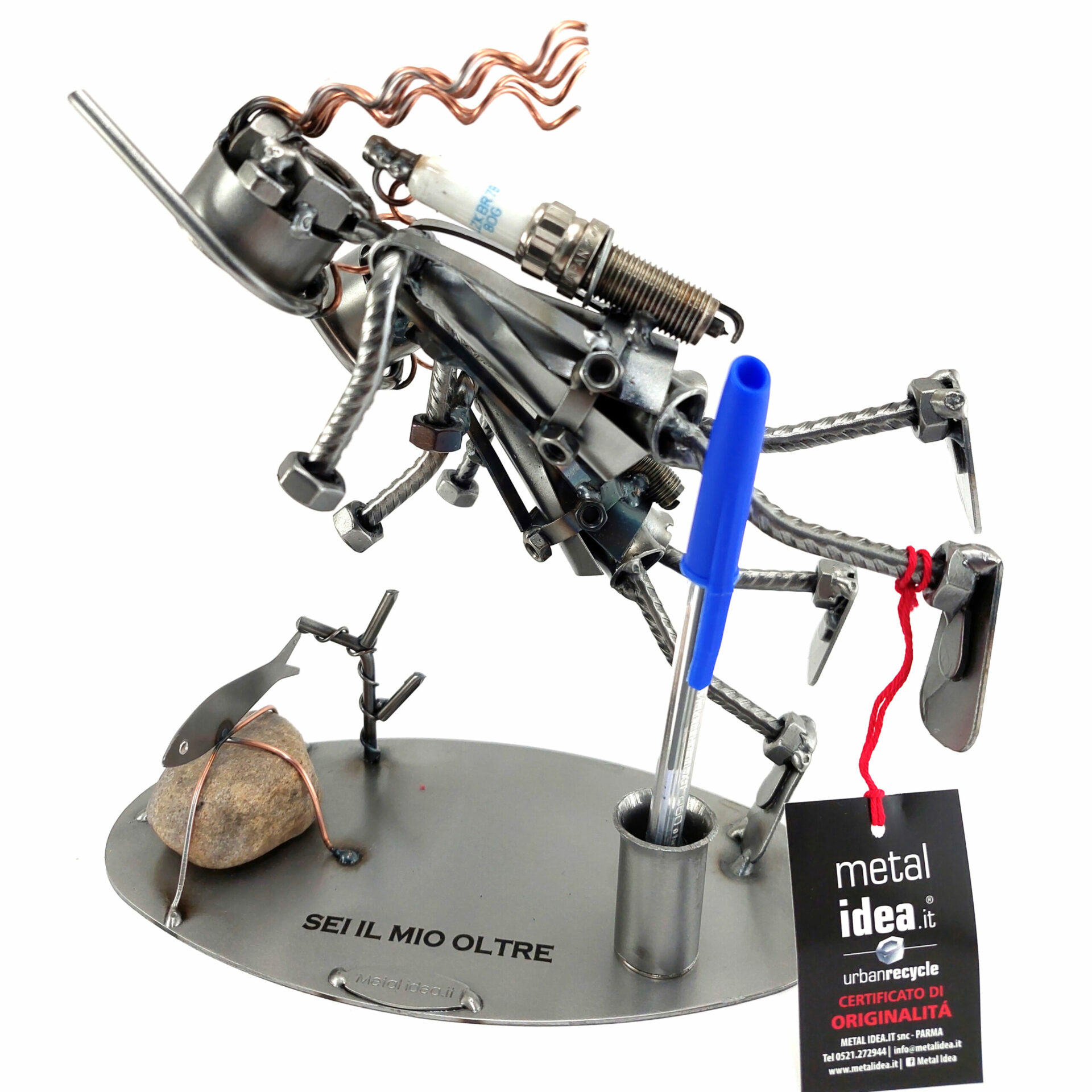 Benvenuti nel mondo di Metal Idea® Italian Design, dove originalità e creatività si incontrano per creare pezzi unici e sorprendenti. Tutti i nostri soggetti sono realizzati artigianalmente, utilizzando la saldatura di vari componenti meccanici, quali viti, bulloni, rondelle, chiodi e molto altro ancora, con un’accurata manualità. Inoltre, ci preoccupiamo di scegliere le migliori materie prime disponibili sul mercato, preferibilmente utilizzando pezzi riciclati per creare soggetti dallo stile unico ed originale.