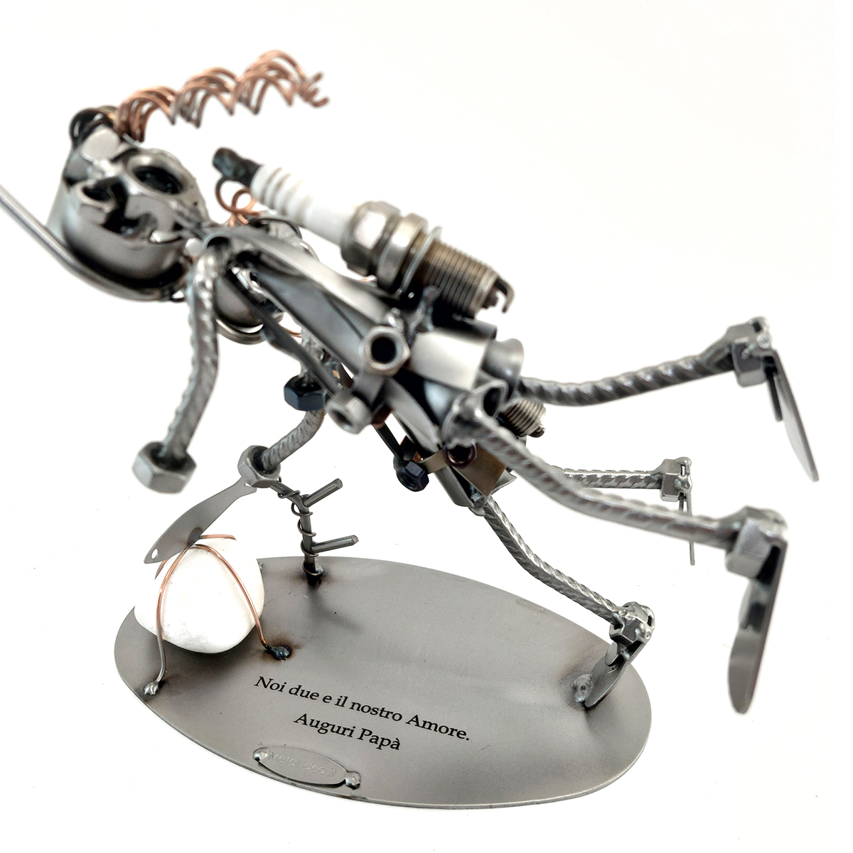 La nostra collezione di pezzi è caratterizzata da un moderno ed originale design “made in Italy”, firmato METAL IDEA.IT®, marchio registrato. Siamo orgogliosi di offrire creazioni uniche e di qualità, perfette per ogni occasione, come compleanni, anniversari, pensionamenti, lauree, matrimoni, comunioni, cresime, premiazioni sportive e feste della mamma e del papà. E se stai cercando un regalo davvero speciale e unico, non cercare oltre: i nostri soggetti artigianali sono perfetti per te. Tieni presente che eventuali irregolarità o piccole imperfezioni non sono da ritenersi difetti, ma piuttosto autenticità della lavorazione artigianale.