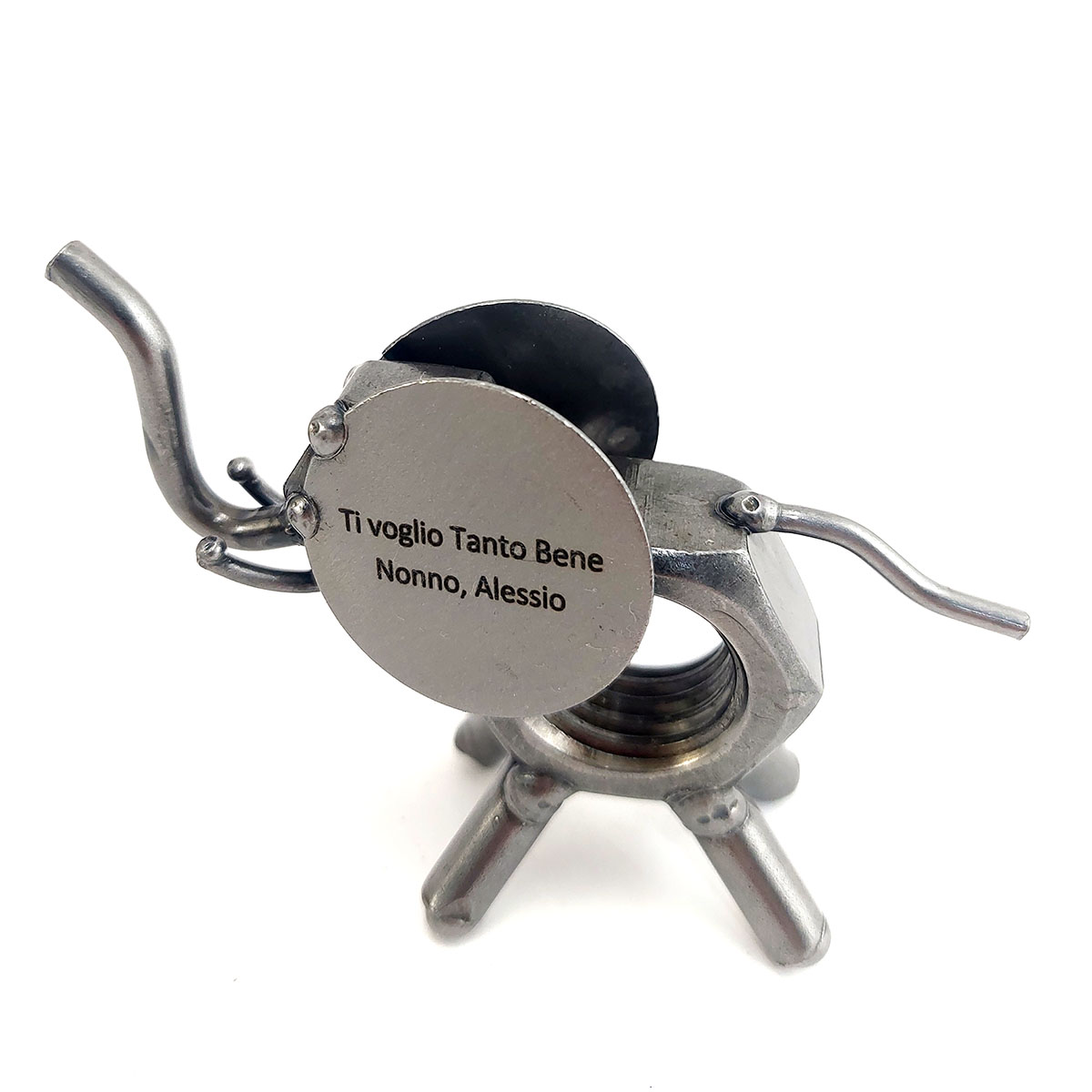 Benvenuti nel mondo di Metal Idea® Italian Design, dove originalità e creatività si incontrano per creare pezzi unici e sorprendenti. Tutti i nostri soggetti sono realizzati artigianalmente, utilizzando la saldatura di vari componenti meccanici, quali viti, bulloni, rondelle, chiodi e molto altro ancora, con un’accurata manualità. Inoltre, ci preoccupiamo di scegliere le migliori materie prime disponibili sul mercato, preferibilmente utilizzando pezzi riciclati per creare soggetti dallo stile unico ed originale.