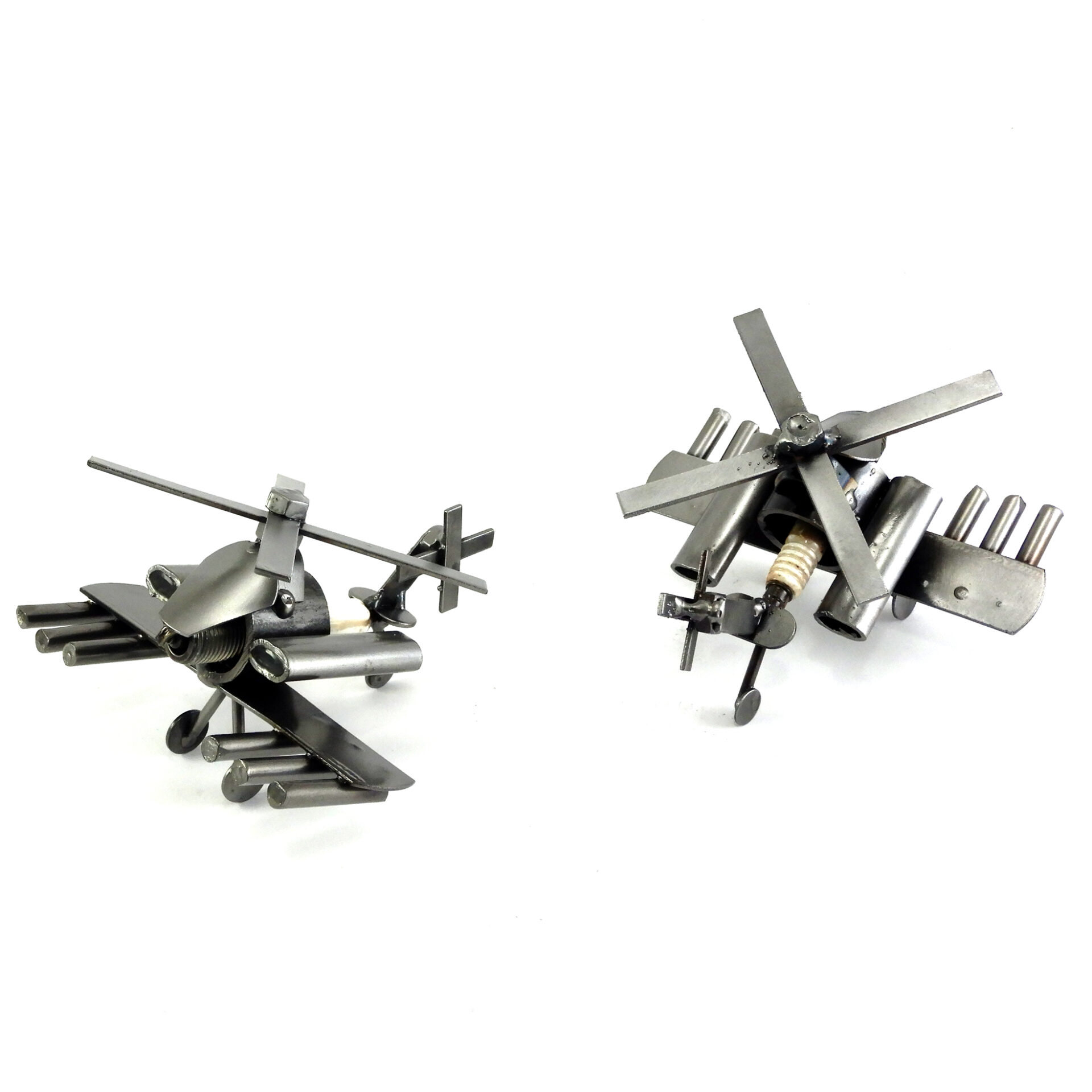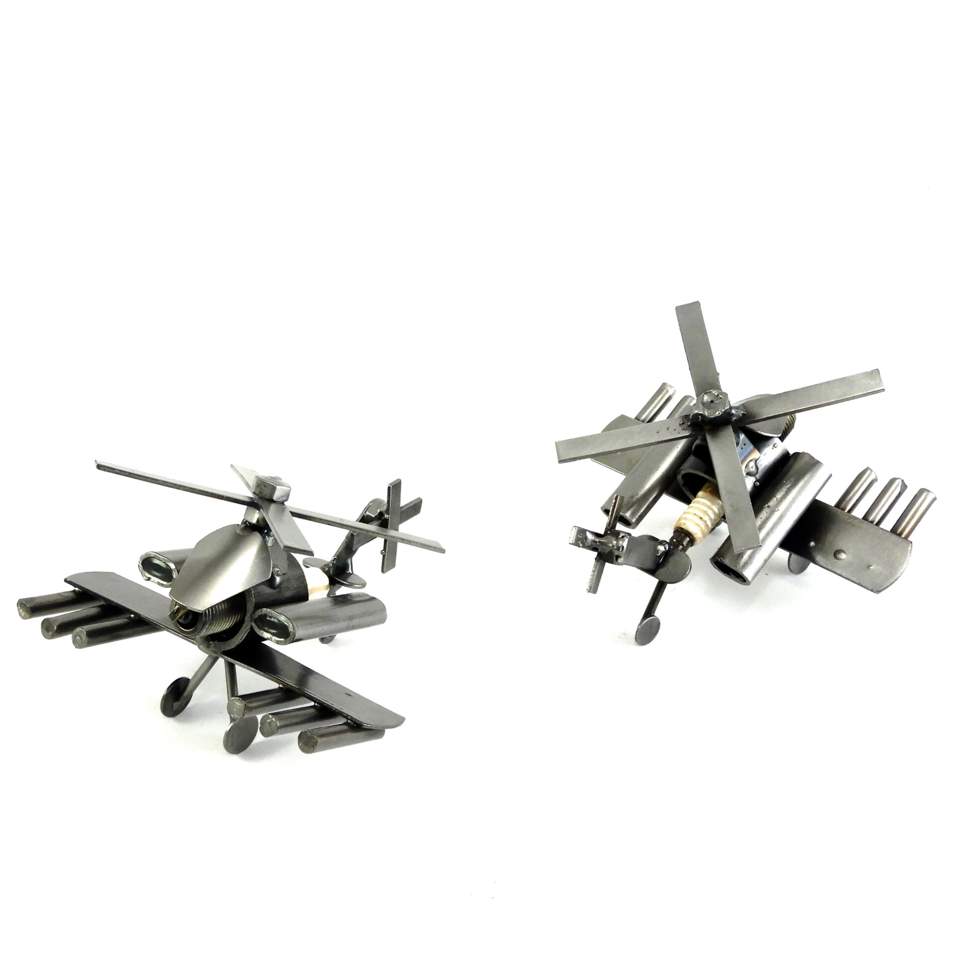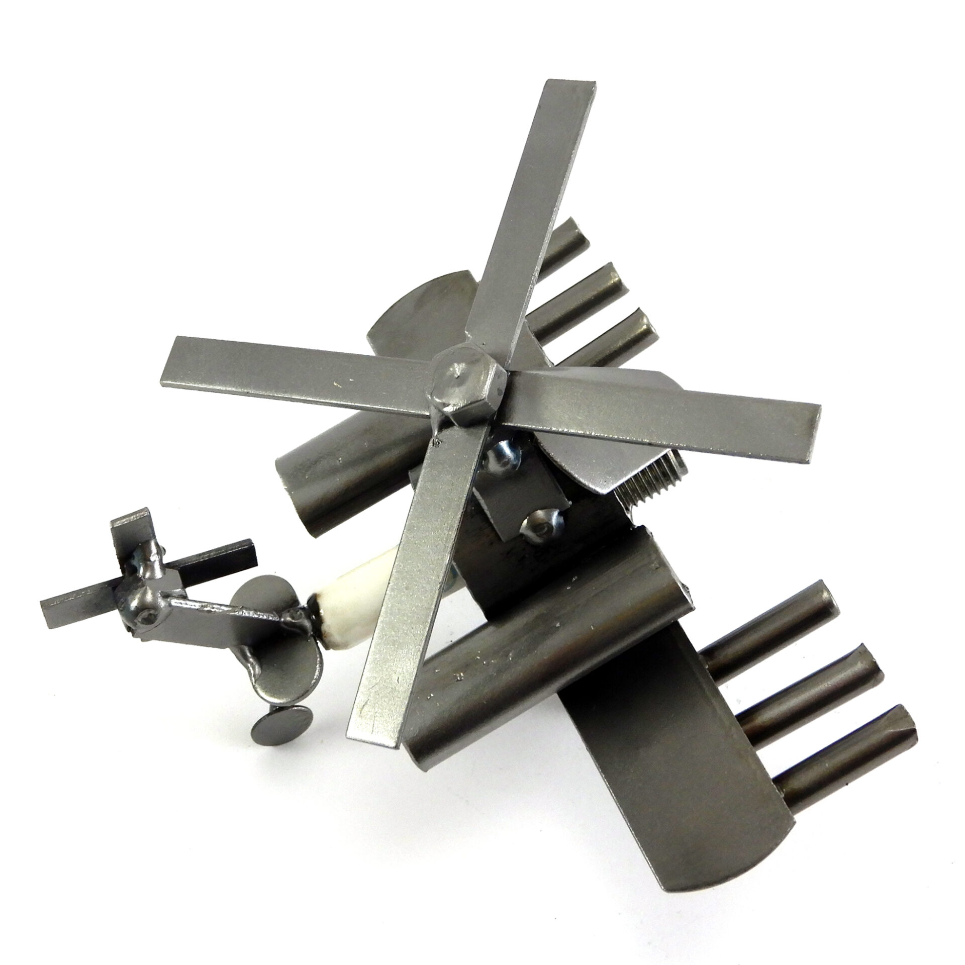 SCULTURA IN METALLO ARTIGIANALE RAFFIGURANTE UN ELICOTTERO MINI, realizzato mediante l’utilizzo di una candela dell’auto riciclata.