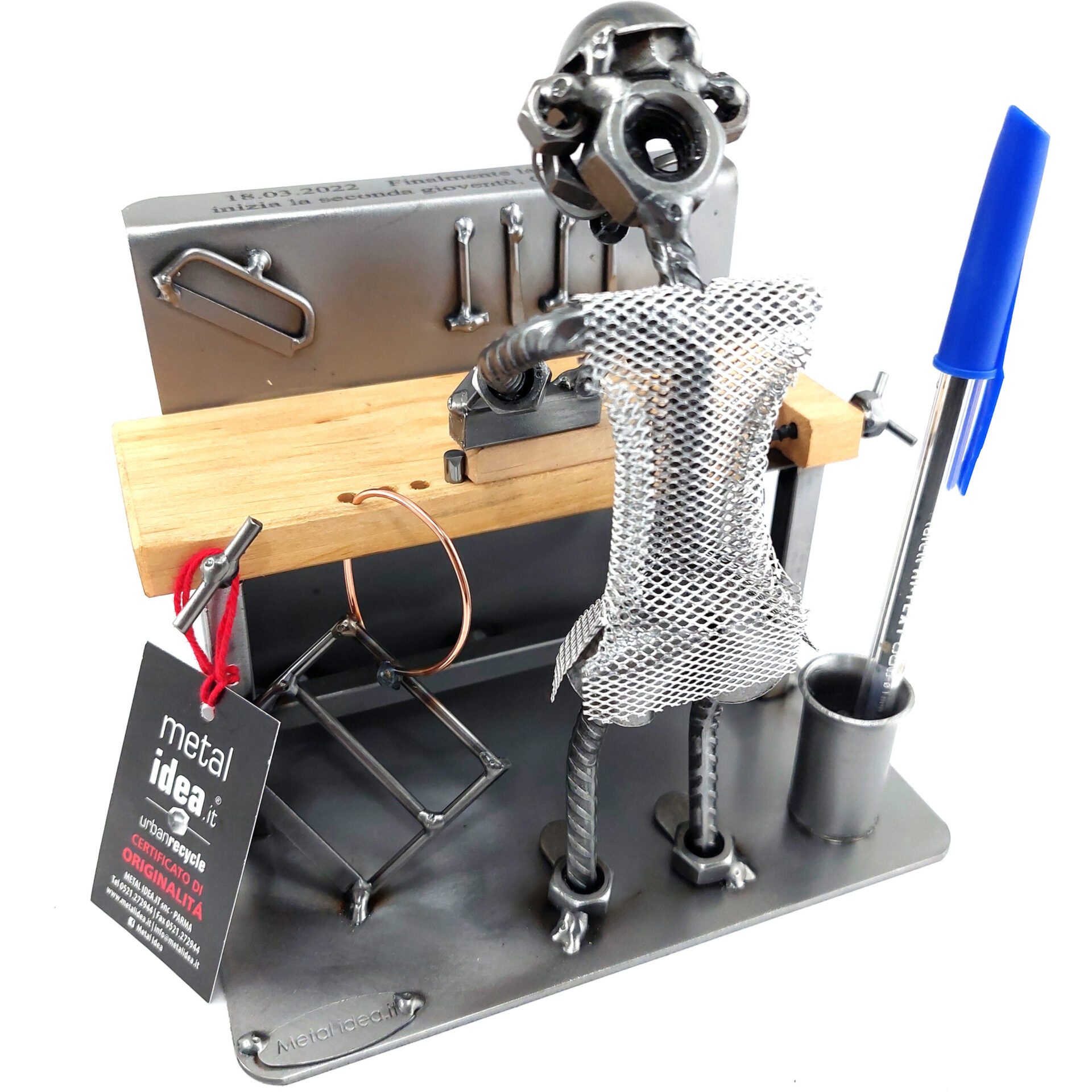 La nostra collezione di pezzi è caratterizzata da un moderno ed originale design “made in Italy”, firmato METAL IDEA.IT®, marchio registrato. Siamo orgogliosi di offrire creazioni uniche e di qualità, perfette per ogni occasione, come compleanni, anniversari, pensionamenti, lauree, matrimoni, comunioni, cresime, premiazioni sportive e feste della mamma e del papà. E se stai cercando un regalo davvero speciale e unico, non cercare oltre: i nostri soggetti artigianali sono perfetti per te. Tieni presente che eventuali irregolarità o piccole imperfezioni non sono da ritenersi difetti, ma piuttosto autenticità della lavorazione artigianale.
