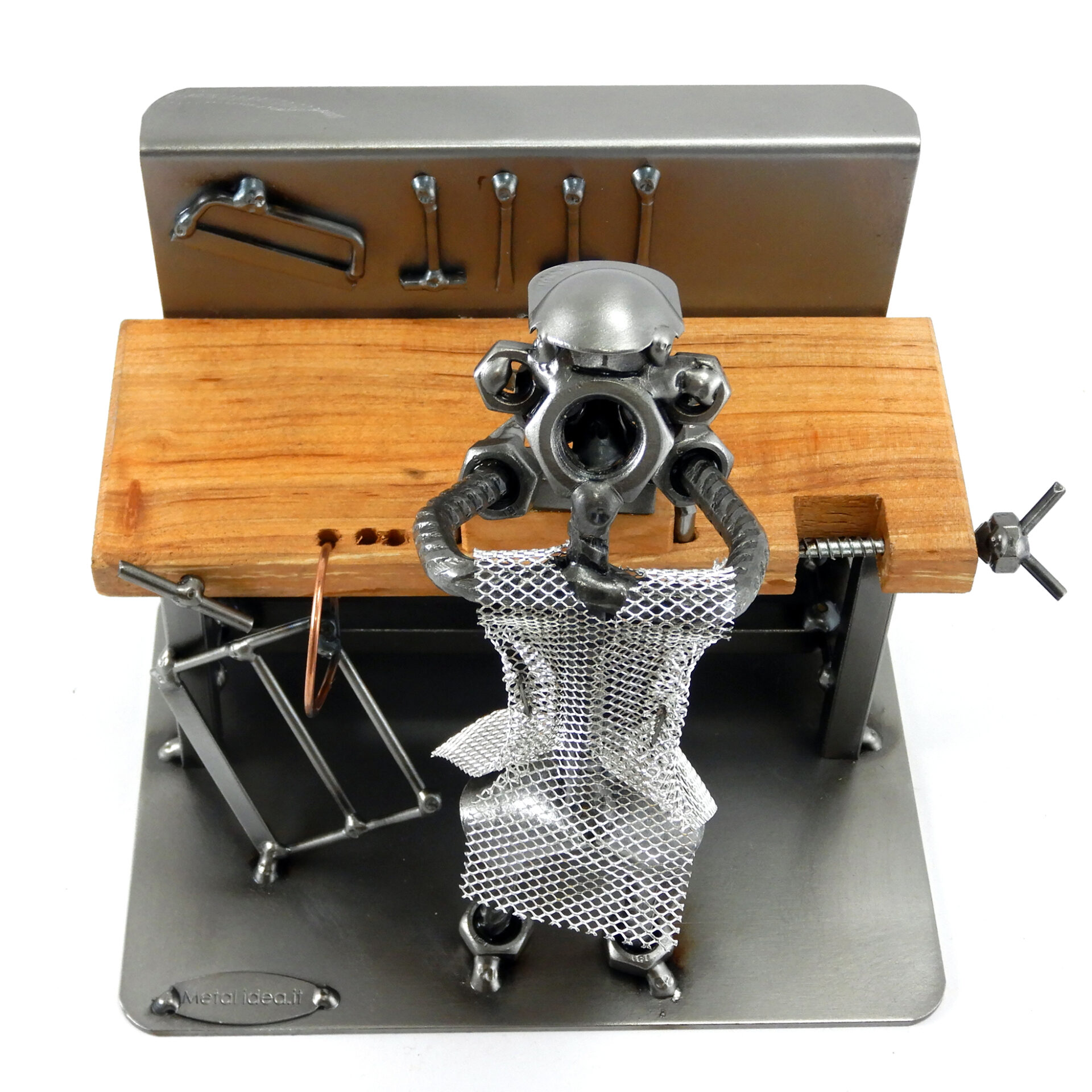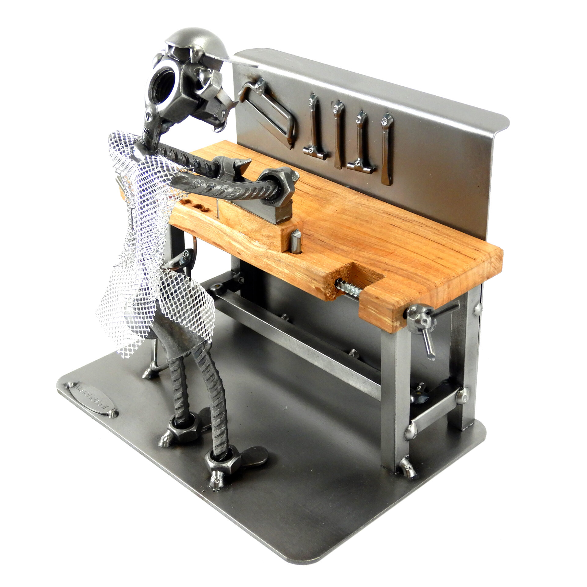 SCULTURA IN METALLO ARTIGIANALE RAFFIGURANTE IL FALEGNAME AL BANCO LAVORO CON GLI ATTREZZI o CHIUNQUE ABBIA LA PASSIONE DEL FAI DA TE…