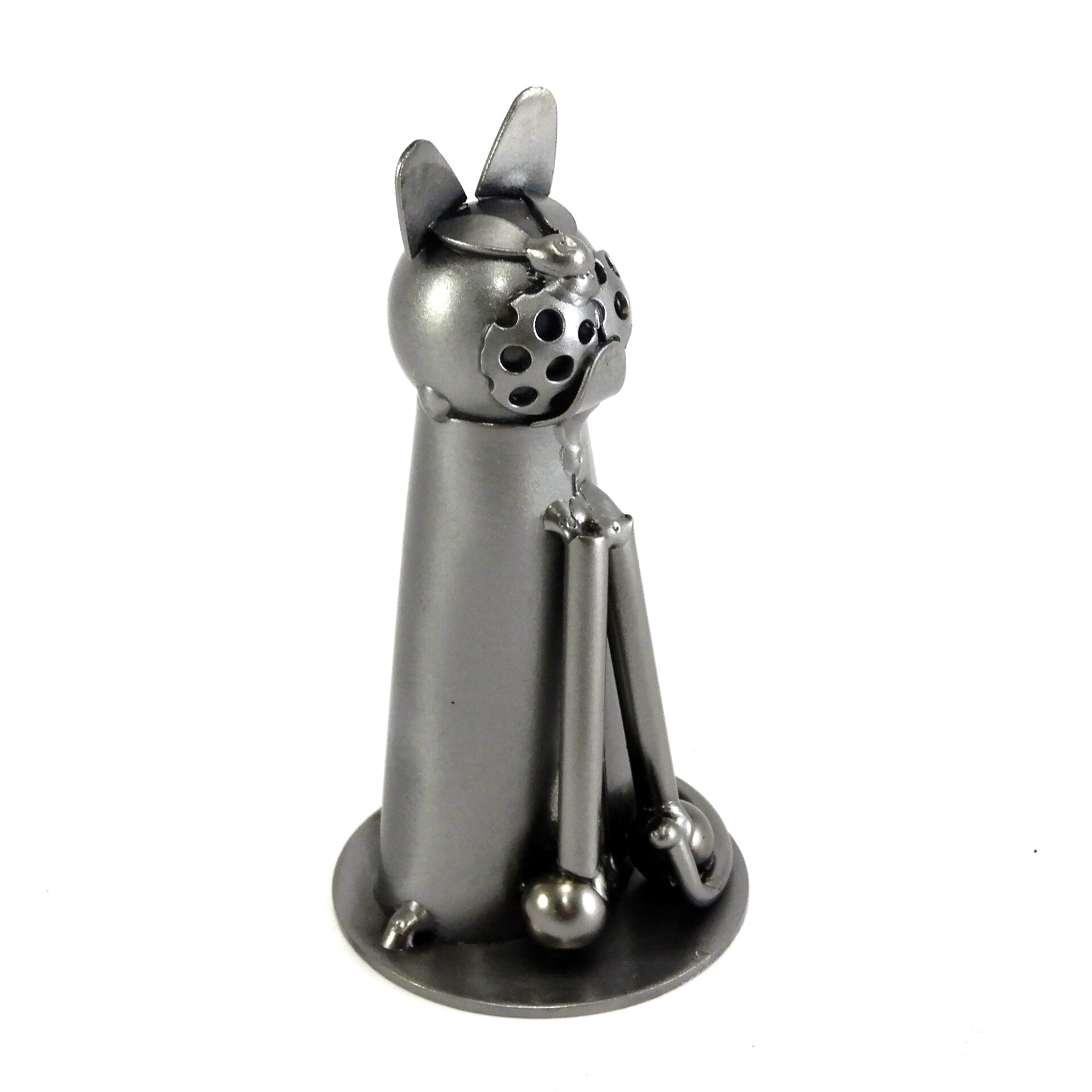 SCULTURA IN METALLO ARTIGIANALE RAFFIGURANTE UN GATTO IN POSIZIONE VERTICALE