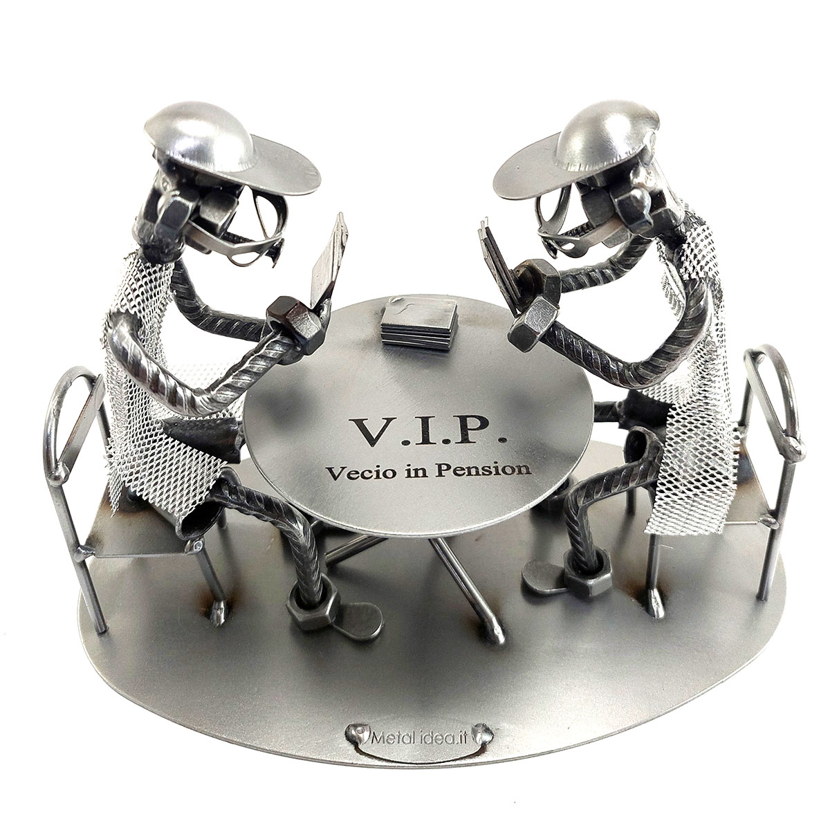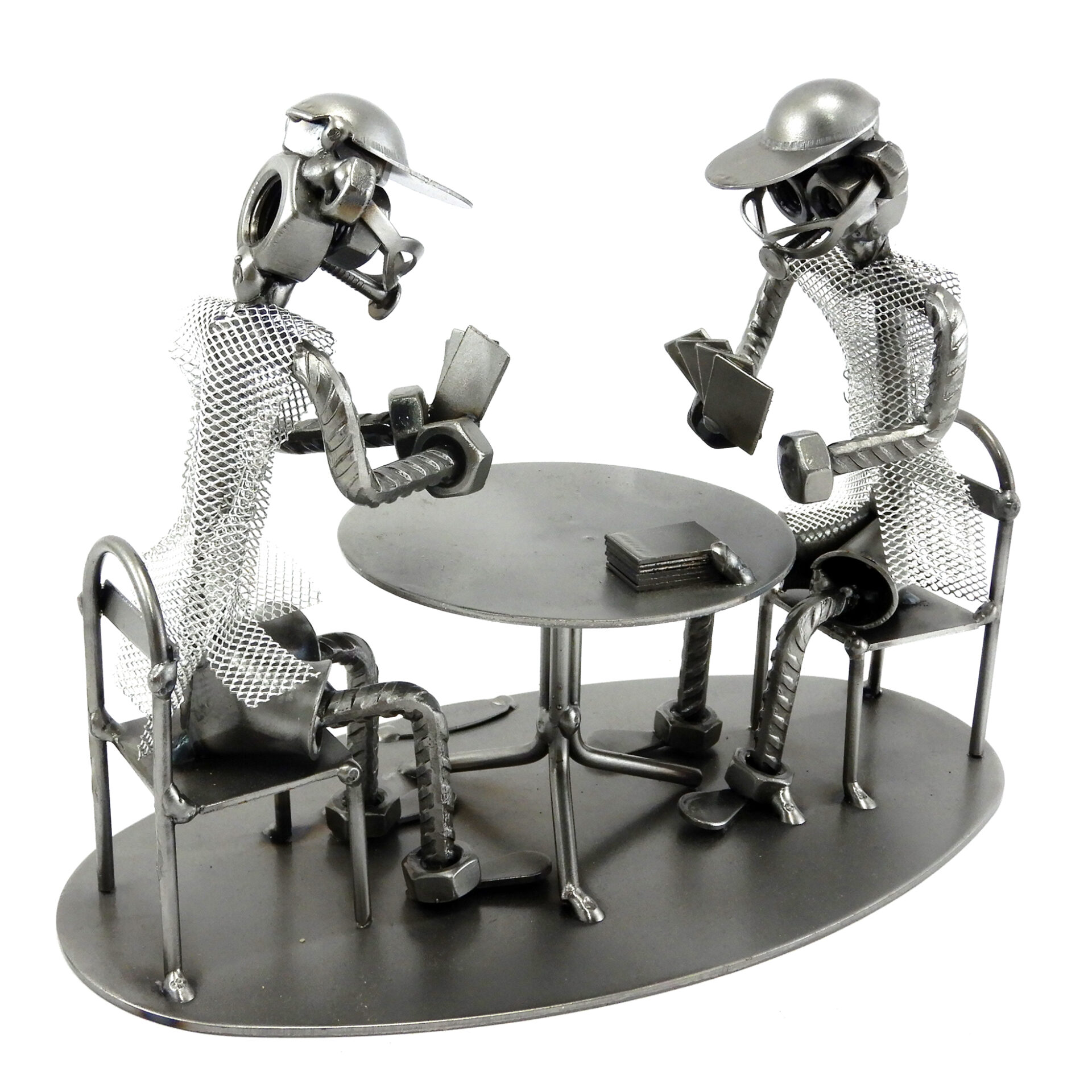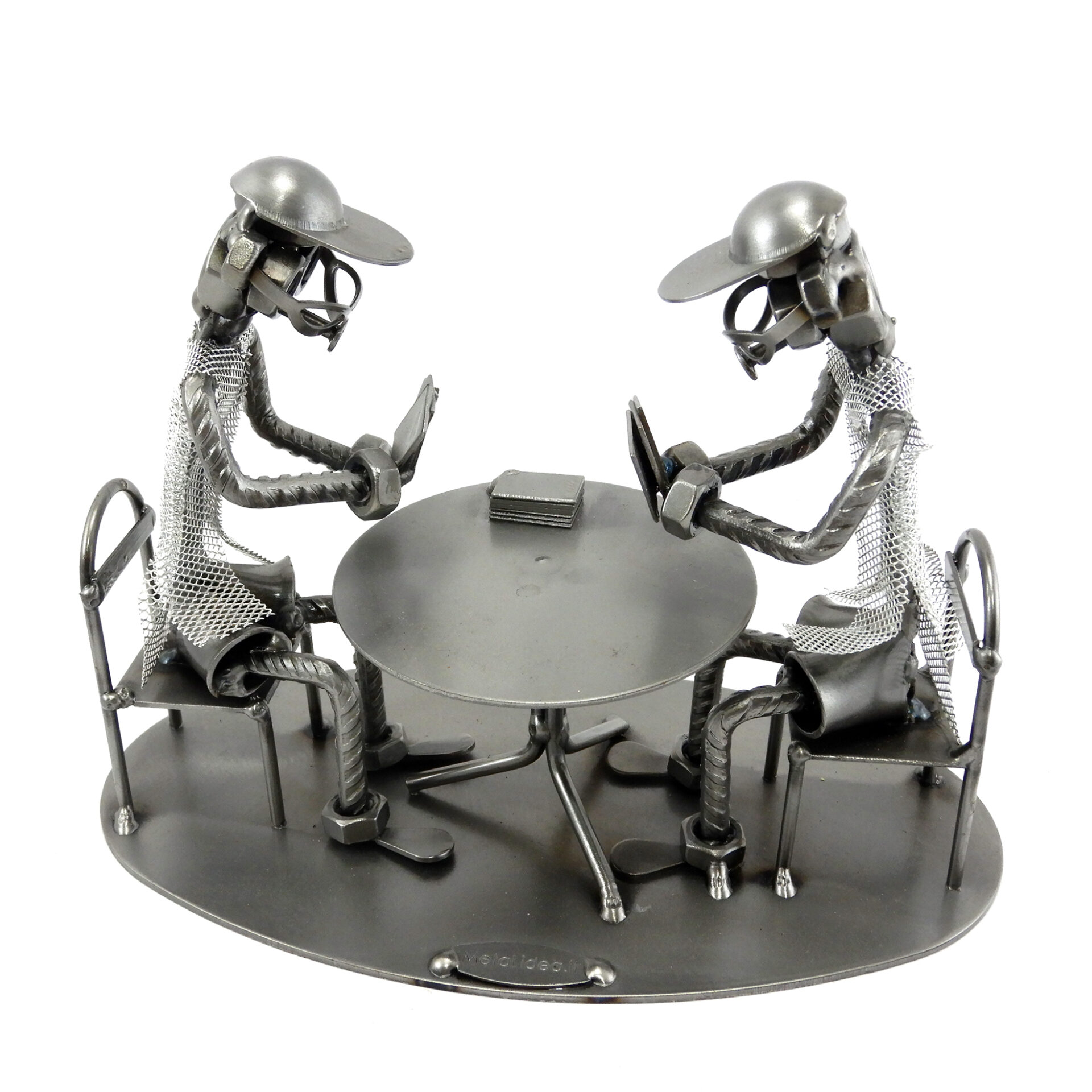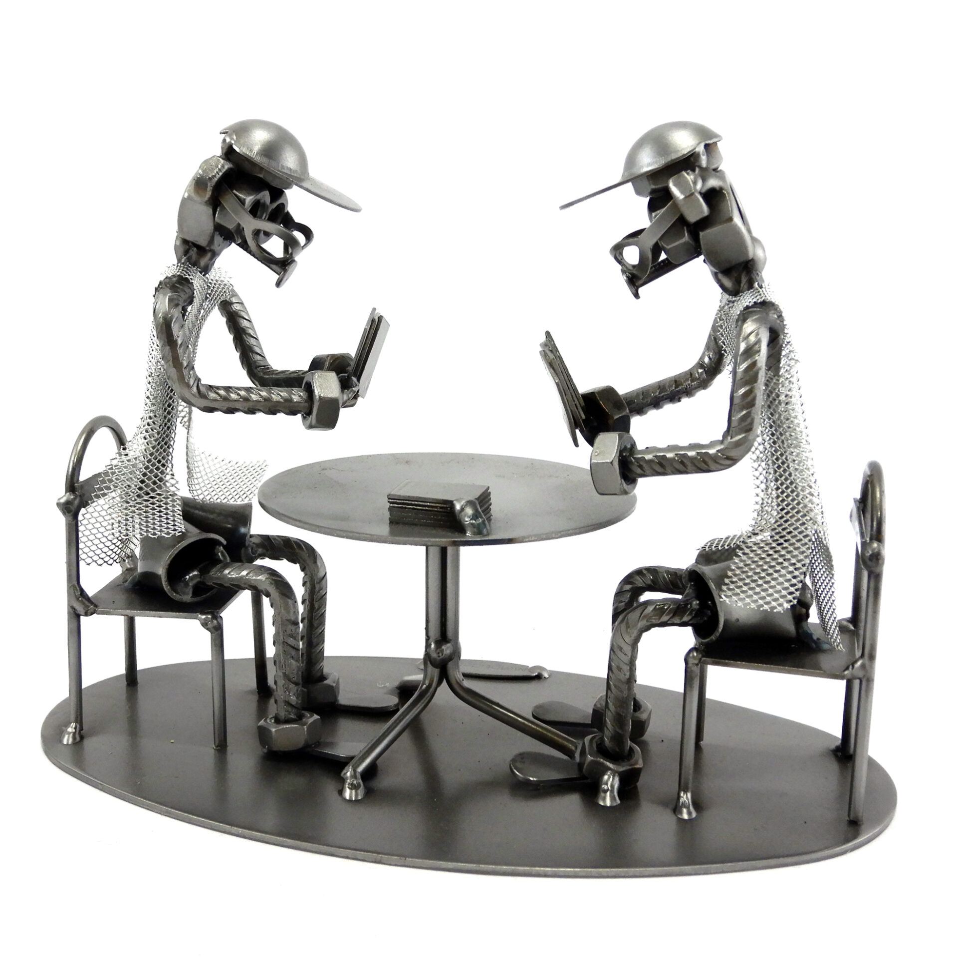 SCULTURA IN METALLO ARTIGIANALE RAFFIGURANTE DUE GIOCATORI DI CARTE