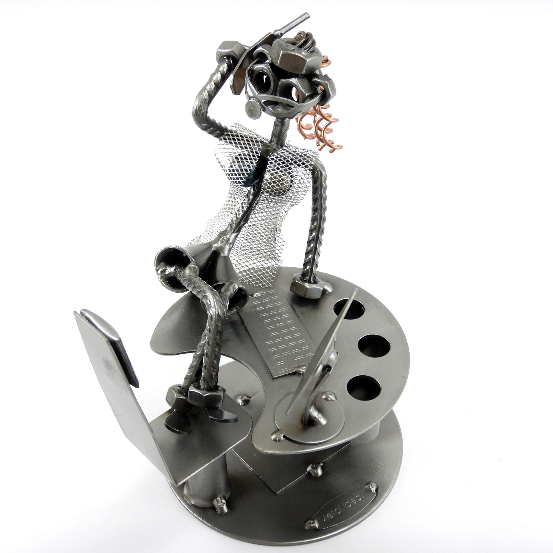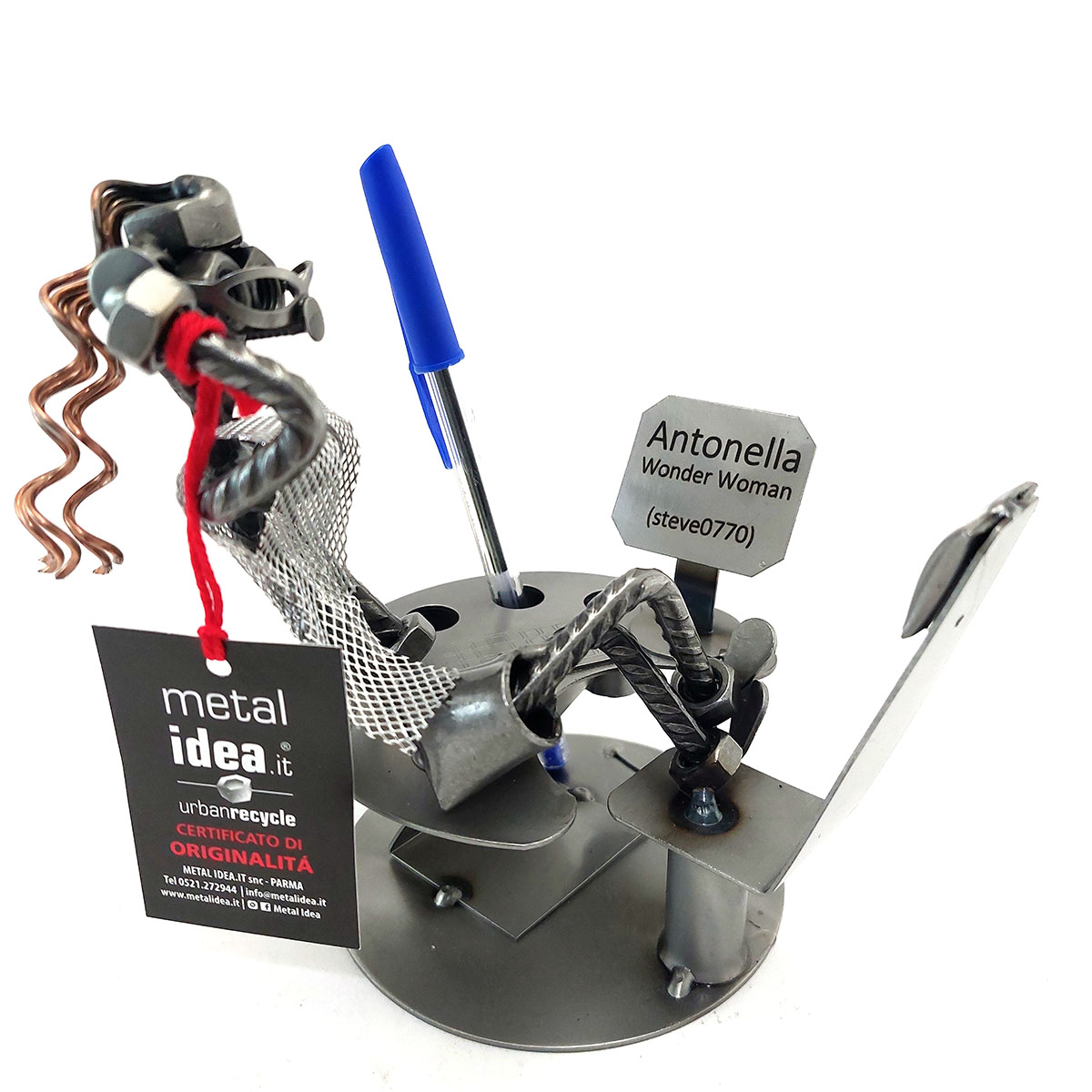La nostra collezione di pezzi è caratterizzata da un moderno ed originale design “made in Italy”, firmato METAL IDEA.IT®, marchio registrato. Siamo orgogliosi di offrire creazioni uniche e di qualità, perfette per ogni occasione, come compleanni, anniversari, pensionamenti, lauree, matrimoni, comunioni, cresime, premiazioni sportive e feste della mamma e del papà. E se stai cercando un regalo davvero speciale e unico, non cercare oltre: i nostri soggetti artigianali sono perfetti per te. Tieni presente che eventuali irregolarità o piccole imperfezioni non sono da ritenersi difetti, ma piuttosto autenticità della lavorazione artigianale.