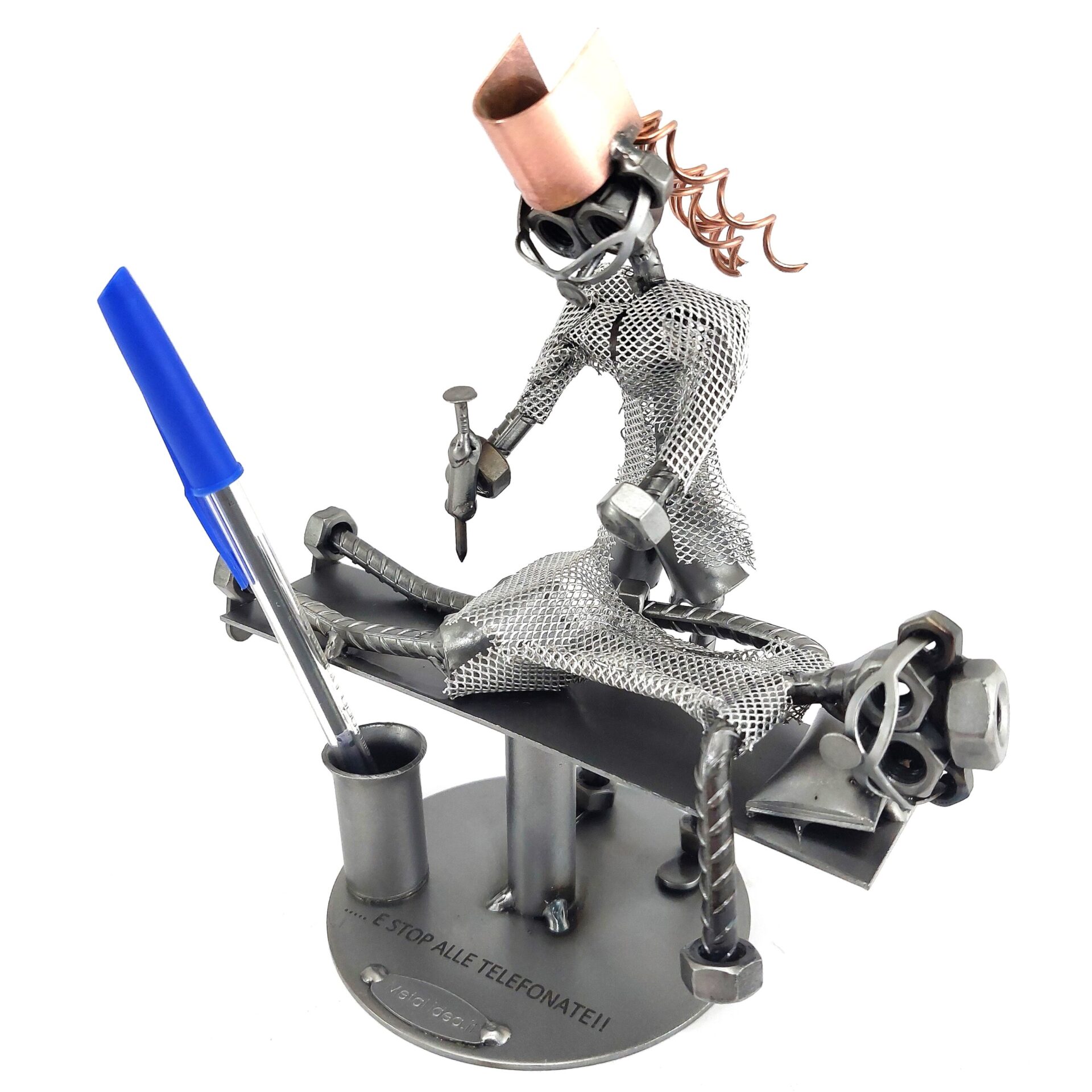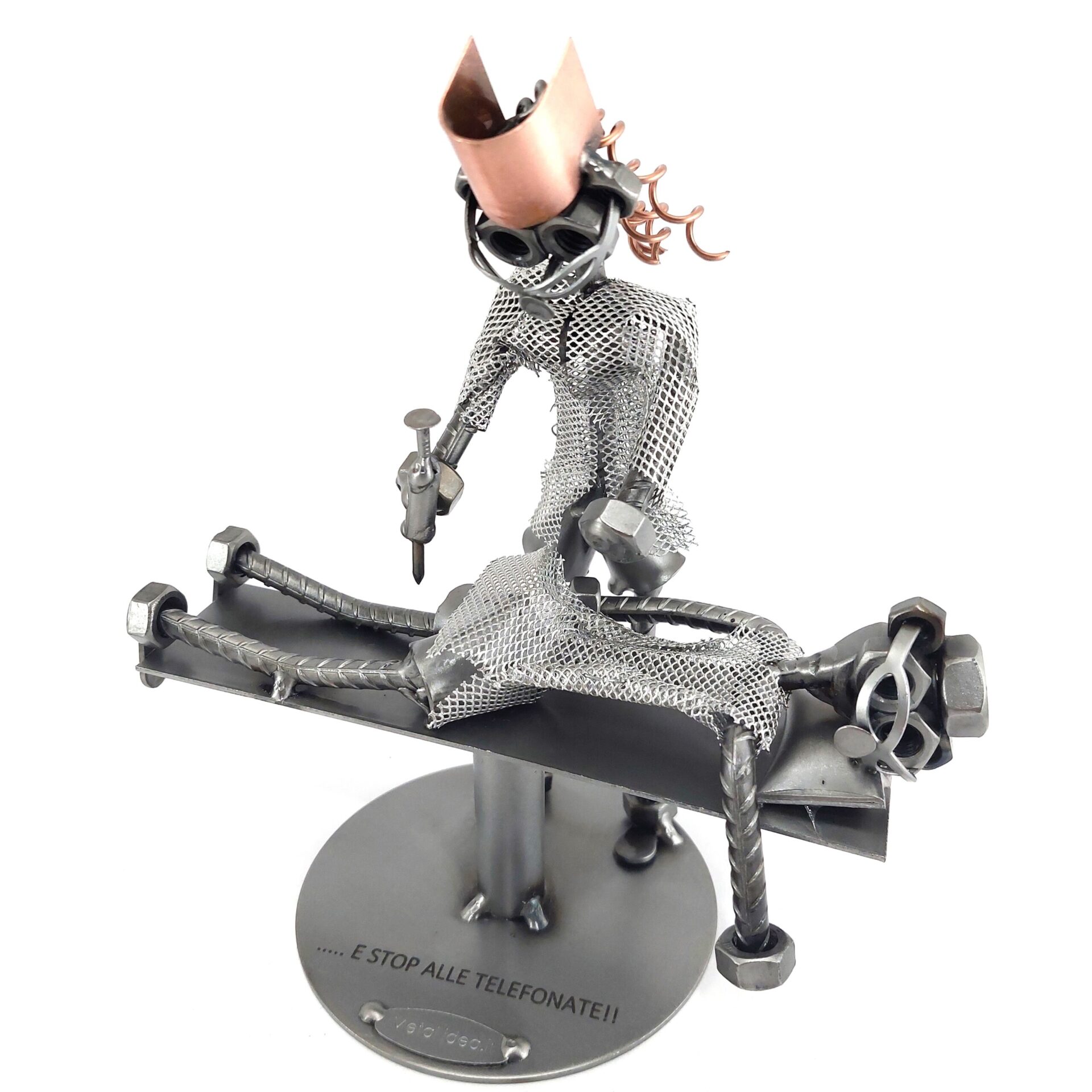 La nostra collezione di pezzi è caratterizzata da un moderno ed originale design “made in Italy”, firmato METAL IDEA.IT®, marchio registrato. Siamo orgogliosi di offrire creazioni uniche e di qualità, perfette per ogni occasione, come compleanni, anniversari, pensionamenti, lauree, matrimoni, comunioni, cresime, premiazioni sportive e feste della mamma e del papà. E se stai cercando un regalo davvero speciale e unico, non cercare oltre: i nostri soggetti artigianali sono perfetti per te. Tieni presente che eventuali irregolarità o piccole imperfezioni non sono da ritenersi difetti, ma piuttosto autenticità della lavorazione artigianale.