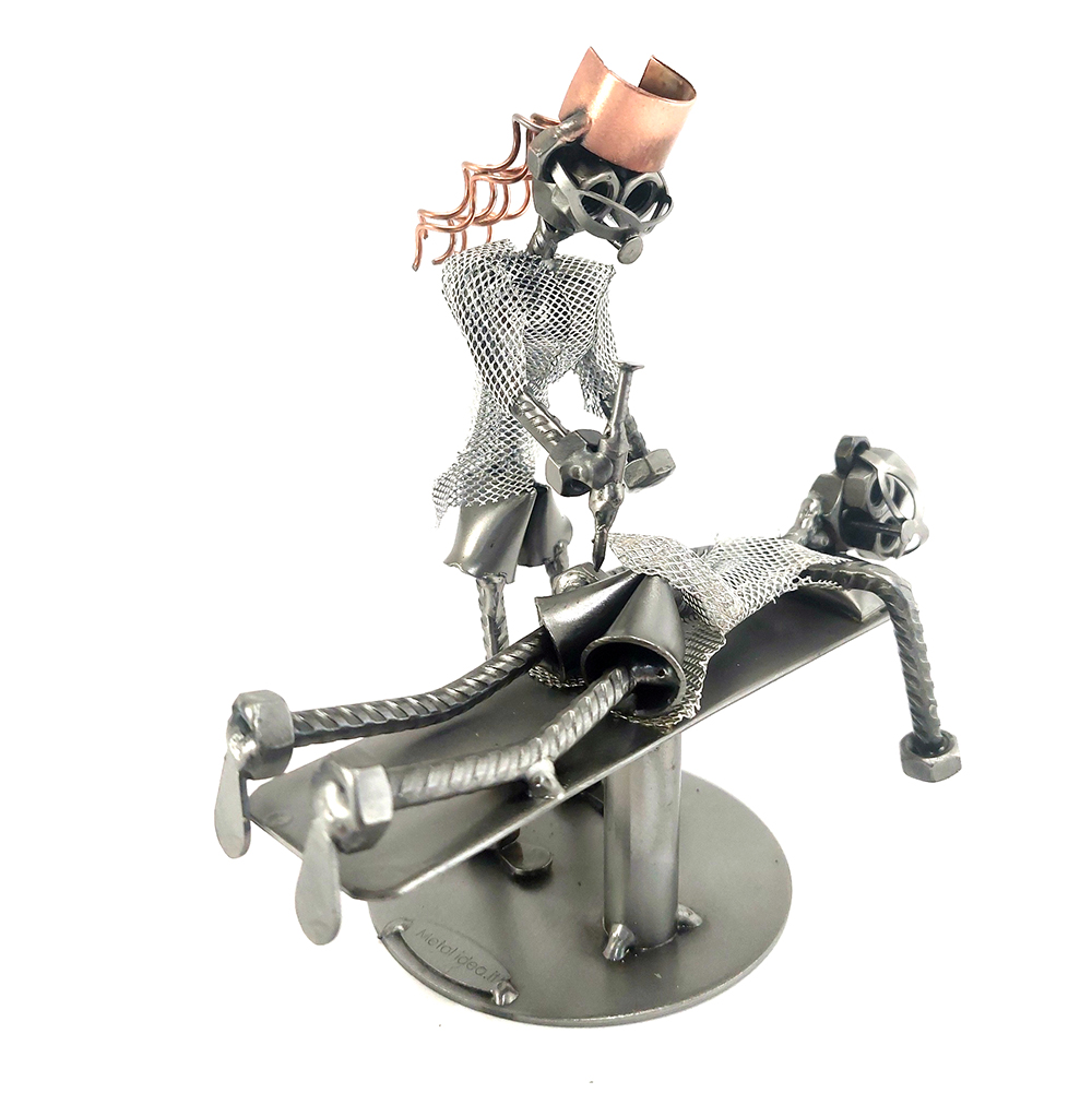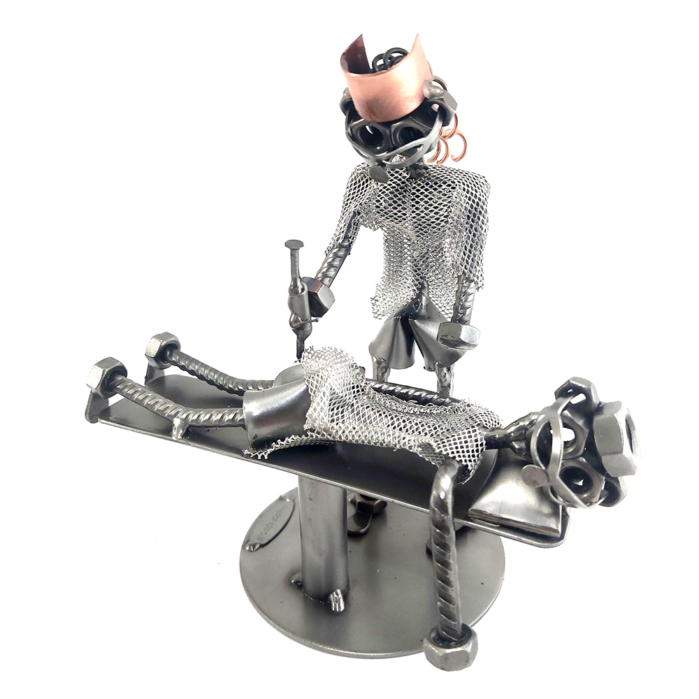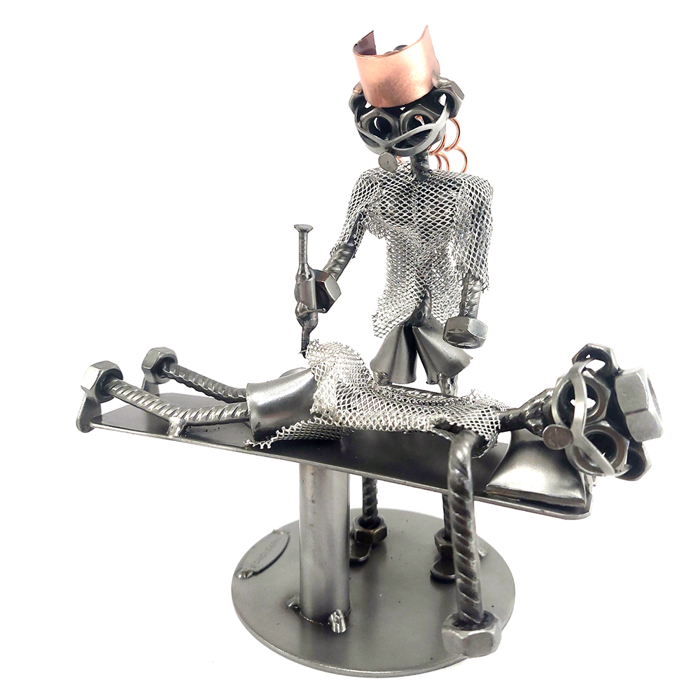 SCULTURA IN METALLO ARTIGIANALE RAFFIGURANTE L’ INFERMIERA MENTRE FA LA PUNTURA AL PAZIENTE