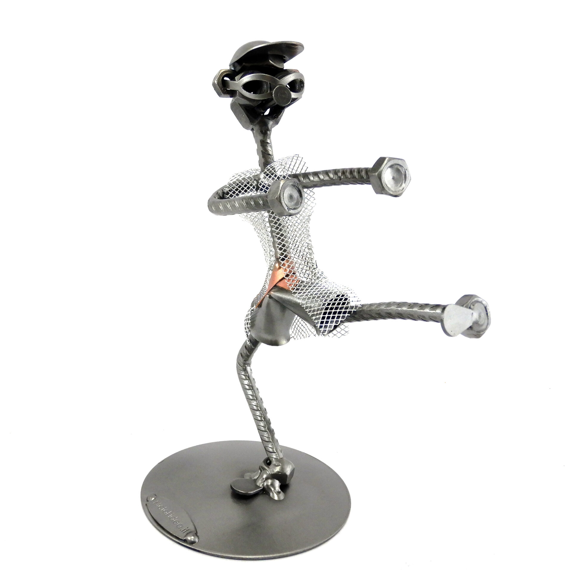 SCULTURA IN METALLO ARTIGIANALE RAFFIGURANTE IL KARATE KARATECA CON CINTURA IN RAME