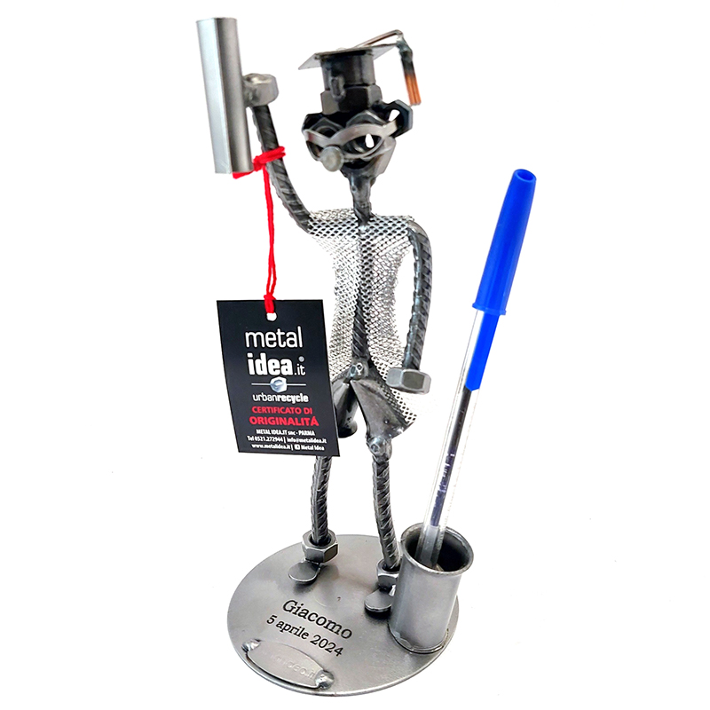 La nostra collezione di pezzi è caratterizzata da un moderno ed originale design “made in Italy”, firmato METAL IDEA.IT®, marchio registrato. Siamo orgogliosi di offrire creazioni uniche e di qualità, perfette per ogni occasione, come compleanni, anniversari, pensionamenti, lauree, matrimoni, comunioni, cresime, premiazioni sportive e feste della mamma e del papà. E se stai cercando un regalo davvero speciale e unico, non cercare oltre: i nostri soggetti artigianali sono perfetti per te. Tieni presente che eventuali irregolarità o piccole imperfezioni non sono da ritenersi difetti, ma piuttosto autenticità della lavorazione artigianale.