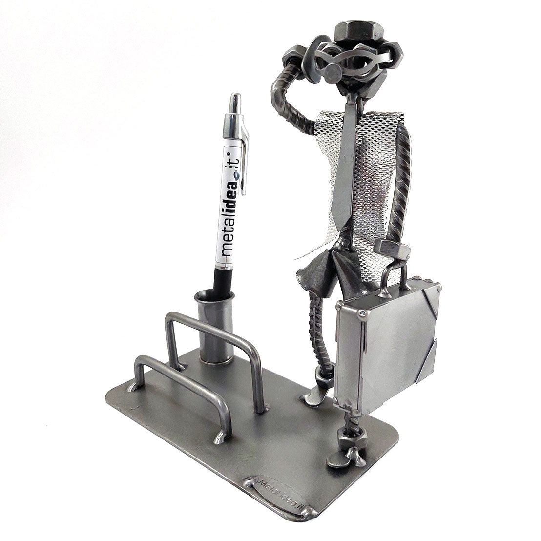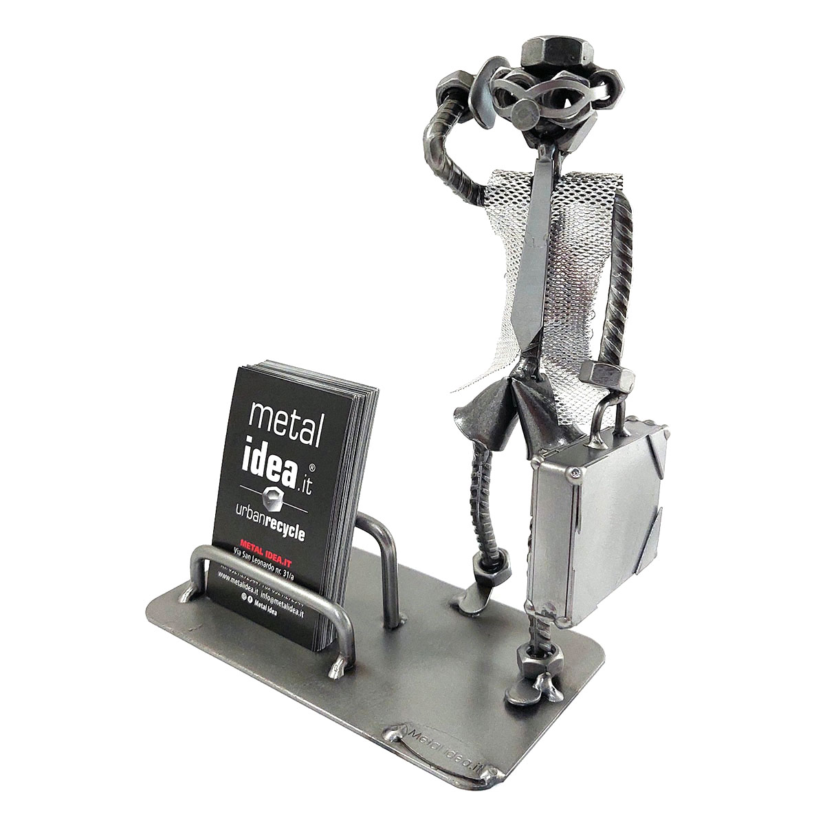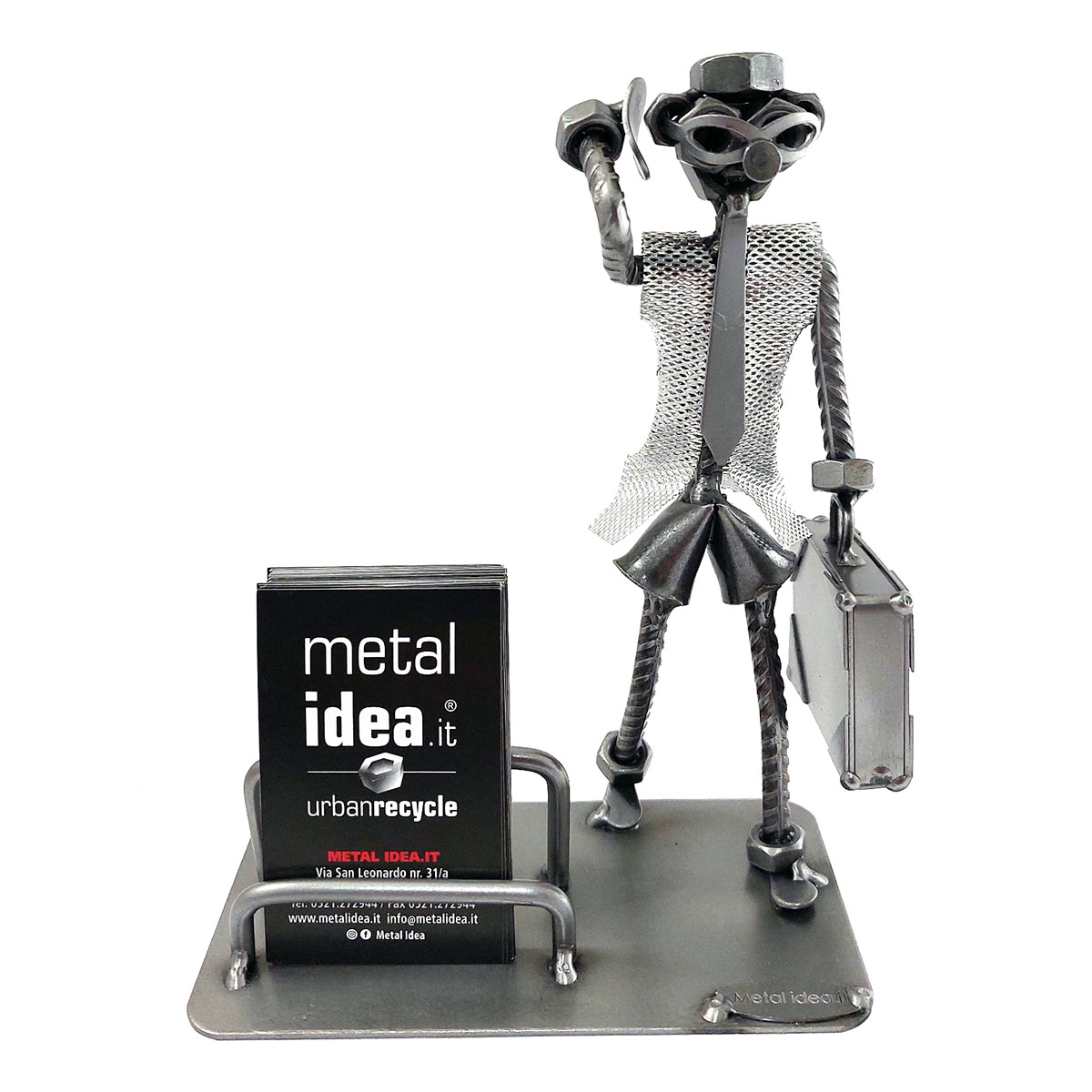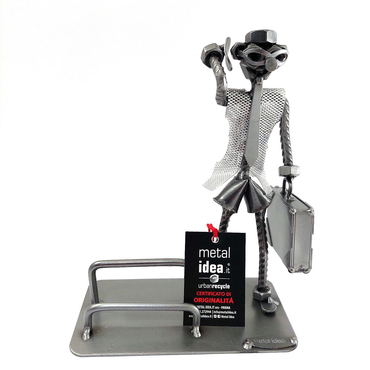 SCULTURA IN METALLO ARTIGIANALE RAFFIGURANTE IL MANAGER – AGENTE DI COMMERCIO – RAPPRESENTANTE PORTA BIGLIETTI DA VISITA O PORTA CELLULARE