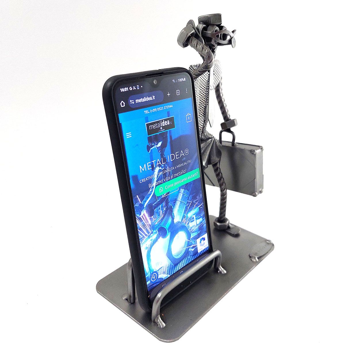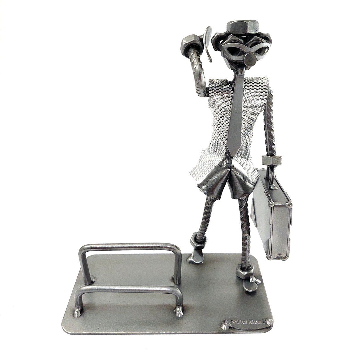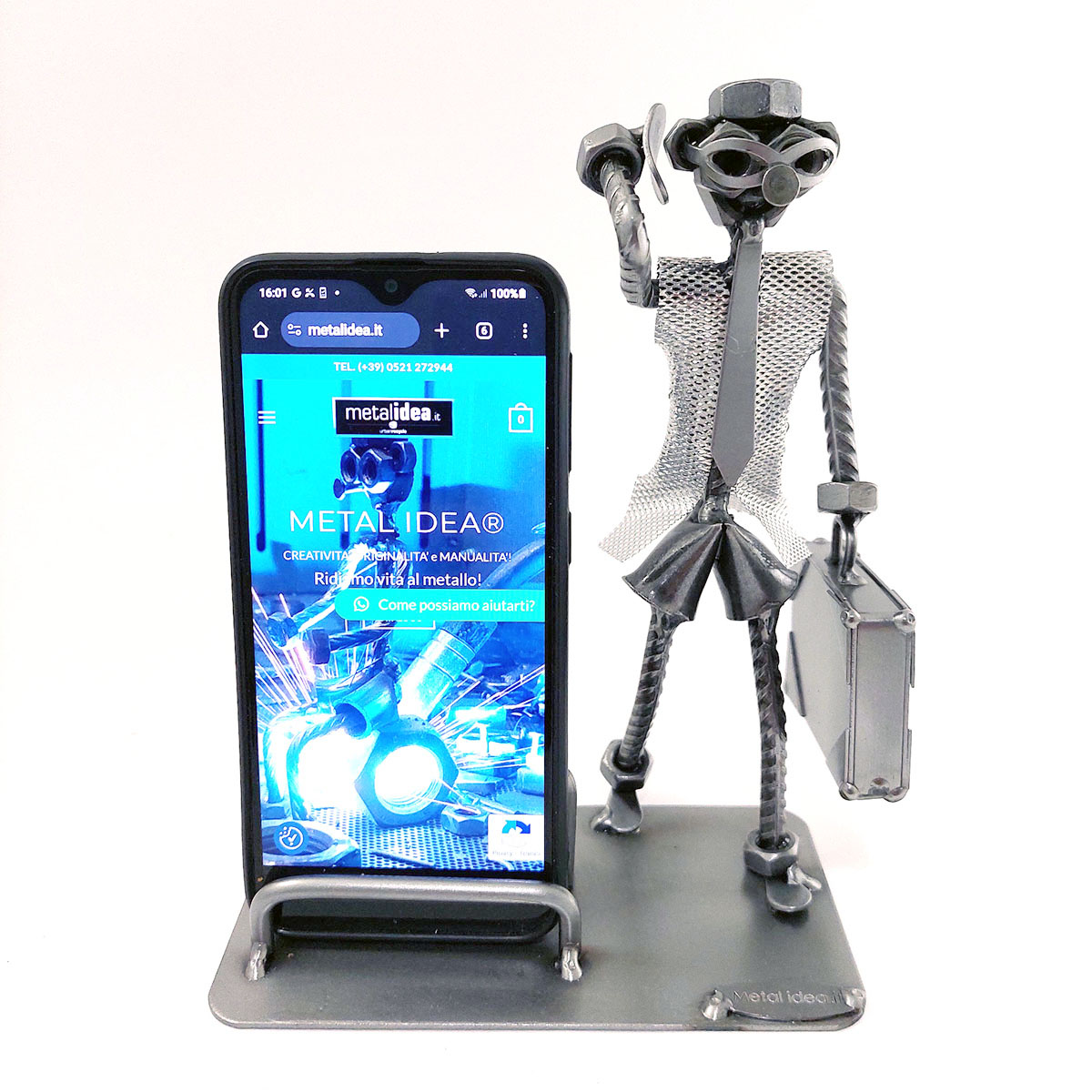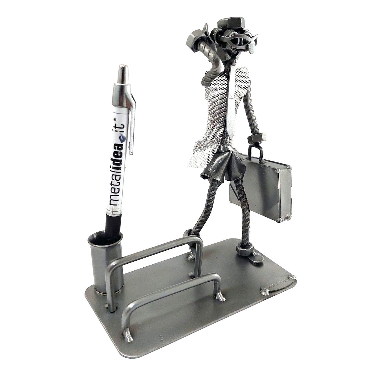 SCULTURA IN METALLO ARTIGIANALE RAFFIGURANTE IL MANAGER – AGENTE DI COMMERCIO – RAPPRESENTANTE PORTA BIGLIETTI DA VISITA O PORTA CELLULARE