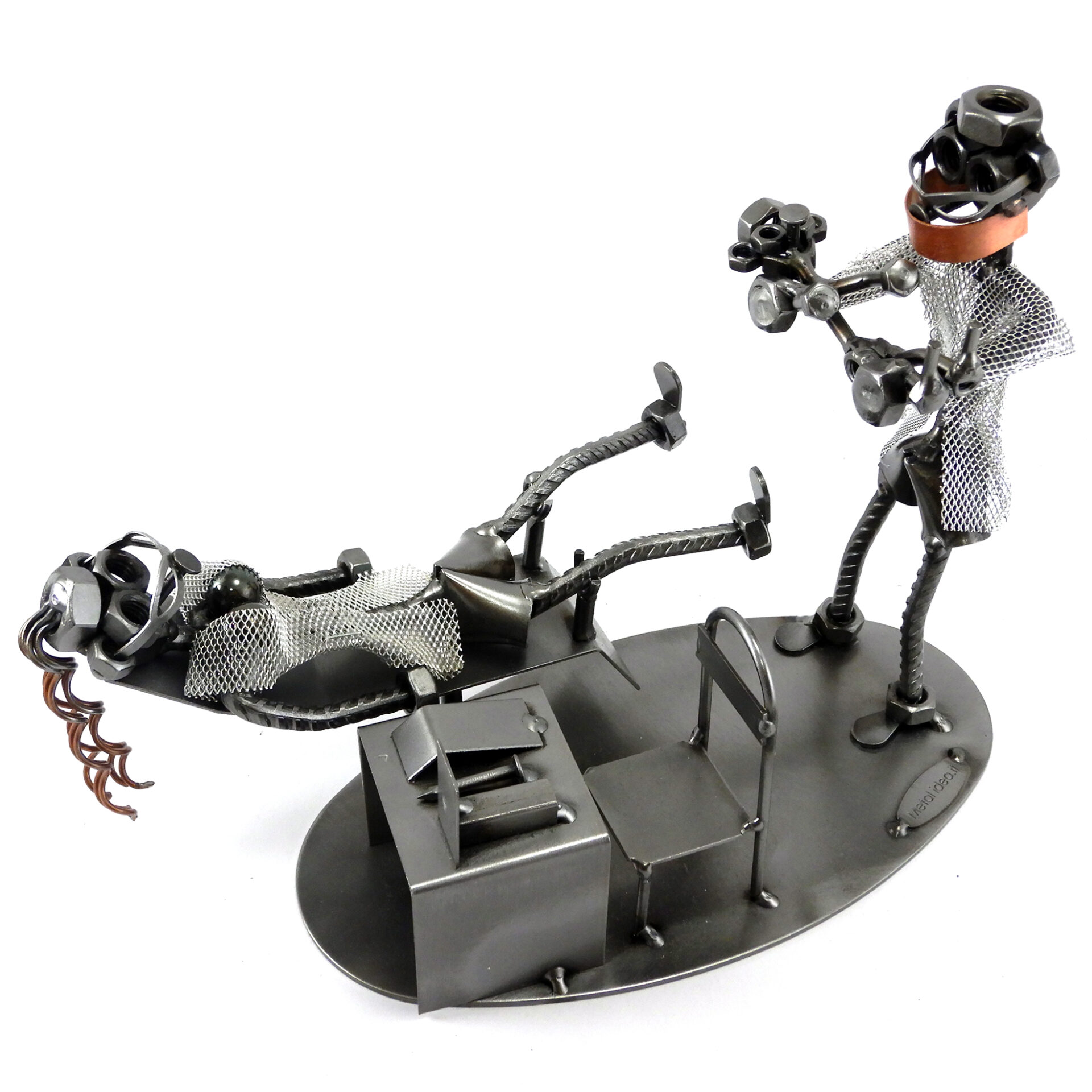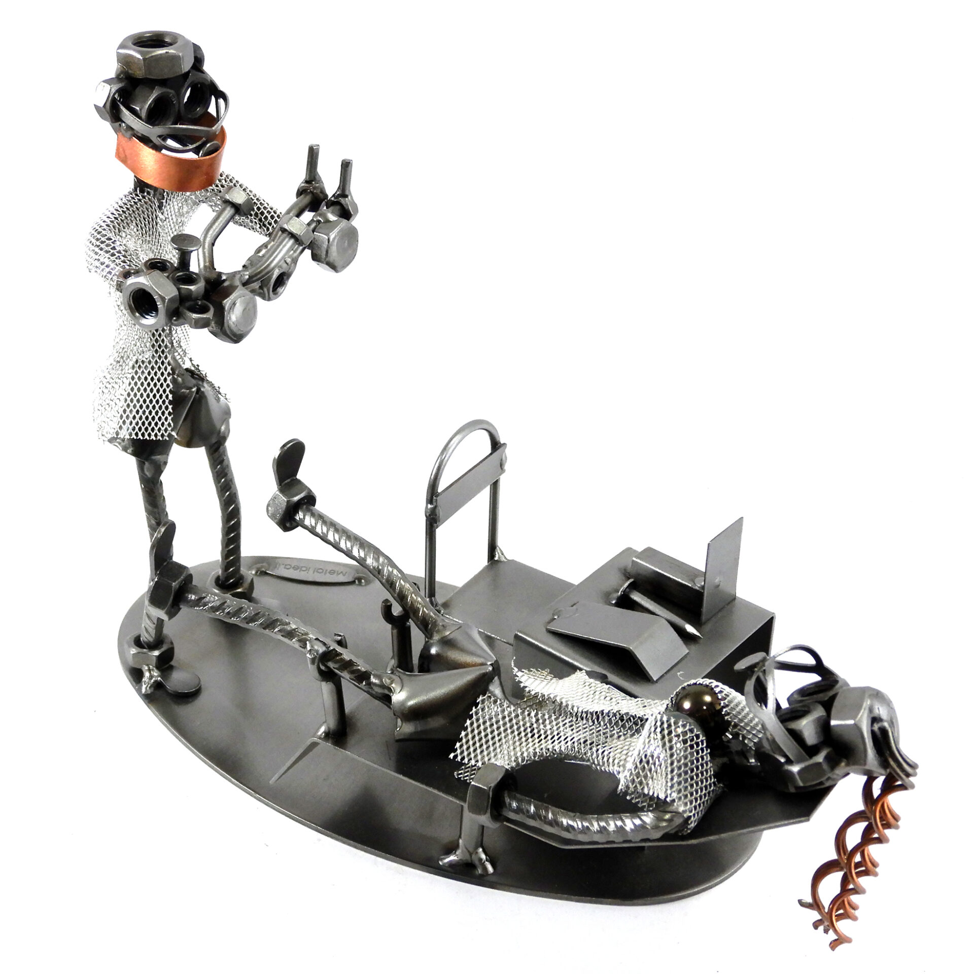 Benvenuti nel mondo di Metal Idea® Italian Design, dove originalità e creatività si incontrano per creare pezzi unici e sorprendenti. Tutti i nostri soggetti sono realizzati artigianalmente, utilizzando la saldatura di vari componenti meccanici, quali viti, bulloni, rondelle, chiodi e molto altro ancora, con un’accurata manualità. Inoltre, ci preoccupiamo di scegliere le migliori materie prime disponibili sul mercato, preferibilmente utilizzando pezzi riciclati per creare soggetti dallo stile unico ed originale.