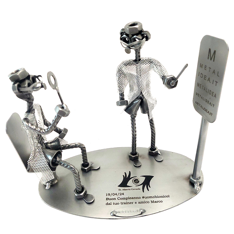 La nostra collezione di pezzi è caratterizzata da un moderno ed originale design “made in Italy”, firmato METAL IDEA.IT®, marchio registrato. Siamo orgogliosi di offrire creazioni uniche e di qualità, perfette per ogni occasione, come compleanni, anniversari, pensionamenti, lauree, matrimoni, comunioni, cresime, premiazioni sportive e feste della mamma e del papà. E se stai cercando un regalo davvero speciale e unico, non cercare oltre: i nostri soggetti artigianali sono perfetti per te. Tieni presente che eventuali irregolarità o piccole imperfezioni non sono da ritenersi difetti, ma piuttosto autenticità della lavorazione artigianale.