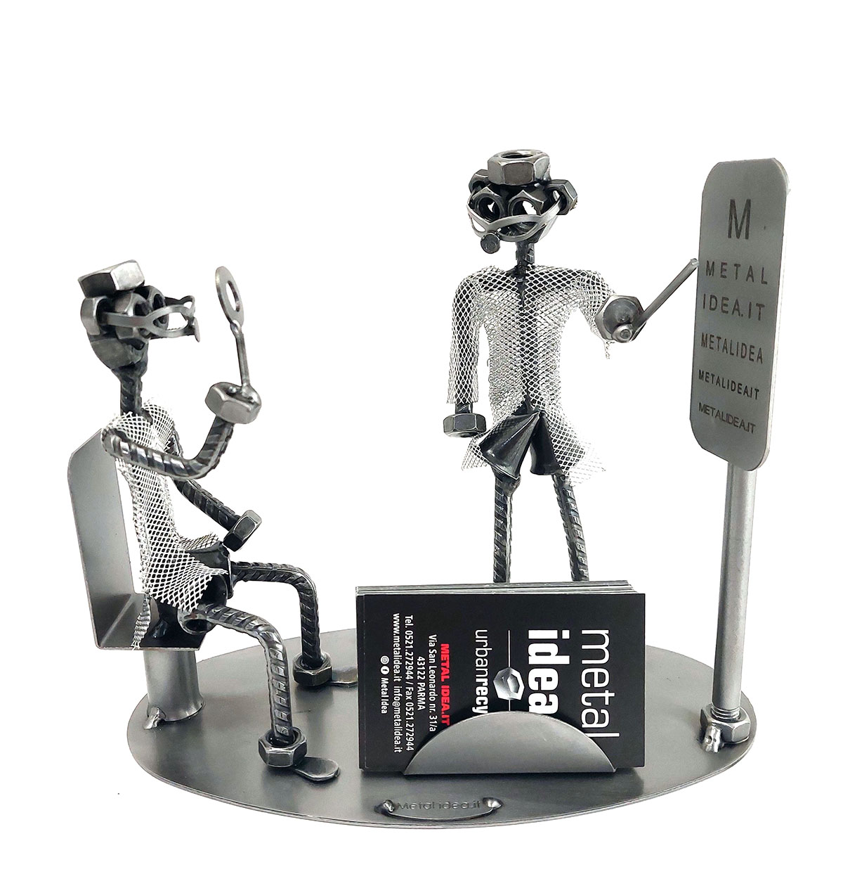 Benvenuti nel mondo di Metal Idea® Italian Design, dove originalità e creatività si incontrano per creare pezzi unici e sorprendenti. Tutti i nostri soggetti sono realizzati artigianalmente, utilizzando la saldatura di vari componenti meccanici, quali viti, bulloni, rondelle, chiodi e molto altro ancora, con un’accurata manualità. Inoltre, ci preoccupiamo di scegliere le migliori materie prime disponibili sul mercato, preferibilmente utilizzando pezzi riciclati per creare soggetti dallo stile unico ed originale.
