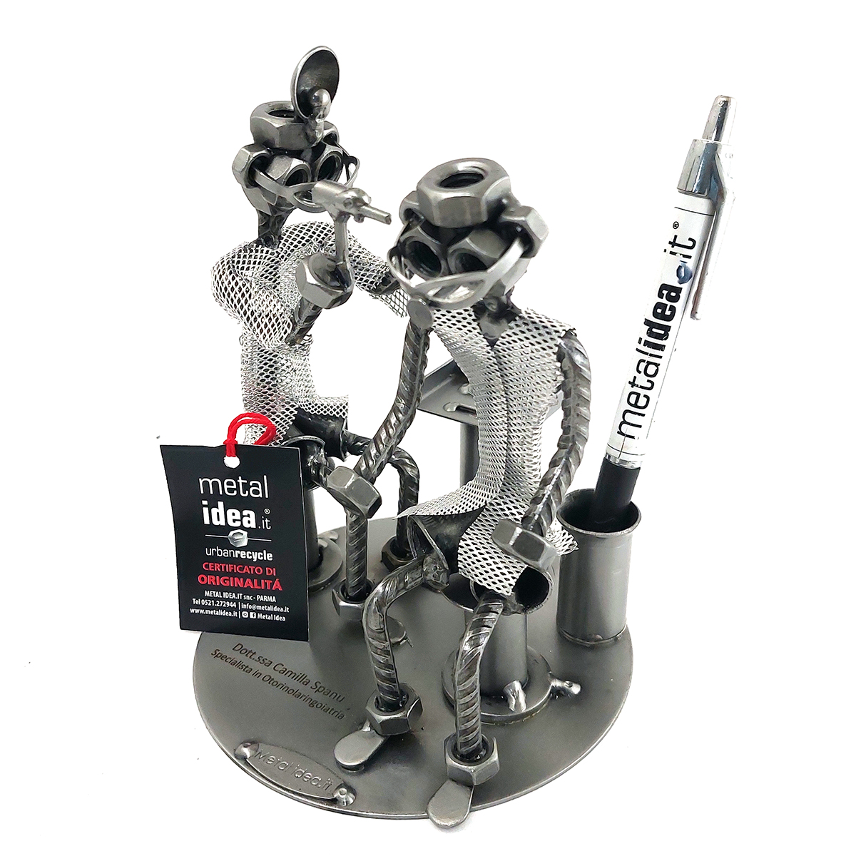 SCULTURA IN METALLO ARTIGIANALE RAFFIGURANTE IL MEDICO OTORINO – OTORINOLARINGOIATRA CON PAZIENTE