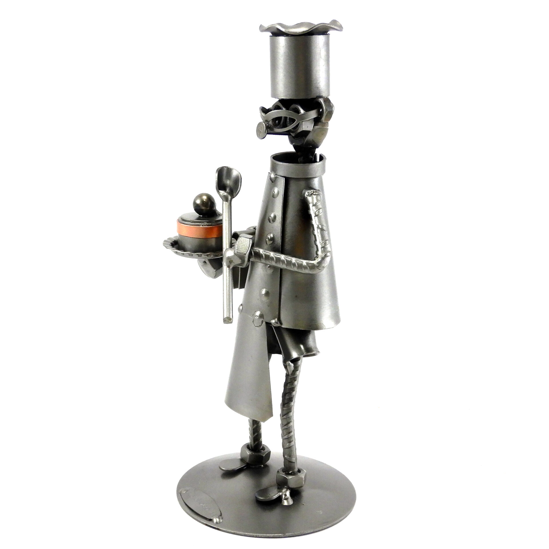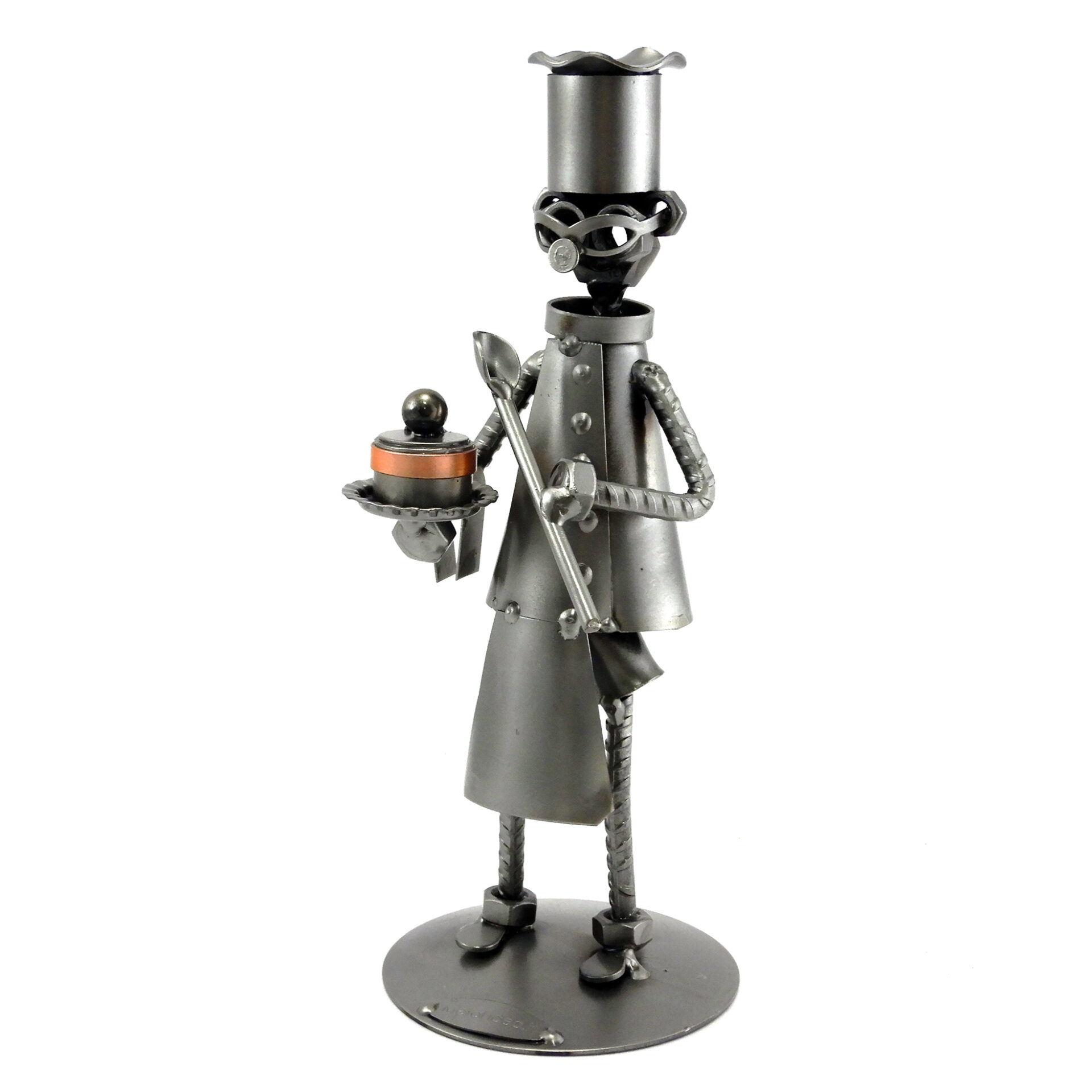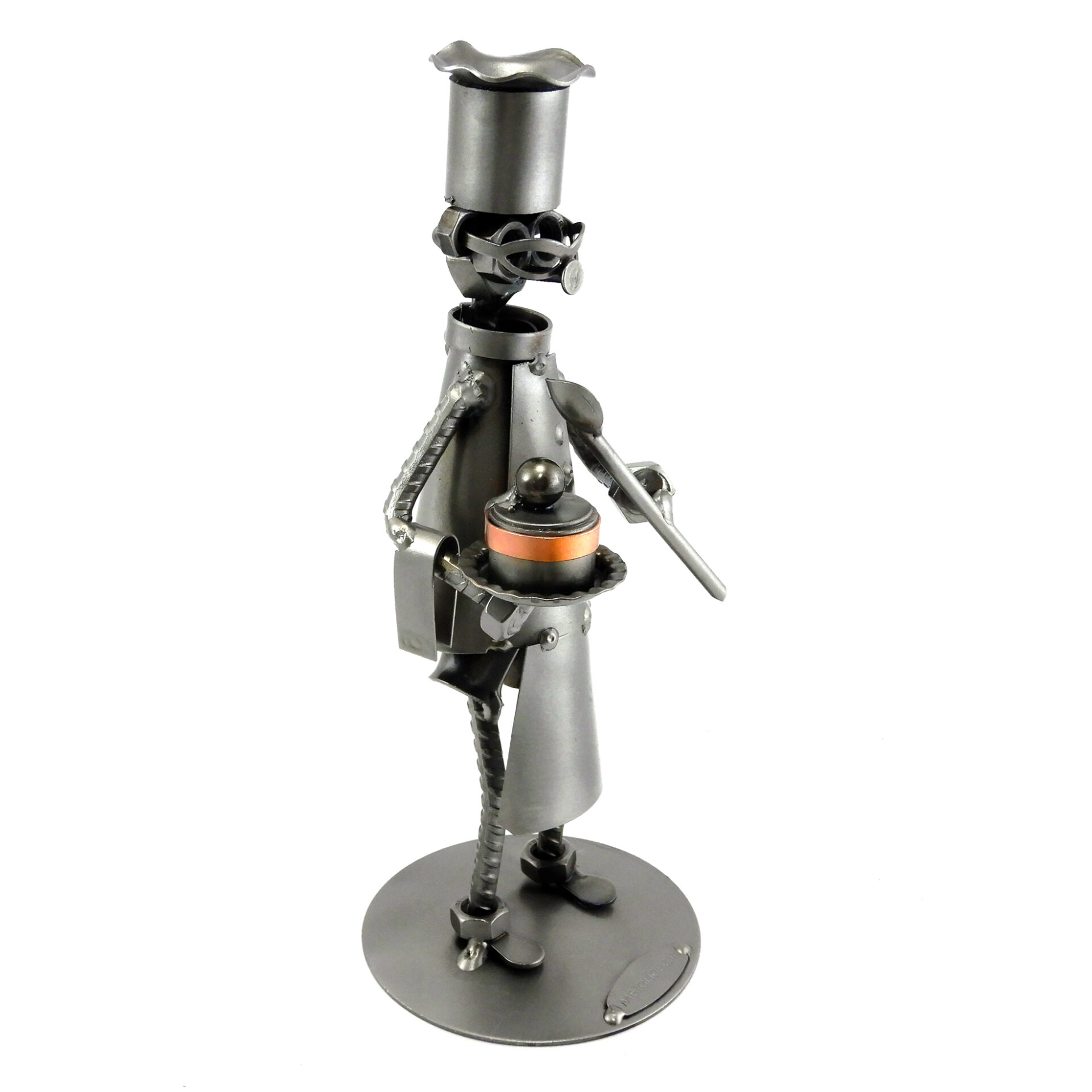 SCULTURA IN METALLO ARTIGIANALE RAFFIGURANTE IL PASTICCIERE CON TORTA