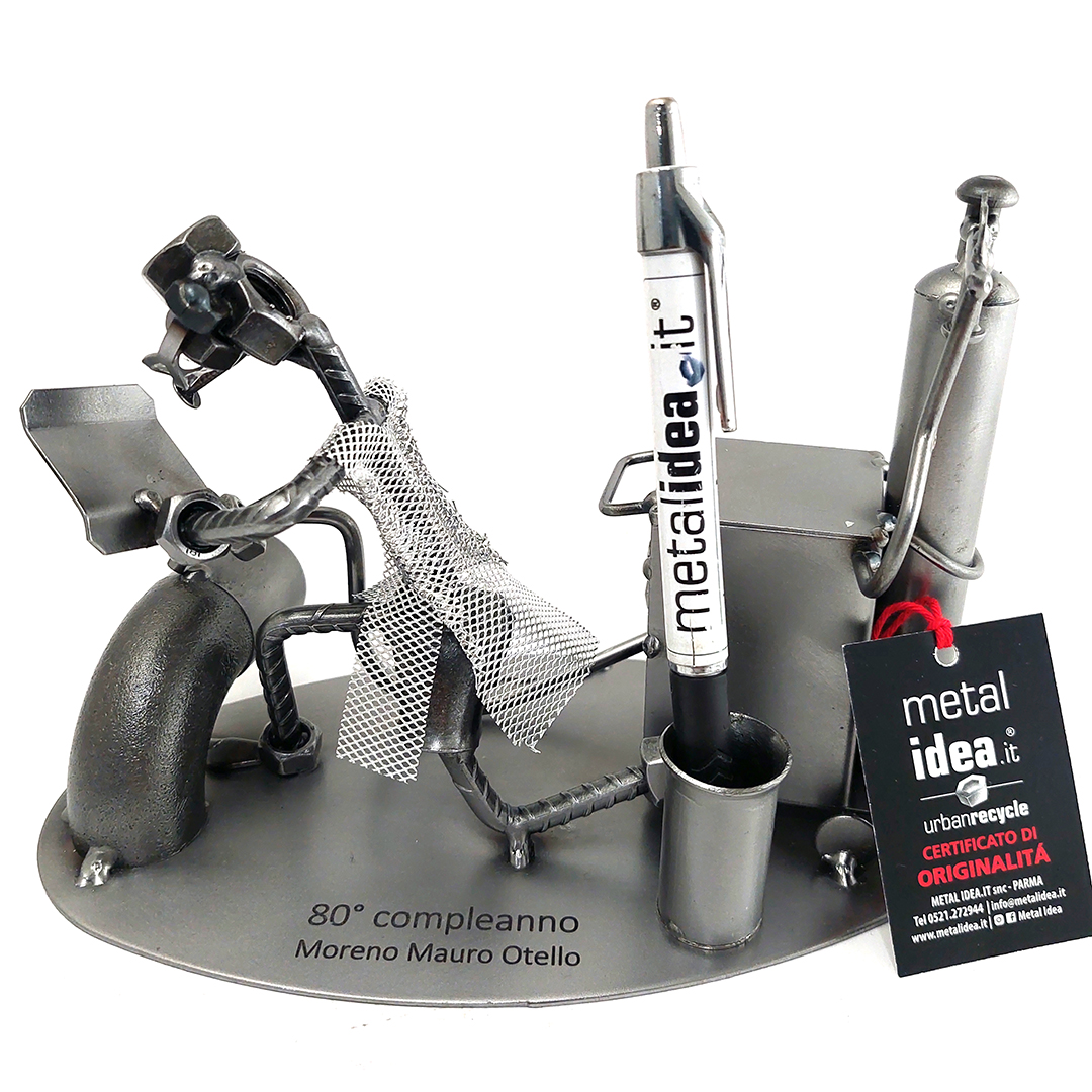 La nostra collezione di pezzi è caratterizzata da un moderno ed originale design “made in Italy”, firmato METAL IDEA.IT®, marchio registrato. Siamo orgogliosi di offrire creazioni uniche e di qualità, perfette per ogni occasione, come compleanni, anniversari, pensionamenti, lauree, matrimoni, comunioni, cresime, premiazioni sportive e feste della mamma e del papà. E se stai cercando un regalo davvero speciale e unico, non cercare oltre: i nostri soggetti artigianali sono perfetti per te. Tieni presente che eventuali irregolarità o piccole imperfezioni non sono da ritenersi difetti, ma piuttosto autenticità della lavorazione artigianale.