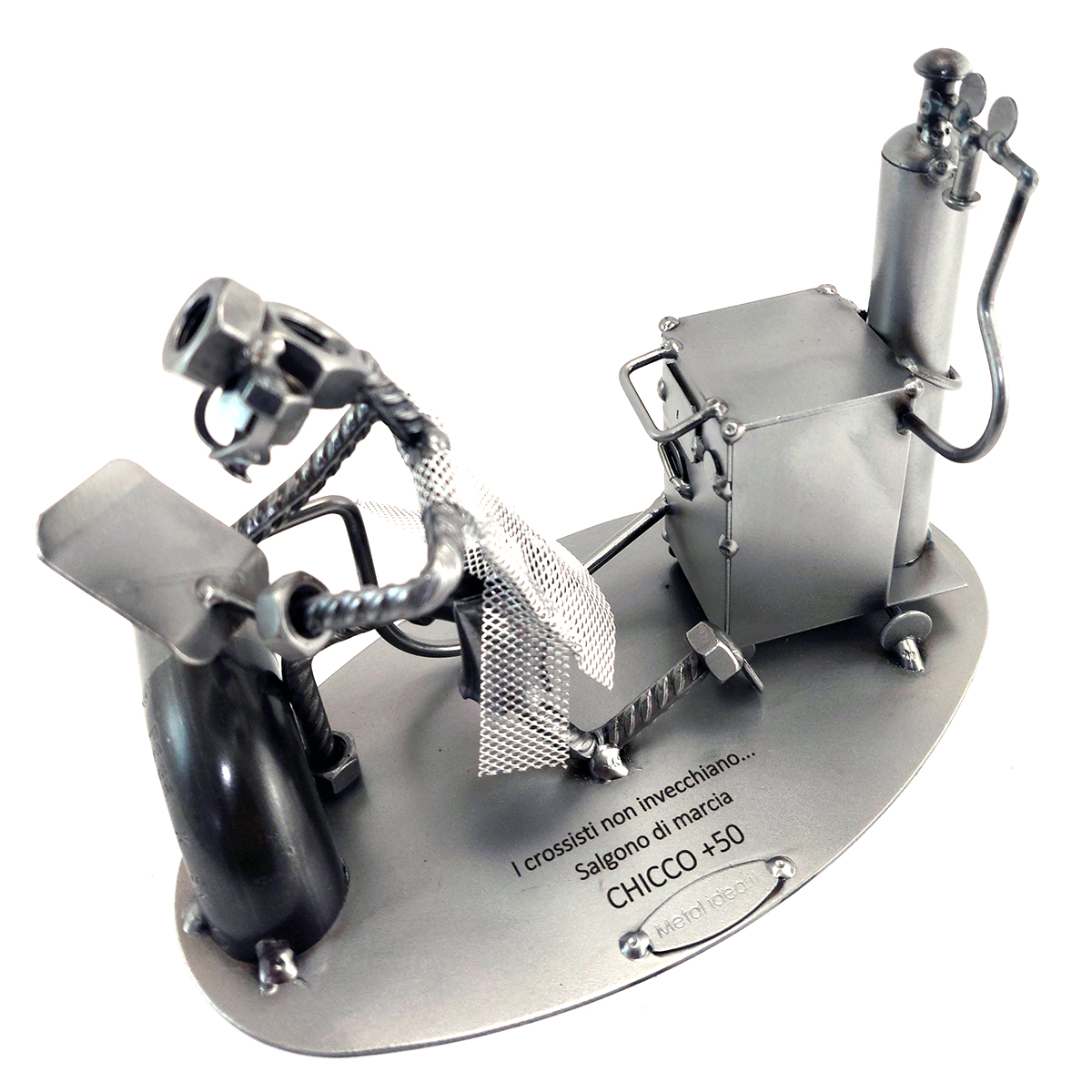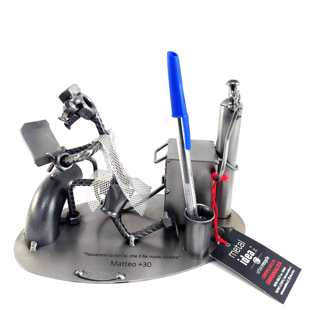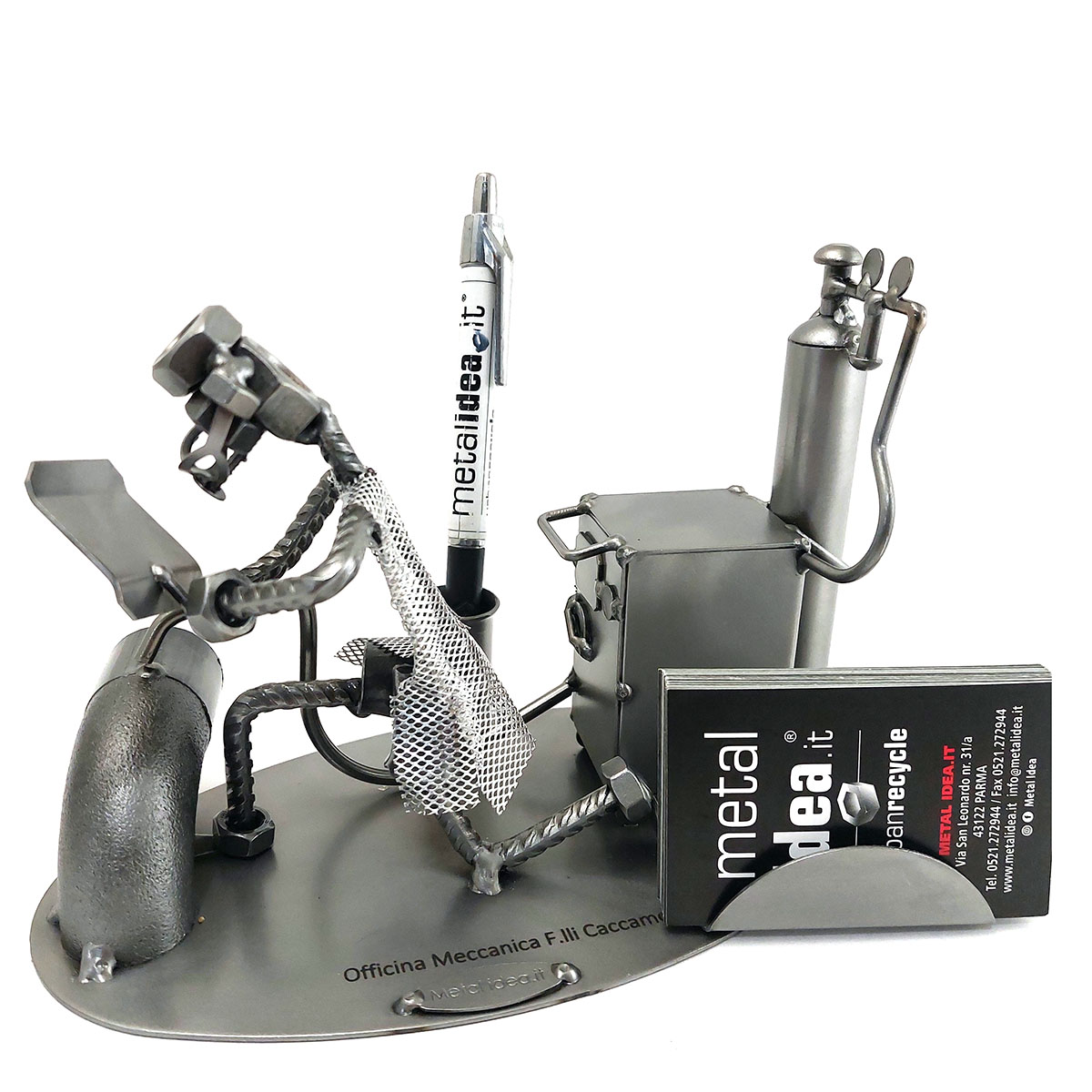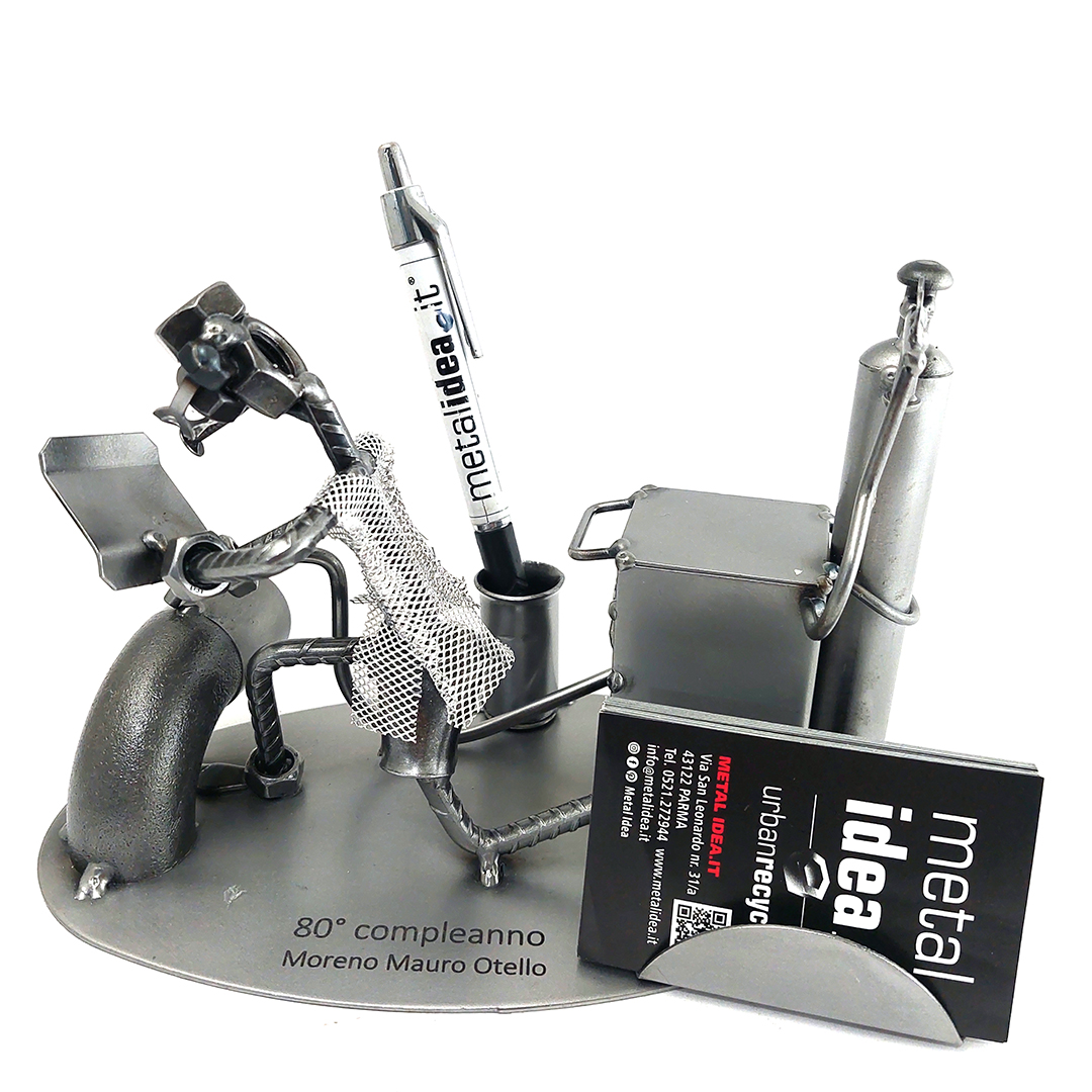 Benvenuti nel mondo di Metal Idea® Italian Design, dove originalità e creatività si incontrano per creare pezzi unici e sorprendenti. Tutti i nostri soggetti sono realizzati artigianalmente, utilizzando la saldatura di vari componenti meccanici, quali viti, bulloni, rondelle, chiodi e molto altro ancora, con un’accurata manualità. Inoltre, ci preoccupiamo di scegliere le migliori materie prime disponibili sul mercato, preferibilmente utilizzando pezzi riciclati per creare soggetti dallo stile unico ed originale.