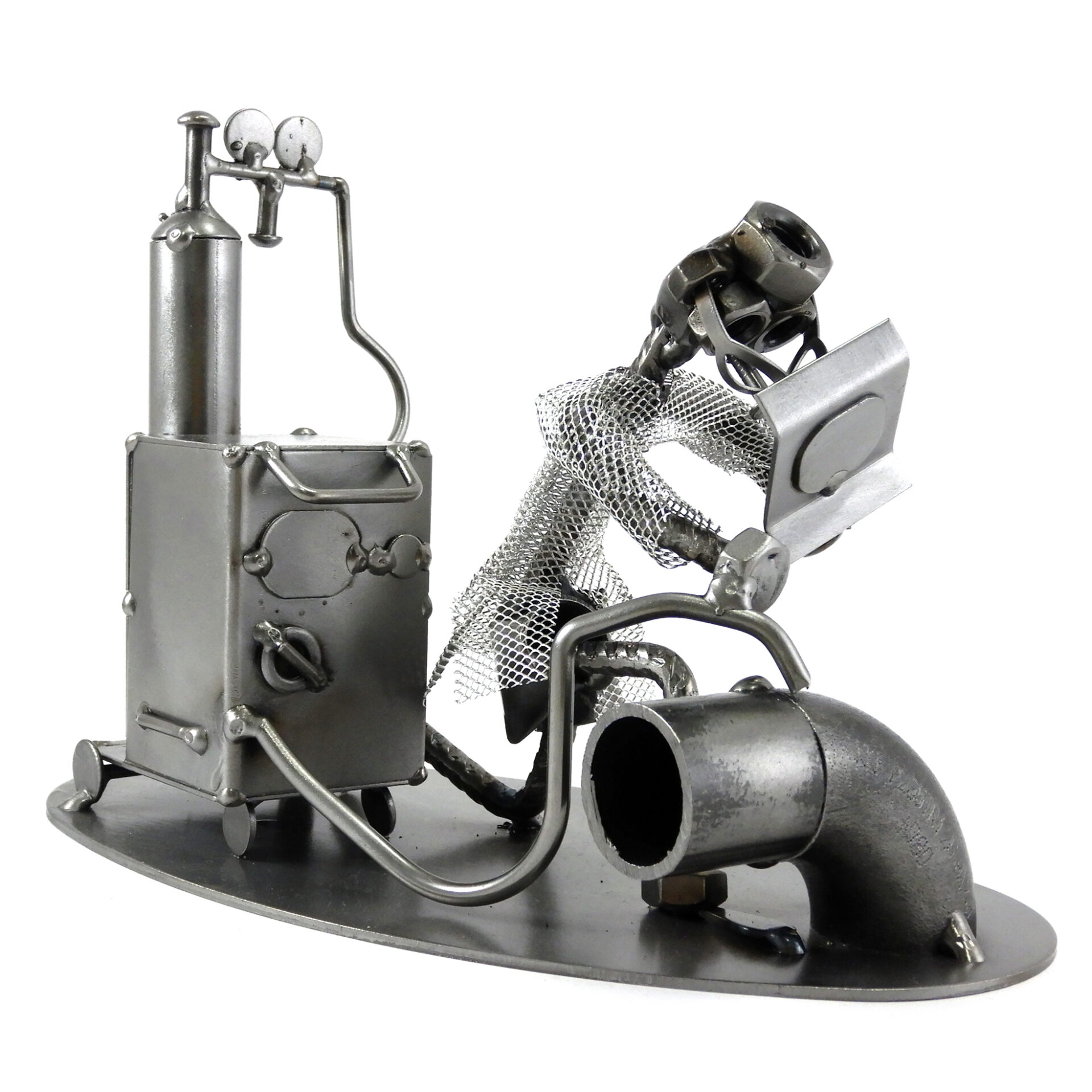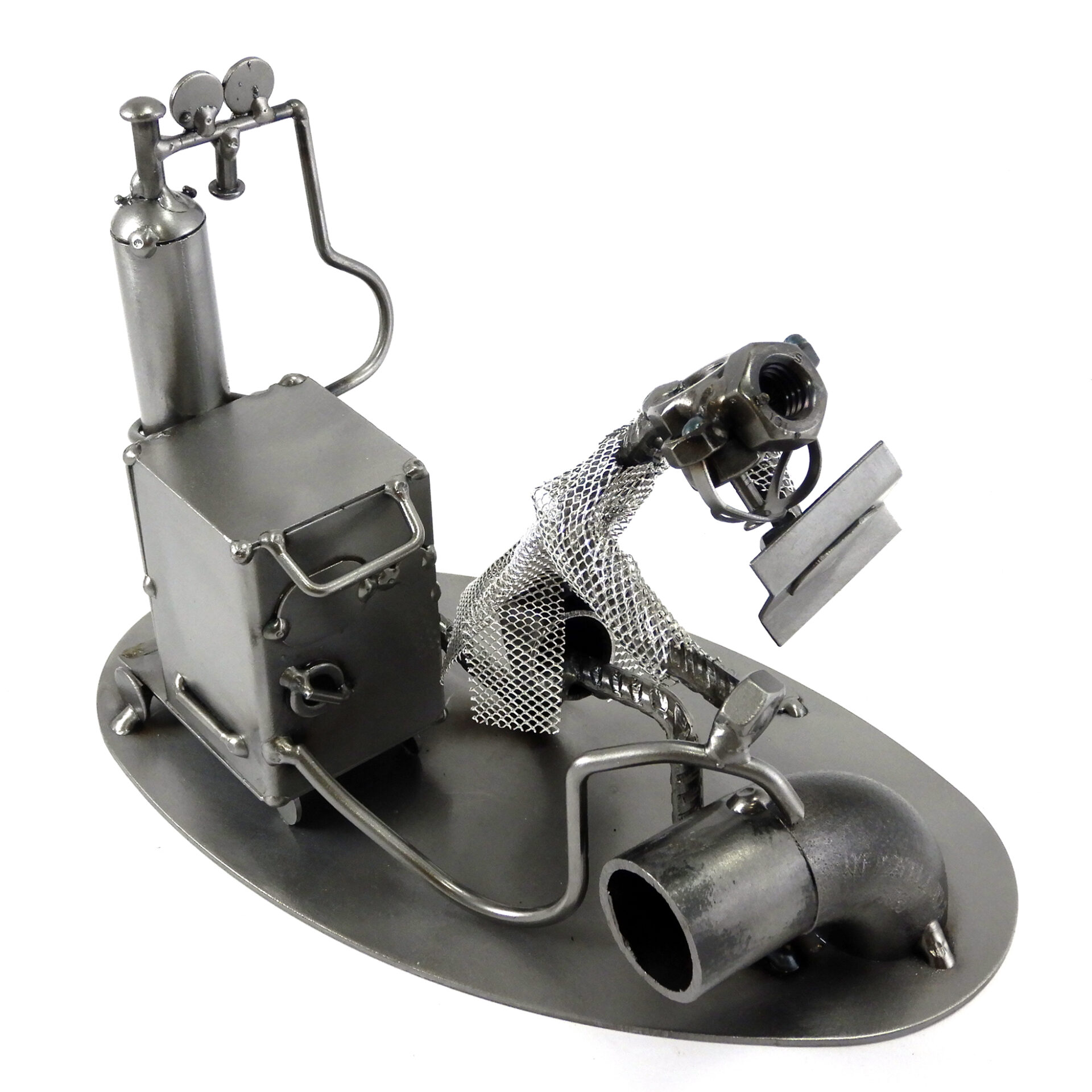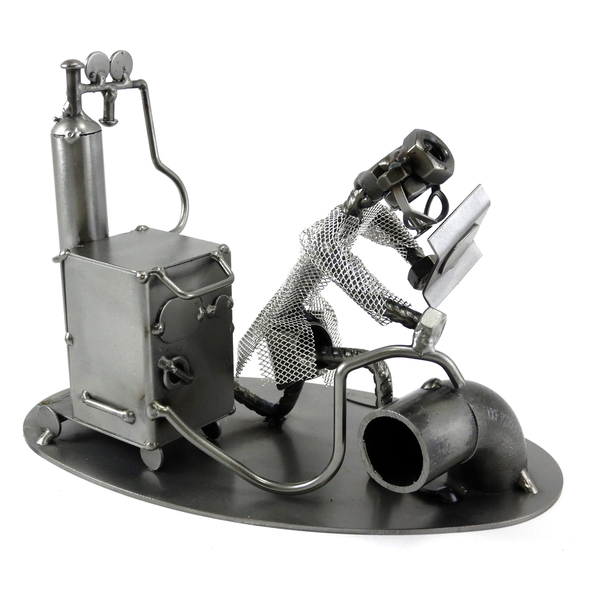 SCULTURA IN METALLO ARTIGIANALE RAFFIGURANTE IL SALDATORE – METALMECCANICO – OPERAIO