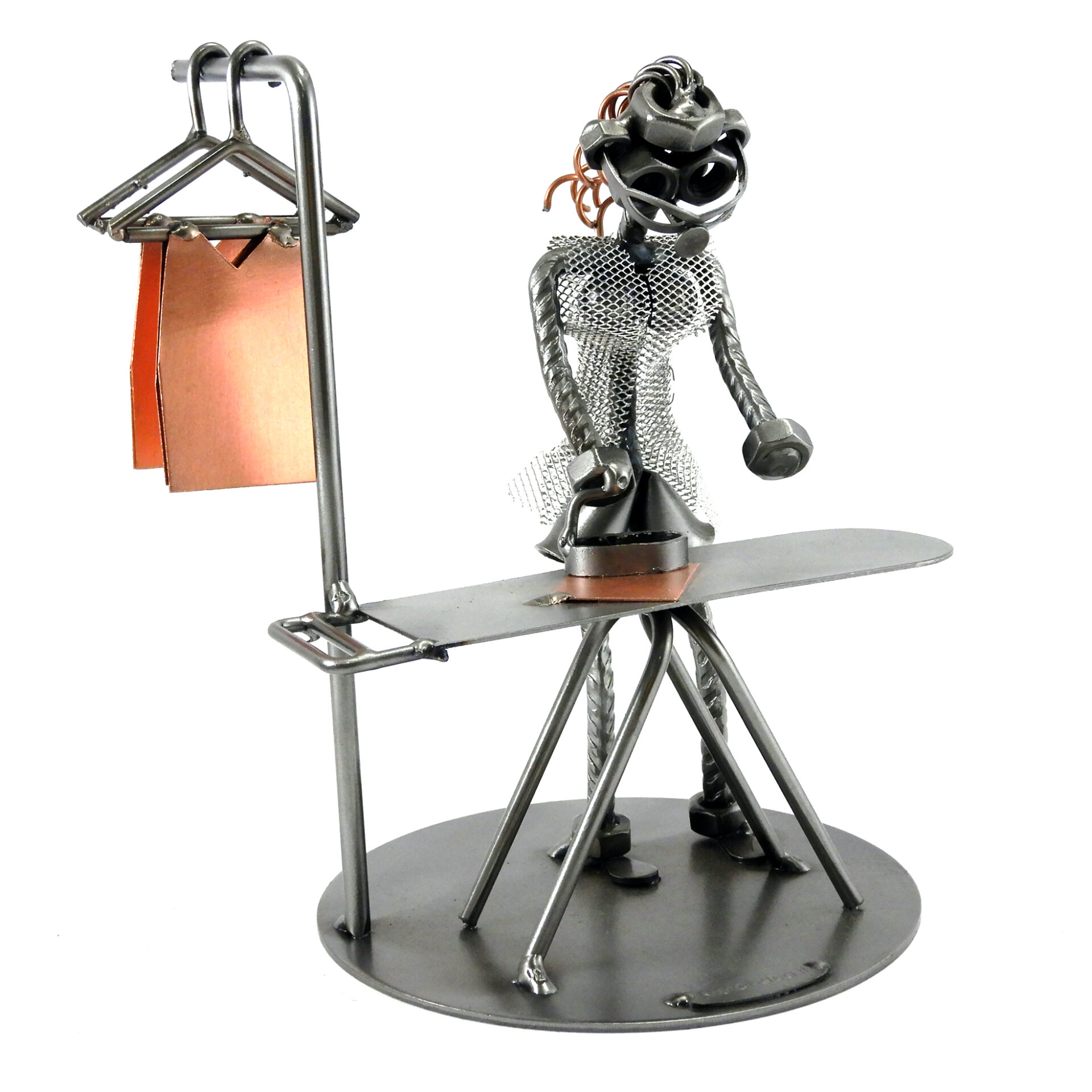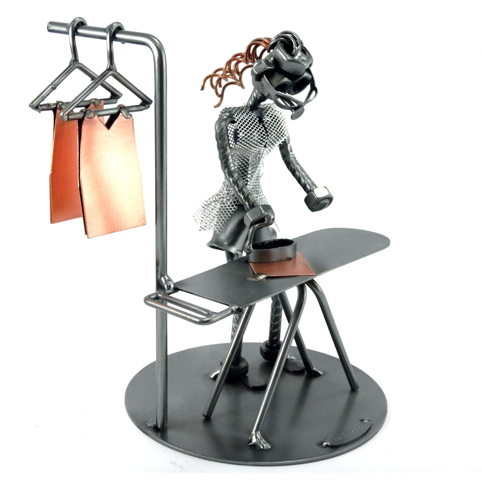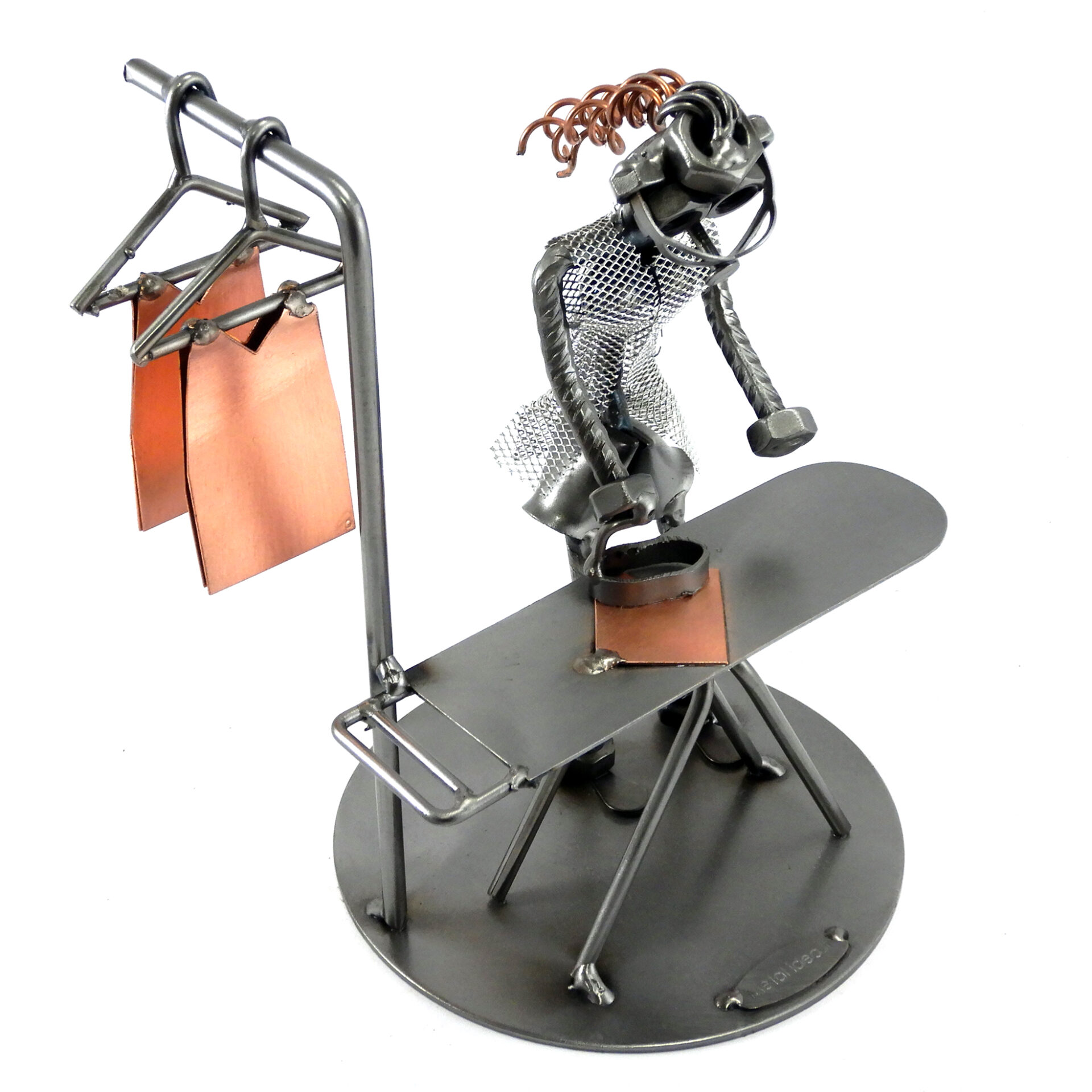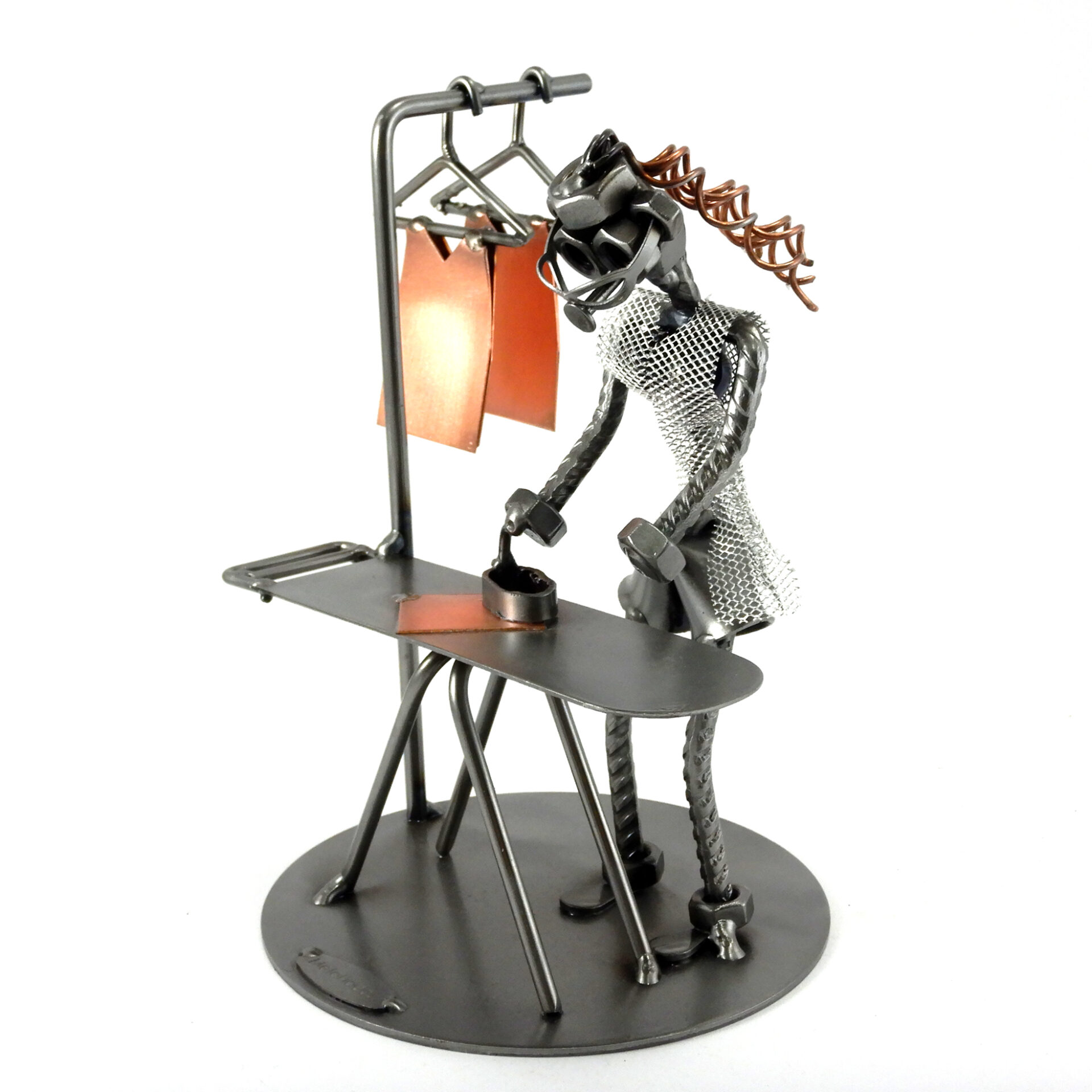 SCULTURA IN METALLO ARTIGIANALE RAFFIGURANTE LA STIRIRATRICE CASALINGA