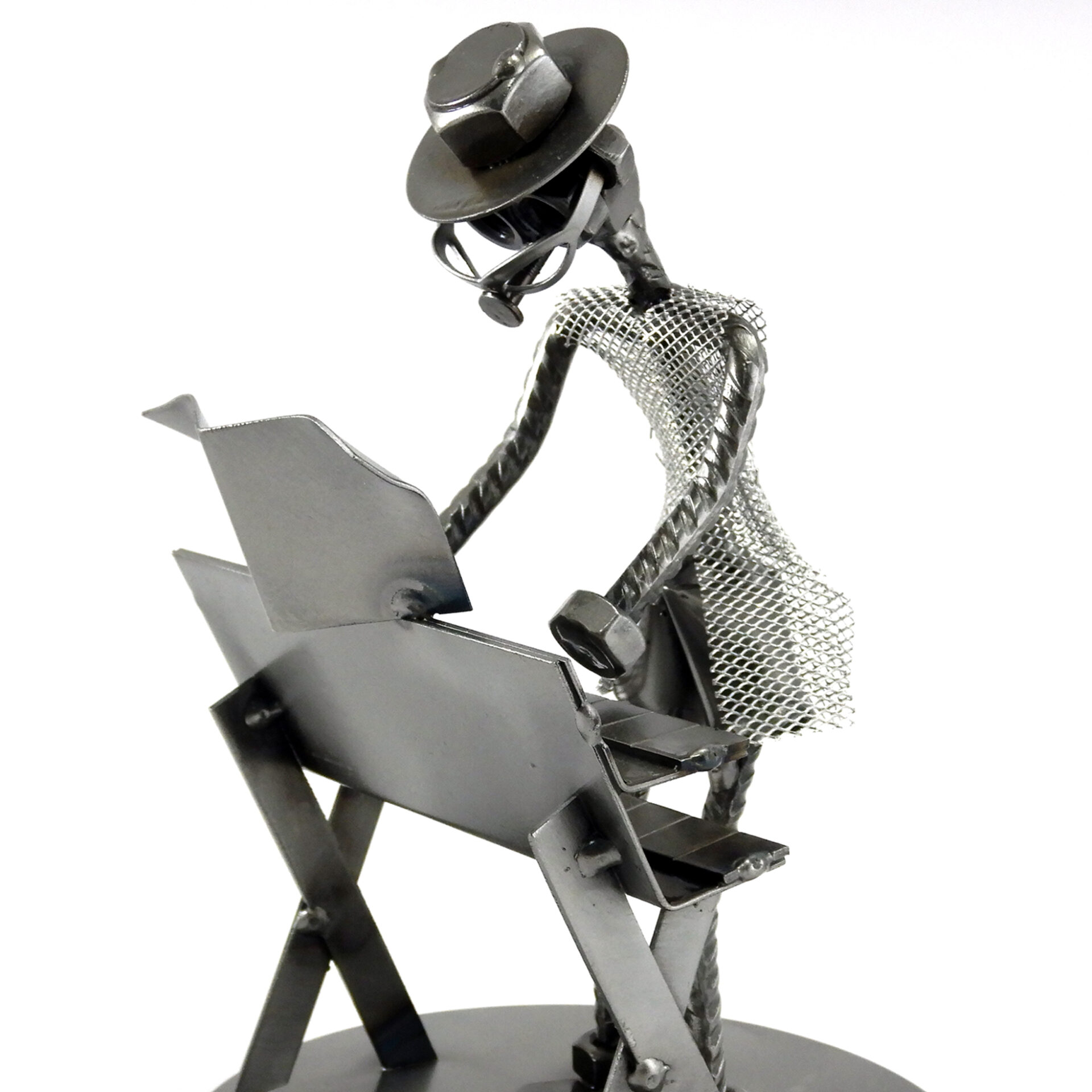 SCULTURA IN METALLO ARTIGIANALE RAFFIGURANTE IL TASTIERISTA.
