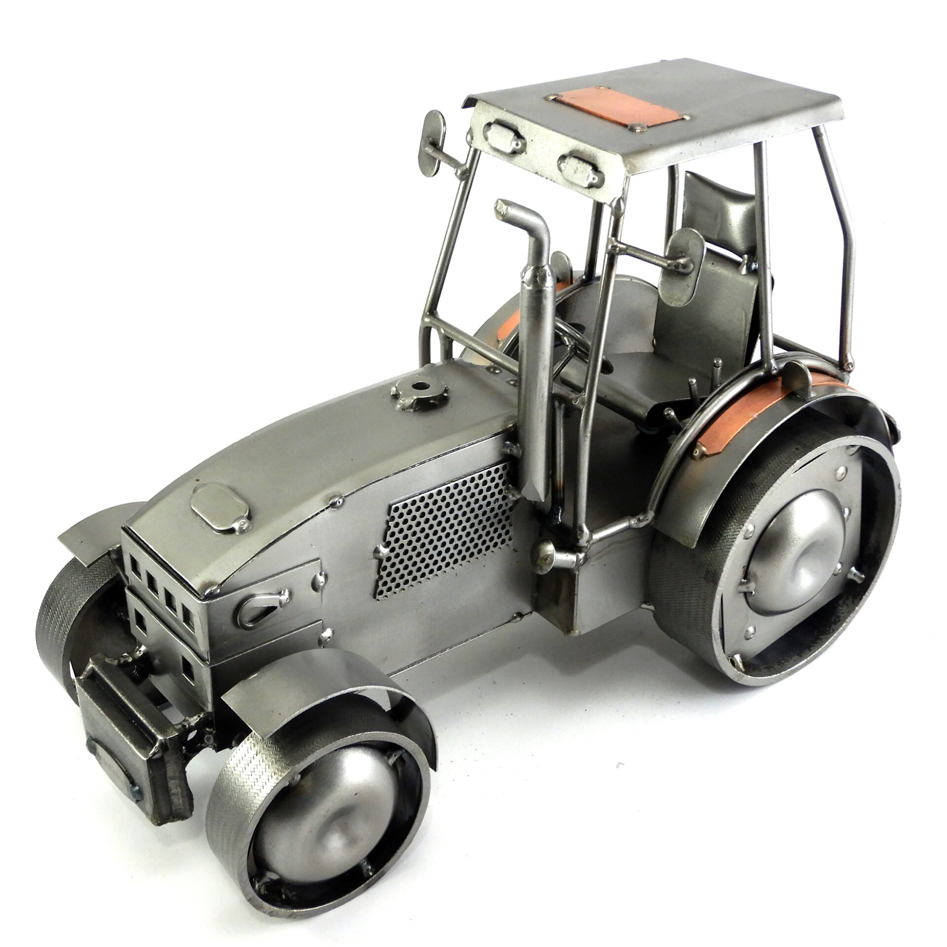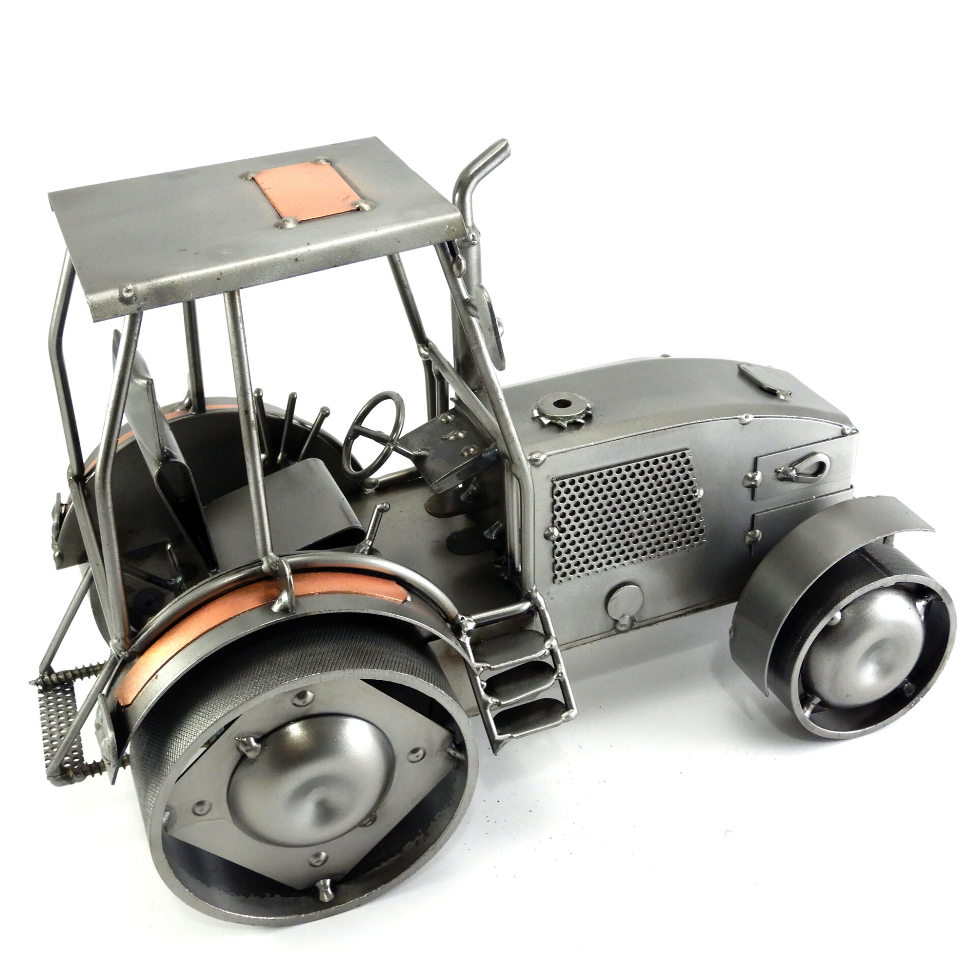 SCULTURA IN METALLO ARTIGIANALE RAFFIGURANTE UN TRATTORE con elementi in rame.