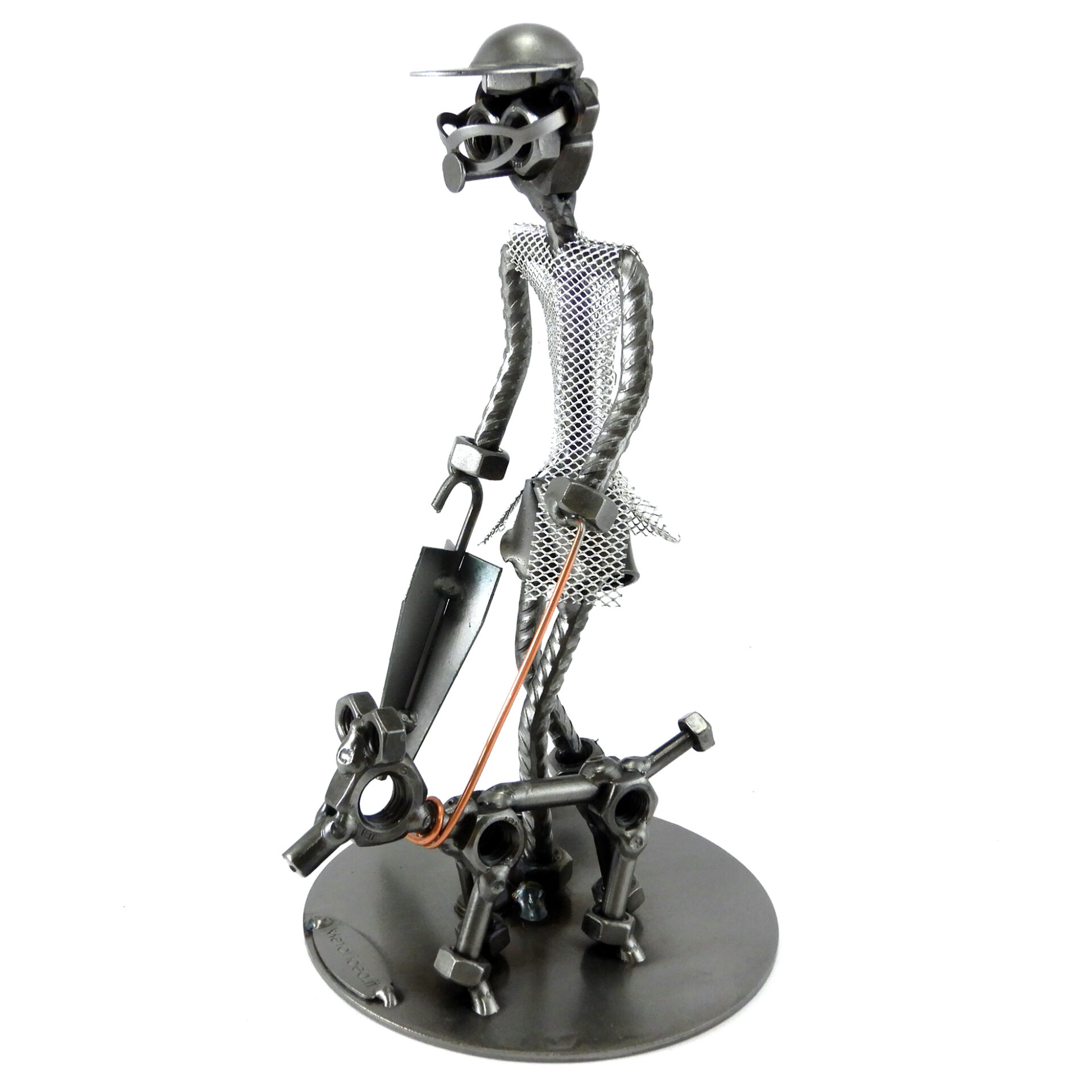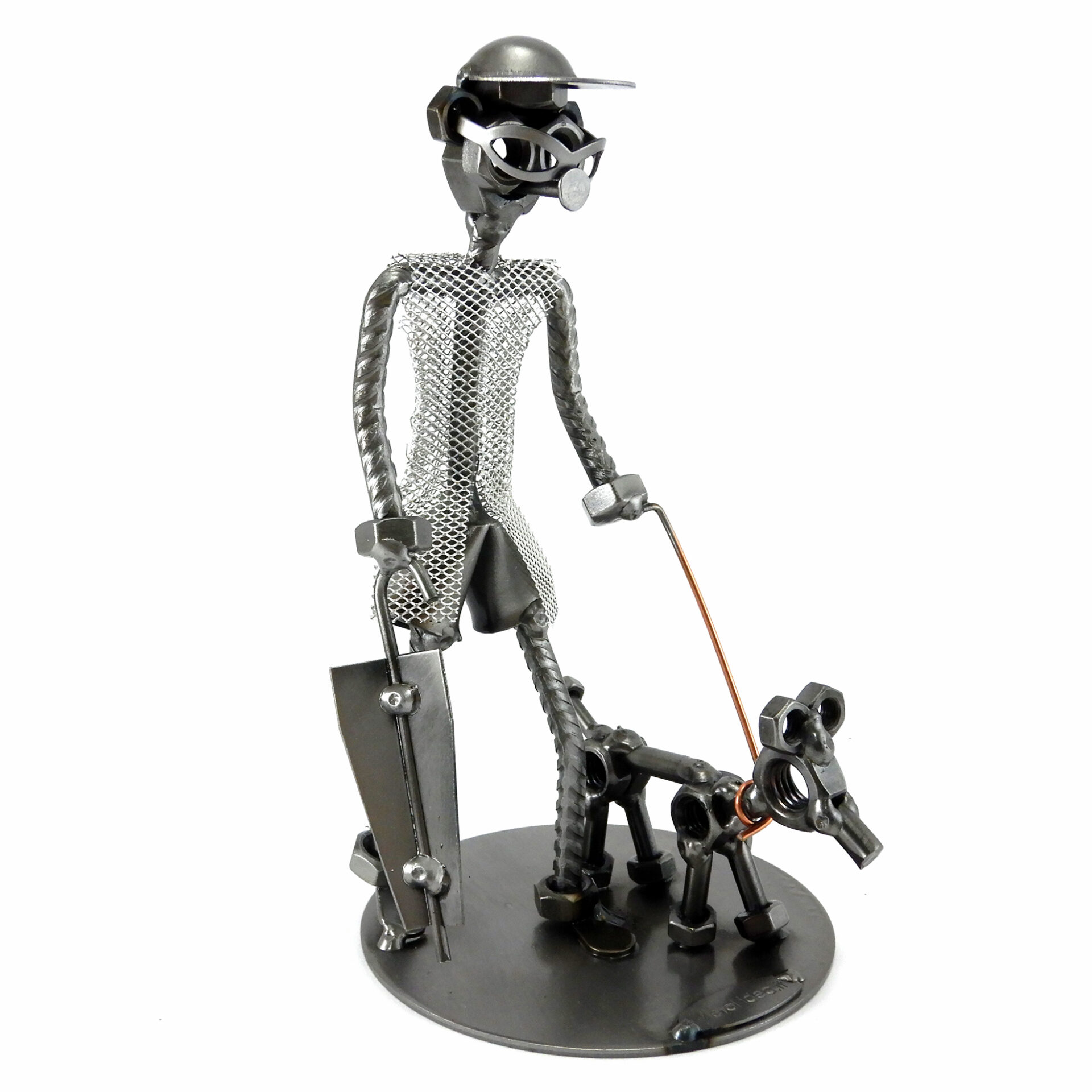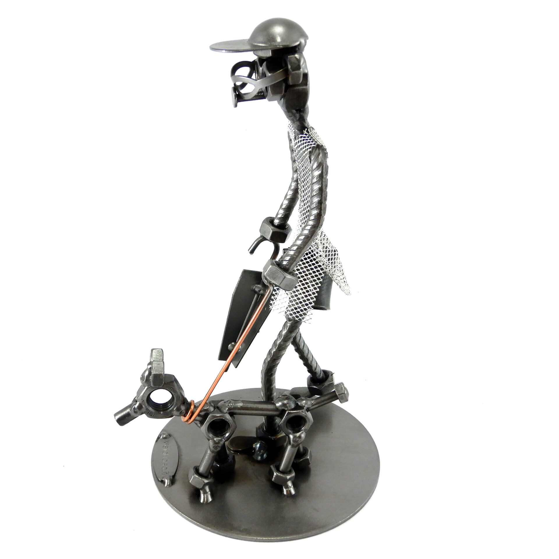 SCULTURA IN METALLO ARTIGIANALE RAFFIGURANTE UOMO CON CANE