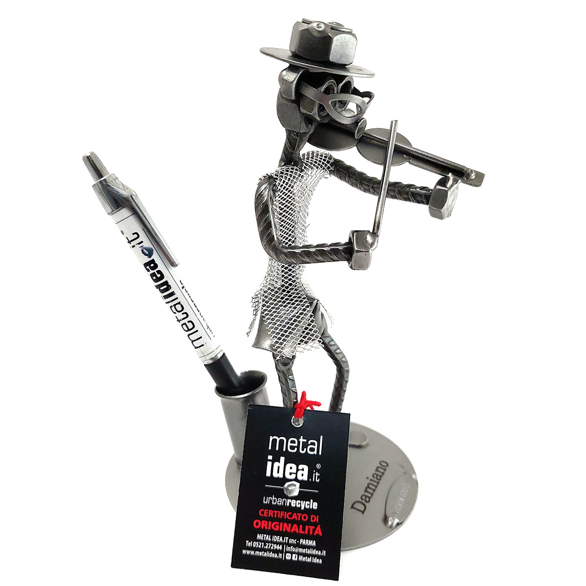 La nostra collezione di pezzi è caratterizzata da un moderno ed originale design “made in Italy”, firmato METAL IDEA.IT®, marchio registrato. Siamo orgogliosi di offrire creazioni uniche e di qualità, perfette per ogni occasione, come compleanni, anniversari, pensionamenti, lauree, matrimoni, comunioni, cresime, premiazioni sportive e feste della mamma e del papà. E se stai cercando un regalo davvero speciale e unico, non cercare oltre: i nostri soggetti artigianali sono perfetti per te. Tieni presente che eventuali irregolarità o piccole imperfezioni non sono da ritenersi difetti, ma piuttosto autenticità della lavorazione artigianale.